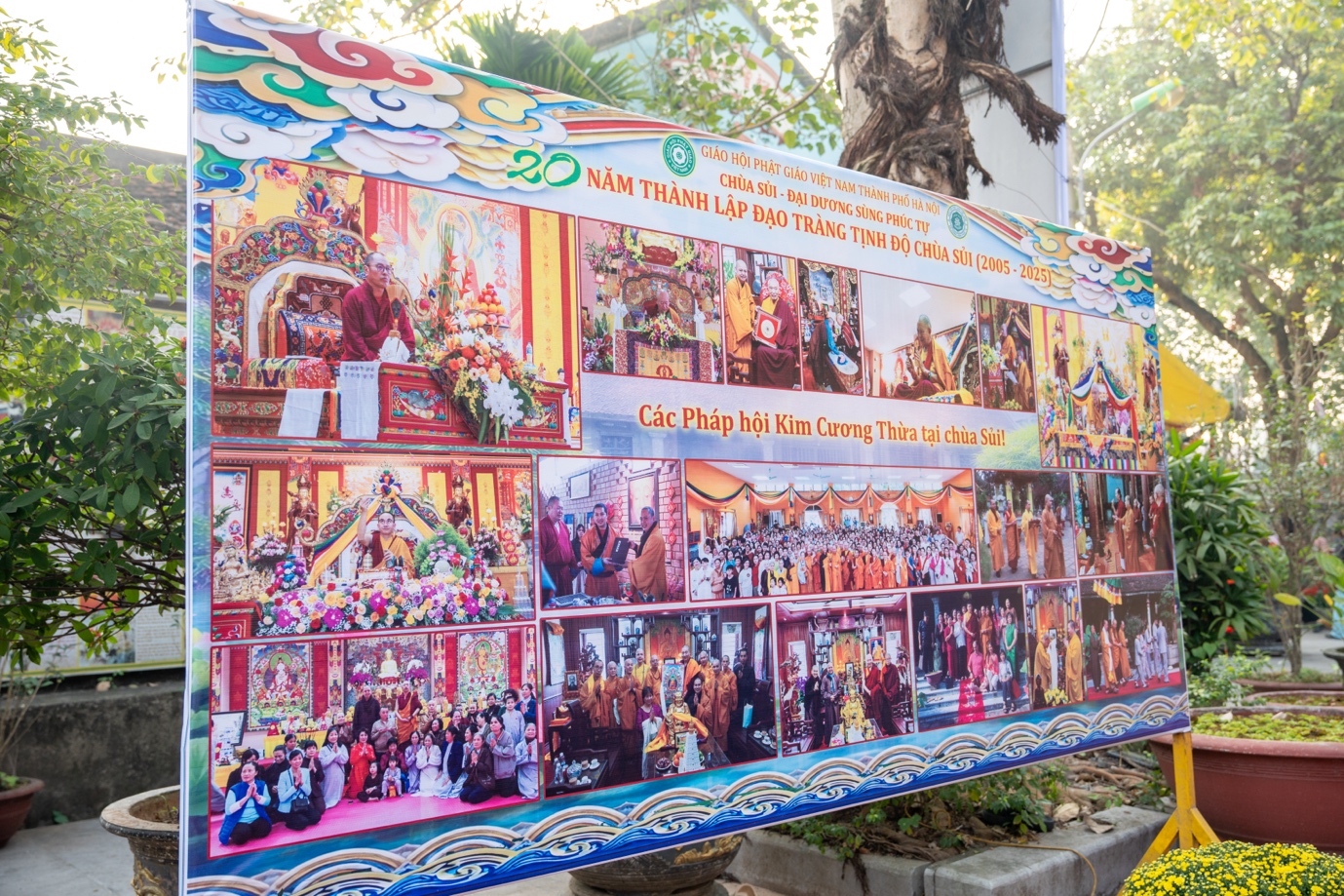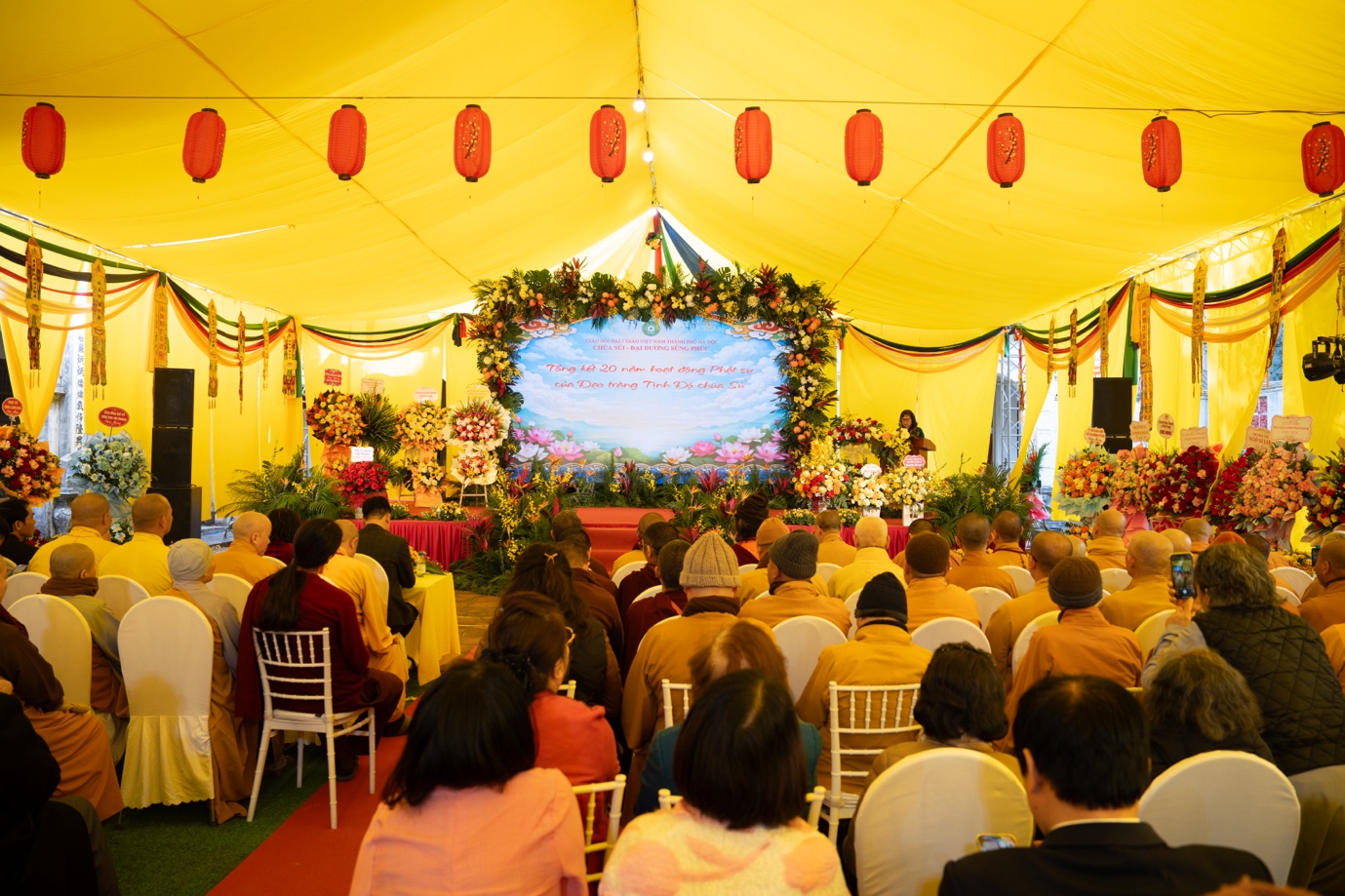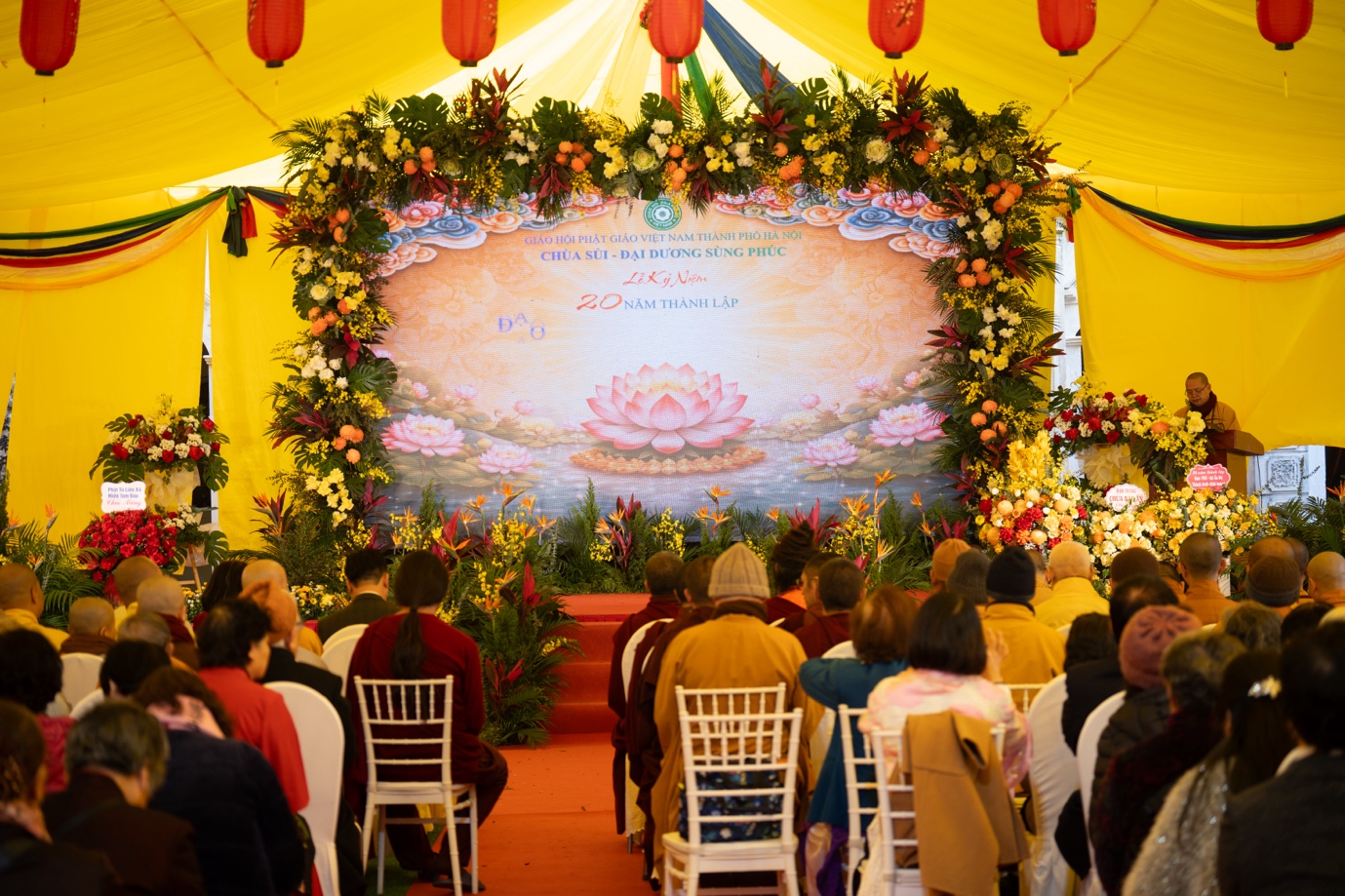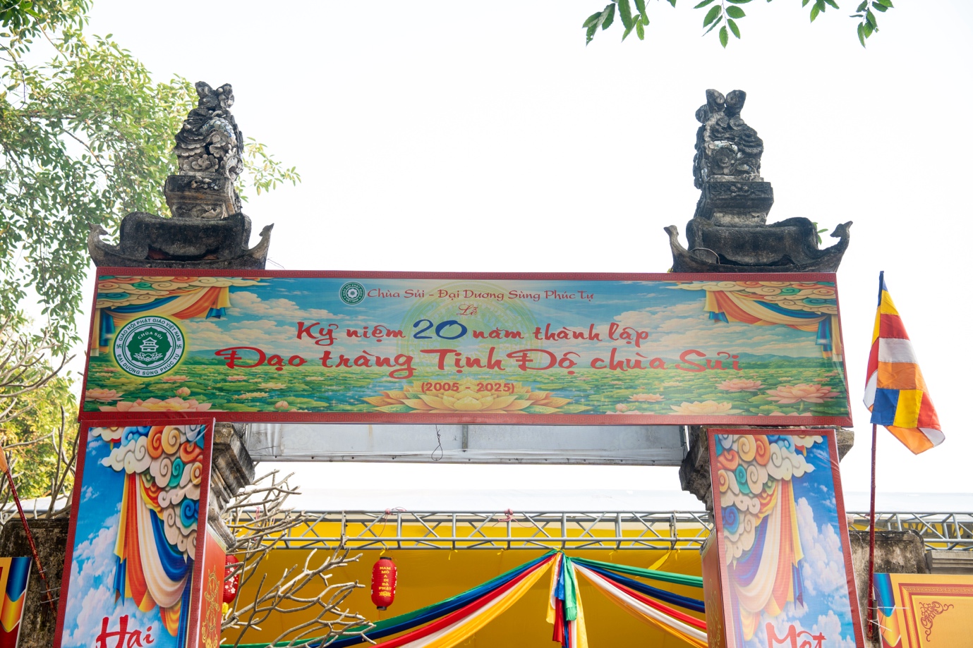 Nhân dịp kỷ niệm 20 năm thành lập, BTS GHPGVN TP.Hà Nội, Sở Dân tộc và Tôn giáo TP. Hà Nội, lãnh đạo chính quyền địa phương trân trọng trao tặng những lẵng hoa tươi thắm chúc mừng Đạo tràng Tịnh độ chùa Sủi. Những lẵng hoa mang theo tình cảm, sự trân quý và lời chúc đạo tràng tiếp tục vững bước trên con đường hoằng pháp lợi sinh, lan tỏa những giá trị tốt đẹp của Phật giáo trong đời sống xã hội.