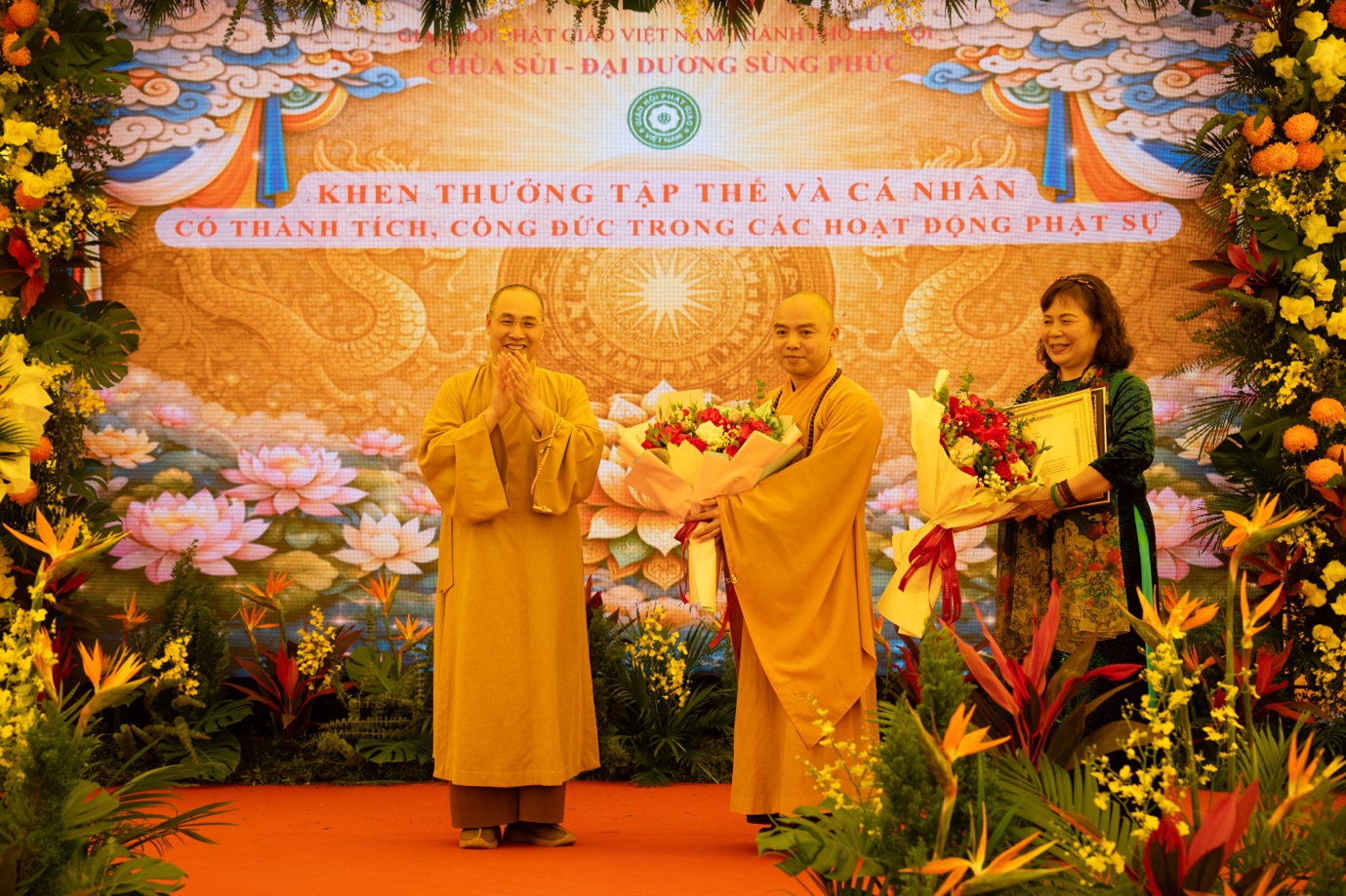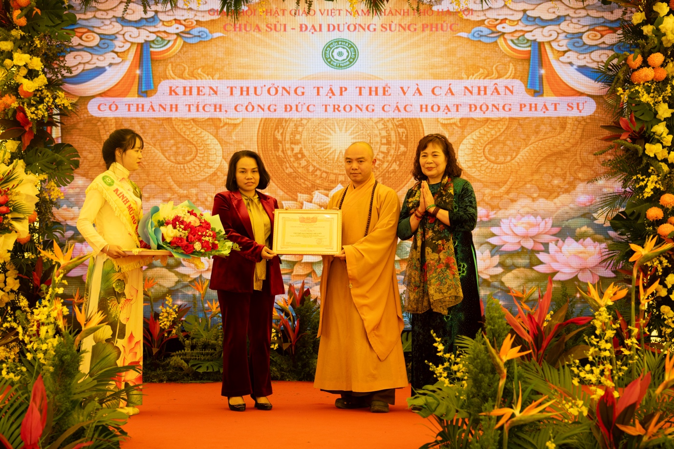 Với những thành tích đã đạt được, nhân dịp này, UBND TP trao tặng bằng khen cho Thượng tọa Thích Thanh Phương; Sở Dân tộc và Tôn giáo TP. Hà Nội trao giấy khen ghi nhận cho những đóng góp tích cực của Đạo tràng Tịnh độ chùa Sủi; TƯGH trao bằng tuyên dương công đức cho Đạo tràng Tịnh độ chùa Sủi; Ban Hoằng pháp Trung ương trao bằng tuyên dương công đức cho các tập thể, cá nhân tiêu biểu.