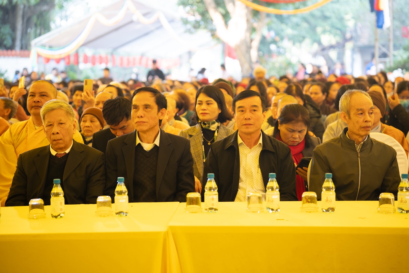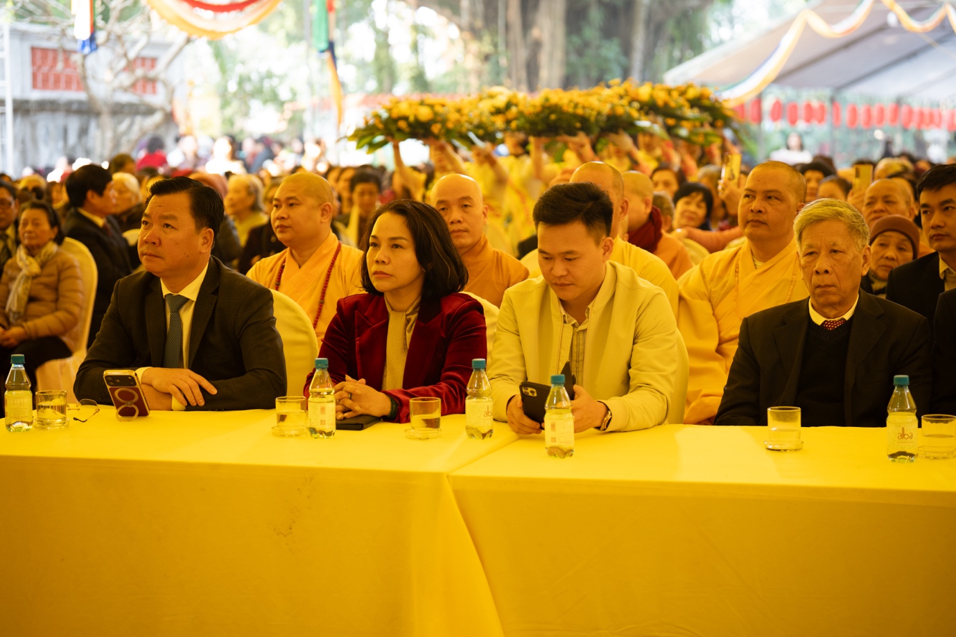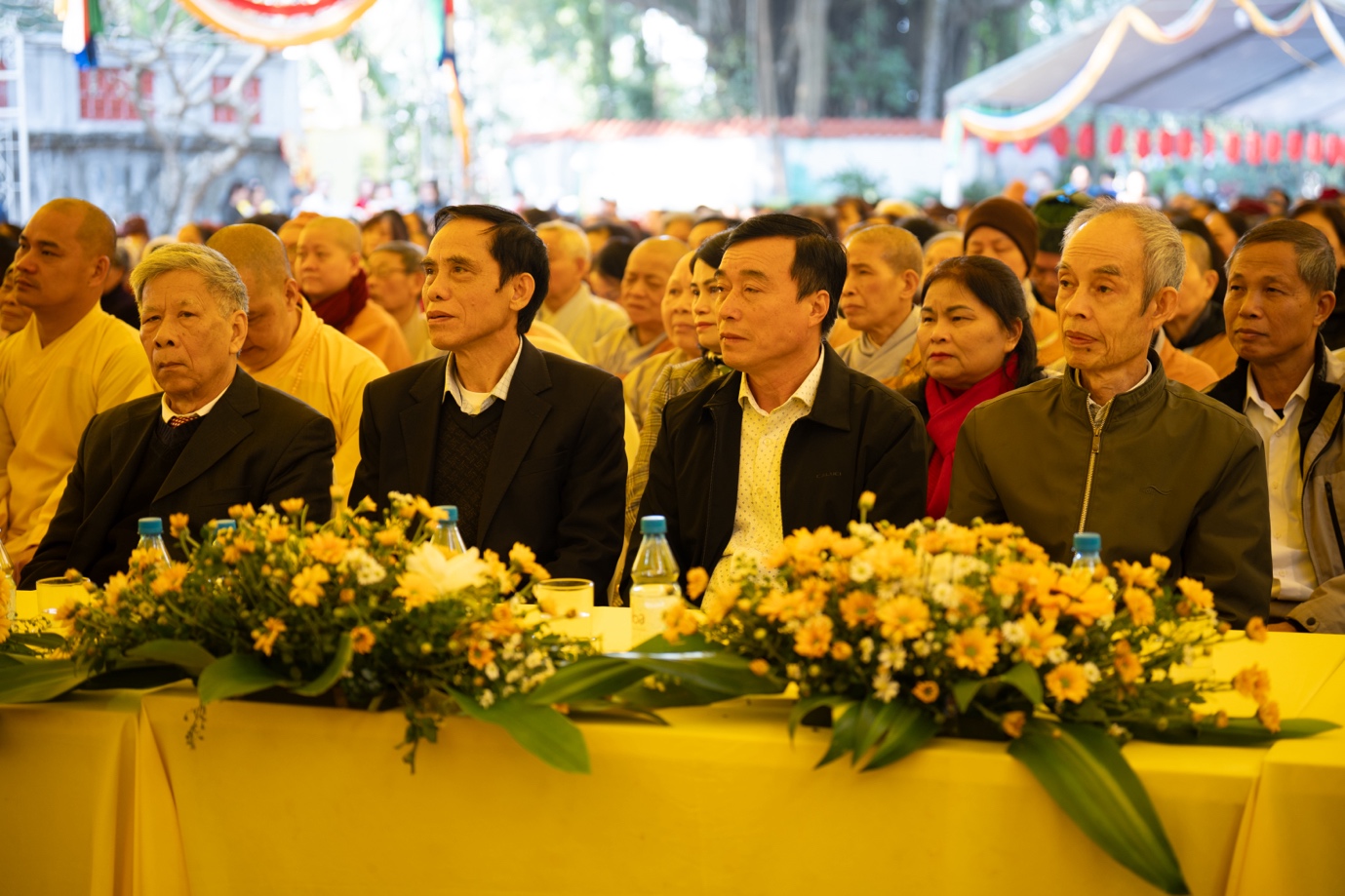 Về phía chính quyền có Ông Nguyễn Sỹ Trường – Giám đốc Sở Dân tộc và Tôn giáo TP. Hà Nội; Bà Phạm Bảo Khánh – Trưởng phòng Nghiệp vụ 2, Sở Dân tộc và Tôn giáo TP. Hà Nội; Ông Nguyễn Văn Kiên – Phó Đội trưởng Đội Tôn giáo, Phòng An ninh Nội địa, Công an TP. Hà Nội; cùng đại diện lãnh đạo chính quyền địa phương, các đạo tràng bạn và đông đảo nhân dân, Phật tử gần xa.