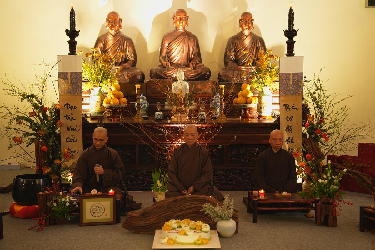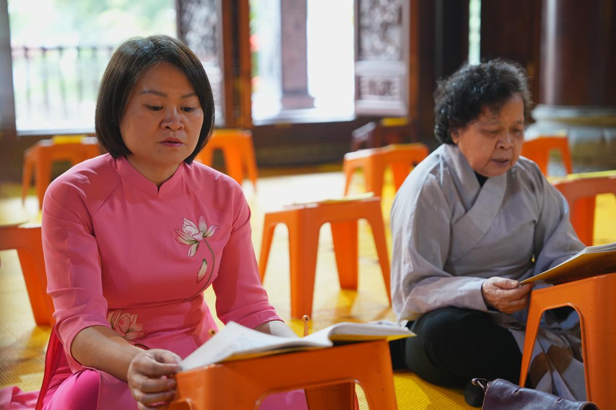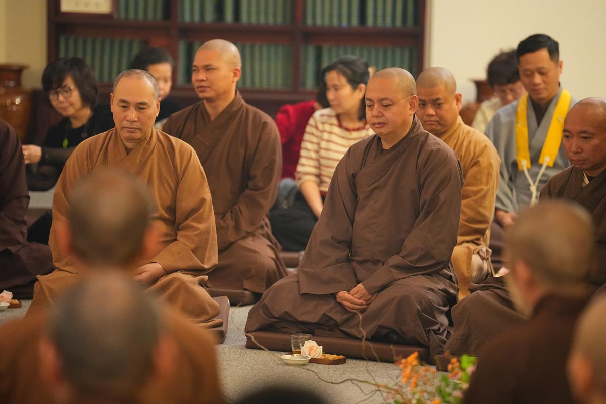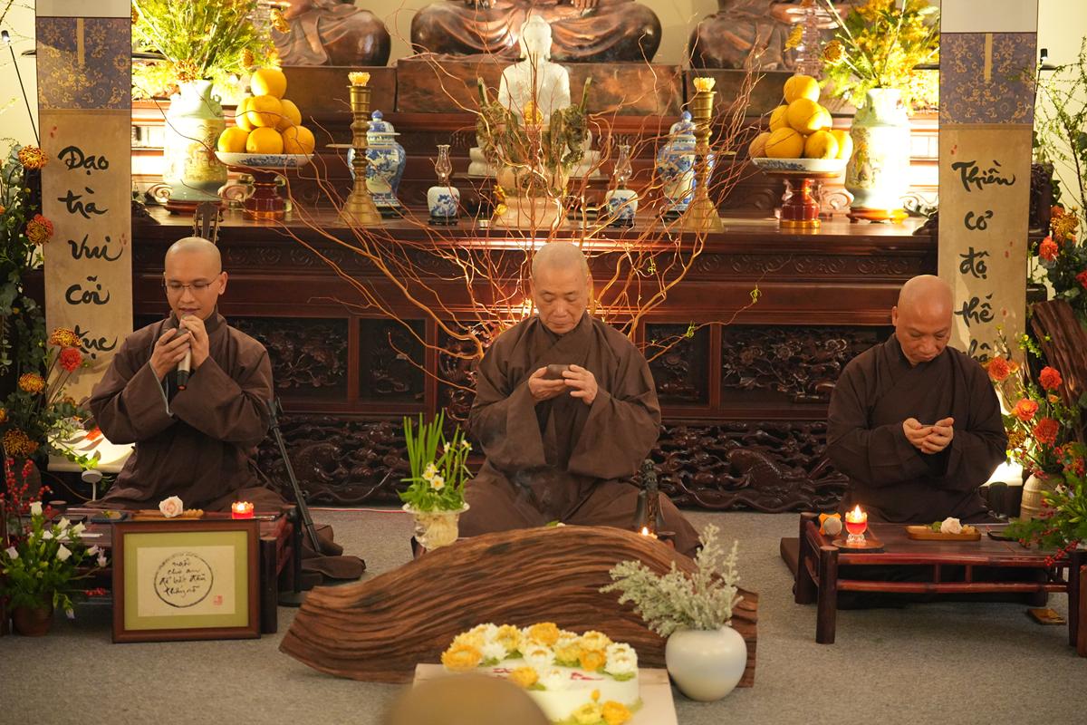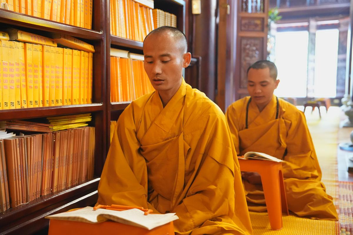 Buổi chiều, chư Tăng đã trang nghiêm trì tụng Kinh Dược Sư tại Đại Hùng Bảo Điện, cầu nguyện quốc thái dân an, thế giới hòa bình, chúng sinh an lạc.