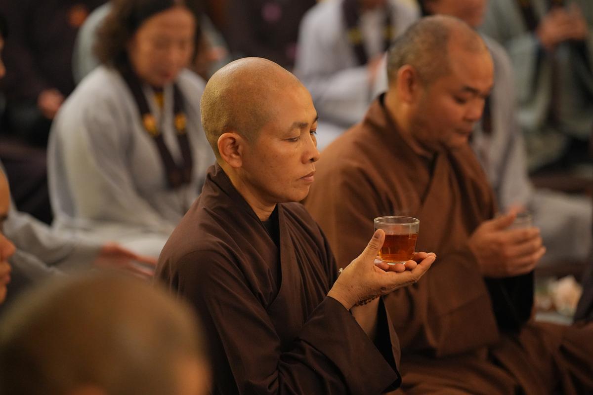 Hòa thượng bày tỏ niềm hoan hỷ và tán thán Thượng tọa Thích Chiếu Tuệ đã tổ chức một chương trình vô cùng thiền vị, mang đậm tinh thần hòa hợp với sự góp mặt của các sư đệ là pháp tử của Hòa thượng, Hòa thượng nghĩ rằng nếu Thượng tọa là một người huynh trưởng đã làm được, thì các sư đệ cũng nên tiếp nối tinh thần này, để mỗi buổi Thiền trà là một lần sơn môn cùng tề tựu bên nhau, chia sẻ kinh nghiệm hành đạo, nuôi lớn tình pháp lữ tăng đoàn. Hòa thượng cũng chia sẻ, dù Phật sự bộn bề, Hòa thượng vẫn luôn dành những phút giây cuối ngày để ngồi thiền trà cùng đệ tử, bởi theo Hòa thượng, “trà không phải là sự xa hoa, mà là sự quán chiếu; chén trà giúp con người lắng tâm, sống chậm lại và an yên hơn giữa cuộc đời nhiều xao động”. Những buổi thiền trà chính là phương tiện giáo dục đạo đức, nuôi dưỡng đời sống tinh thần rất sâu sắc trong xã hội hiện đại.