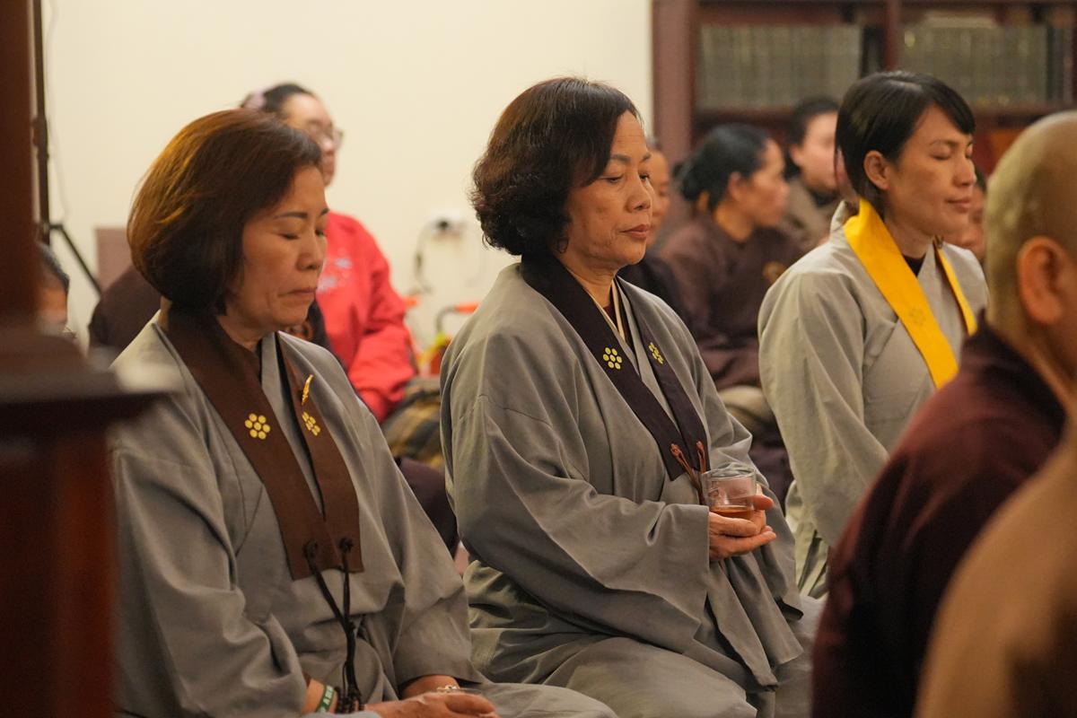 Trước khi bước vào đêm thiền trà, đại chúng đã vân tập về thiền đường, cùng nhau tọa thiền, an trú thân tâm, chuẩn bị đón nhận những giây phút thiêng liêng của đêm Thiền Trà.
