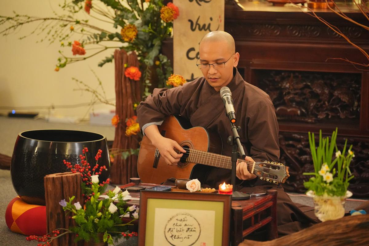Trong dòng cảm xúc lắng đọng ấy, đại chúng cùng nhau lắng nghe thiền ca “Tình Thầy”. Từng ca từ mộc mạc: “Con đã về bên thầy như ngày xưa, con đã về bên thầy đó thầy ơi” như thay lời muốn nói của bao người con Phật, gợi dậy ân sâu nghĩa nặng của tình thầy trò trong thiền môn.