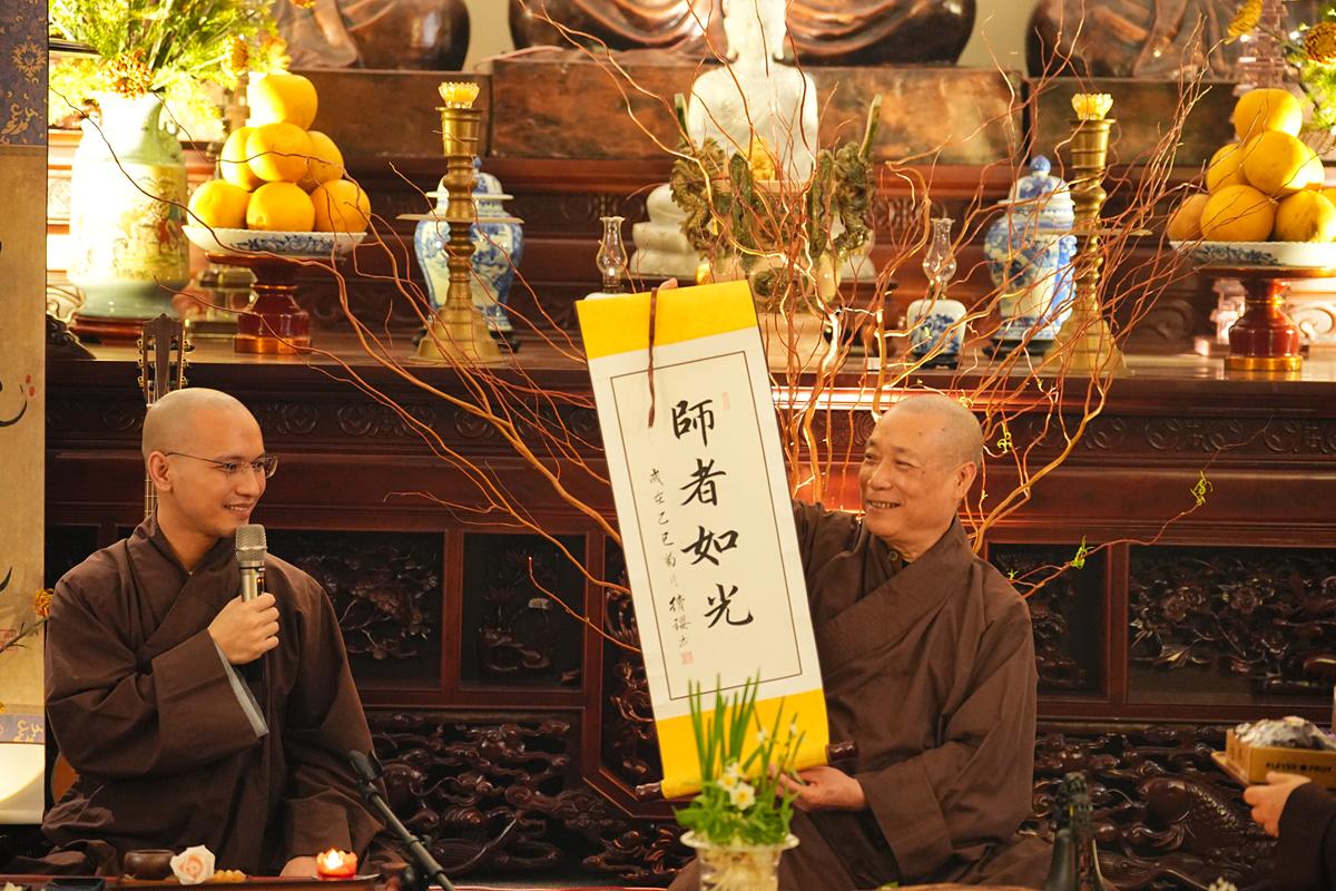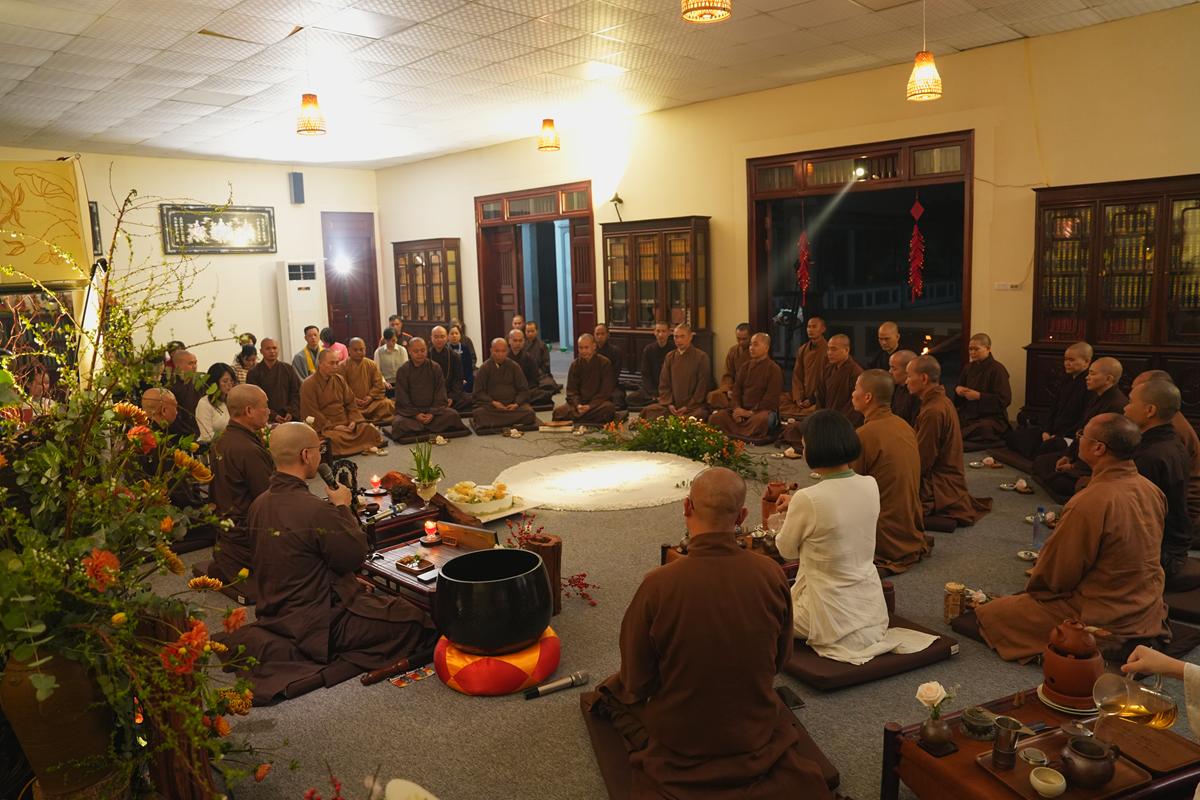 Tiếp nối Hòa thượng, Thượng tọa Thích Chiếu Tuệ cũng đã ôn lại dấu mốc ngày 17 tháng Chạp năm 1999 khi Hòa thượng về trụ trì Chùa Vạn Phúc, đến năm 2008 trao lại trọng trách trụ trì cho Thượng tọa. Năm nay, khi khép lại chặng đường dài xây dựng cơ sở vật chất phục vụ hoằng pháp lợi sinh, buổi thiền trà ngày cuối năm này được tổ chức như một lời thỉnh cầu tha thiết, mong Hòa thượng chia sẻ thêm những phương pháp tu tập quý báu từ chư Tổ của Tông môn.