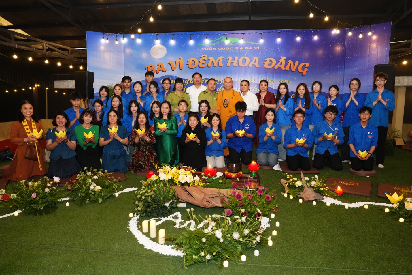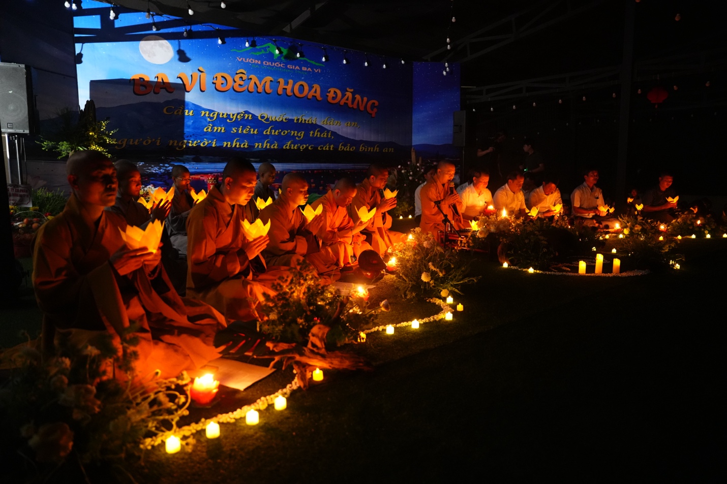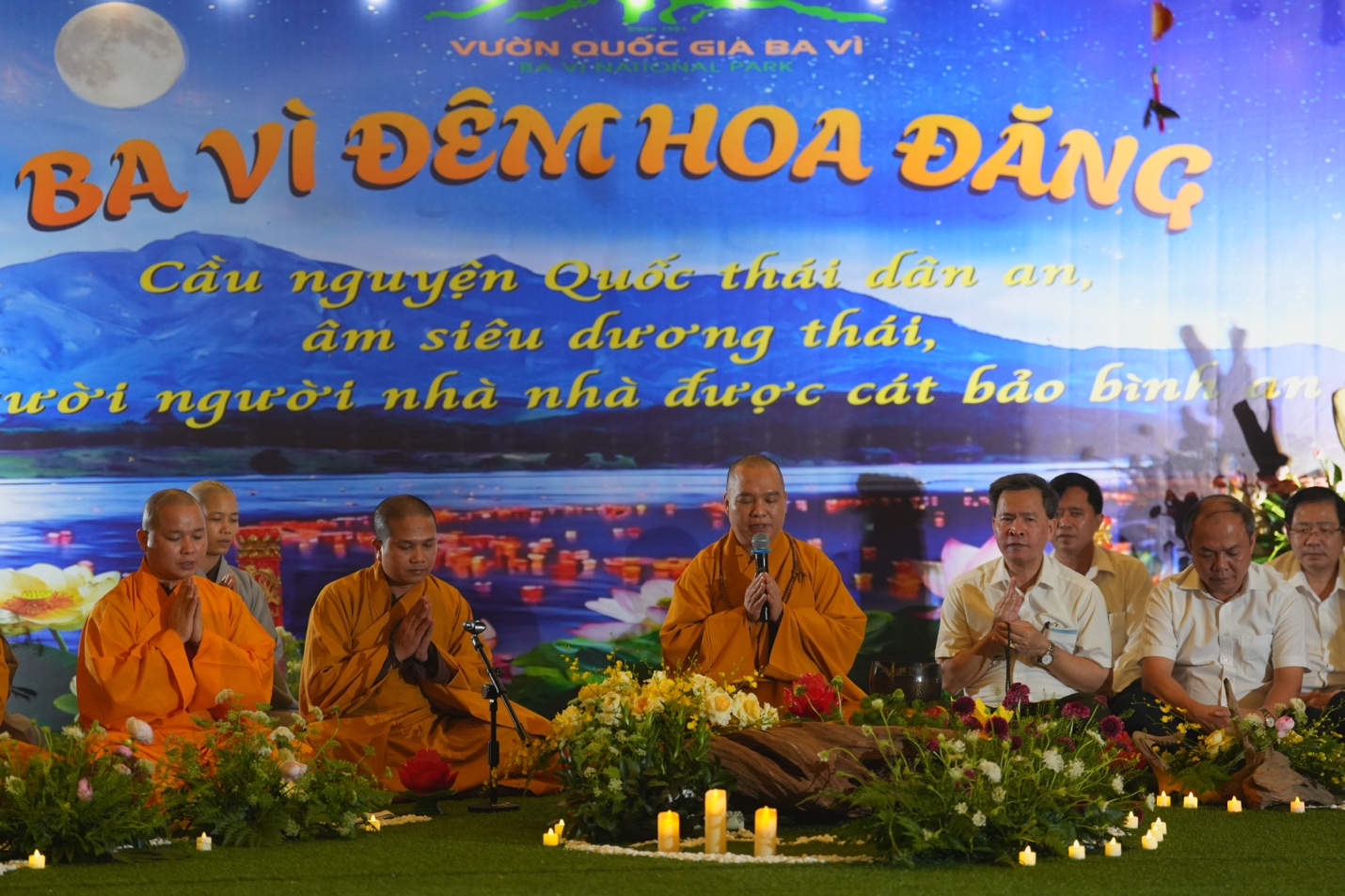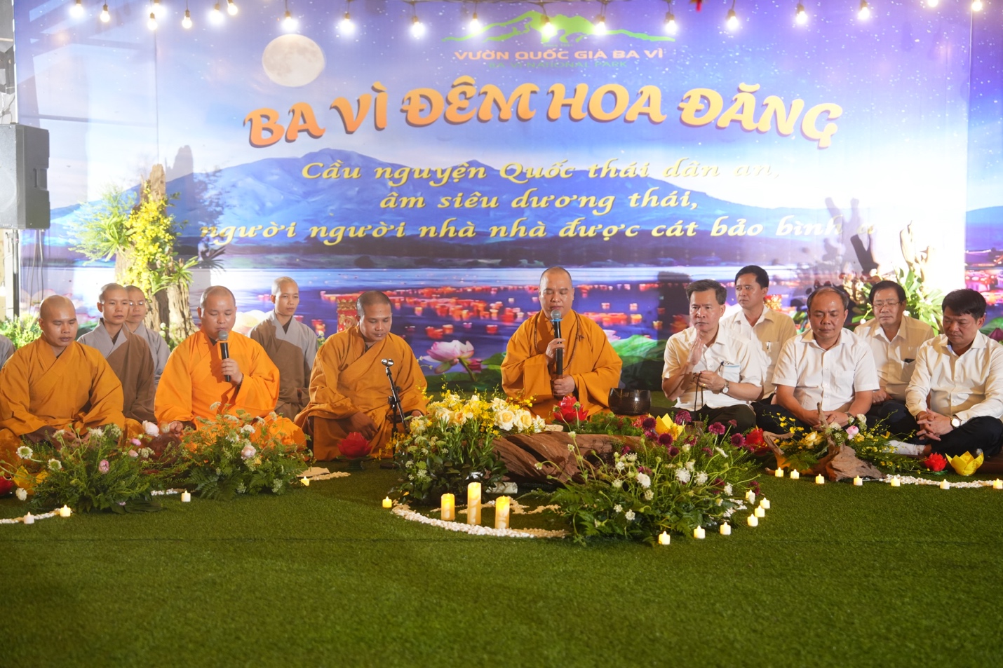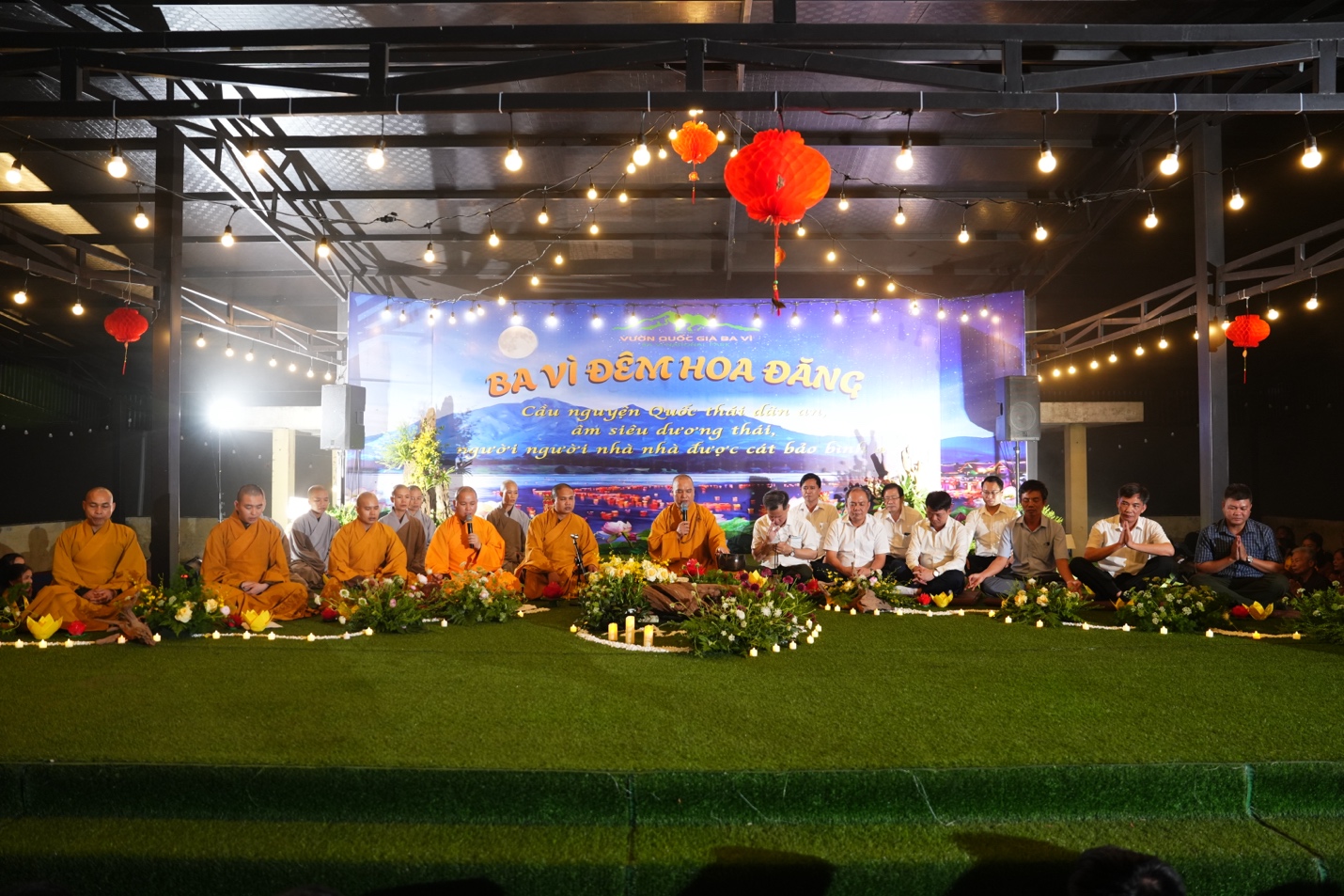 Ban Tổ chức đã trang nghiêm cung thỉnh Thượng tọa Thích Đạo Thịnh – Ủy viên Hội đồng Trị sự, Phó Chánh Văn phòng Trung ương, Phó Trưởng ban Thông tin Truyền thông Trung ương Giáo hội Phật giáo Việt Nam, Chánh đại diện Phật giáo liên xã Ba Vì, Trụ trì chùa Tản Viên Sơn quốc tự – quang lâm chủ trì lễ hoa đăng, cùng chư Tôn đức Tăng, Ni hiện diện chứng minh và tham dự.