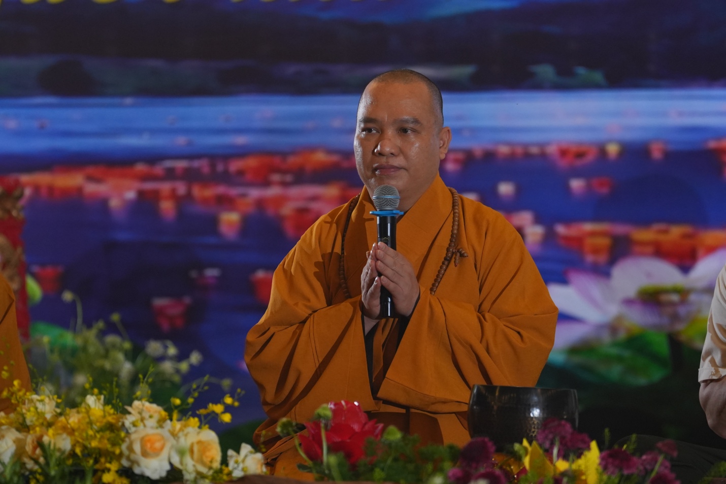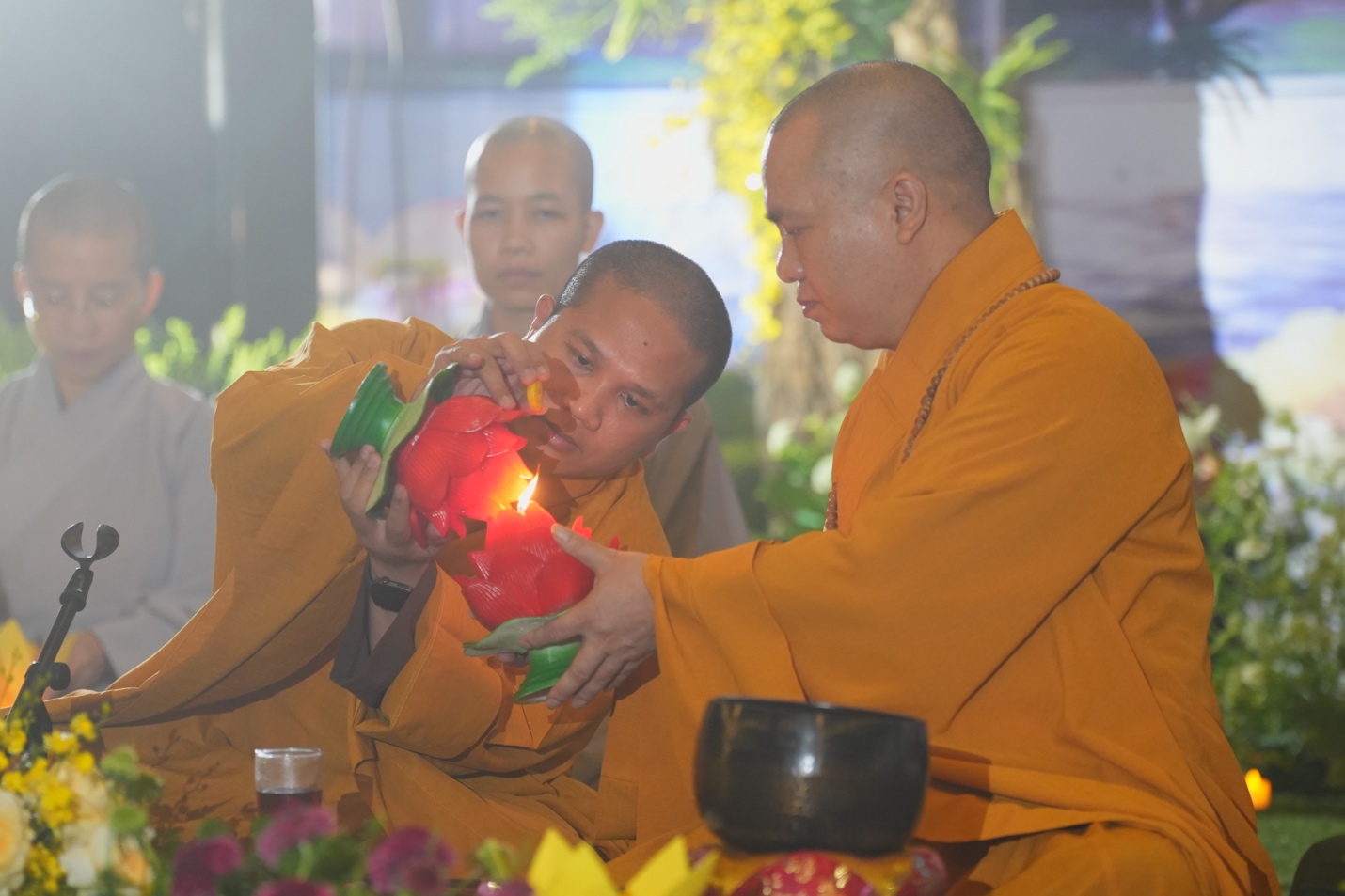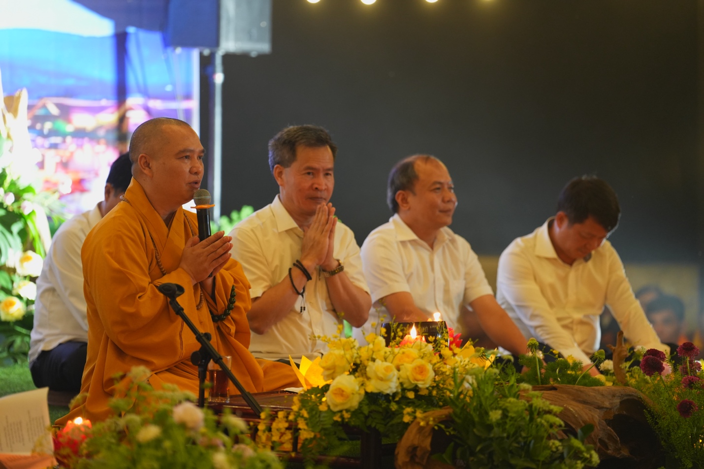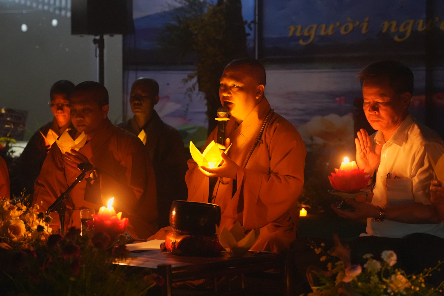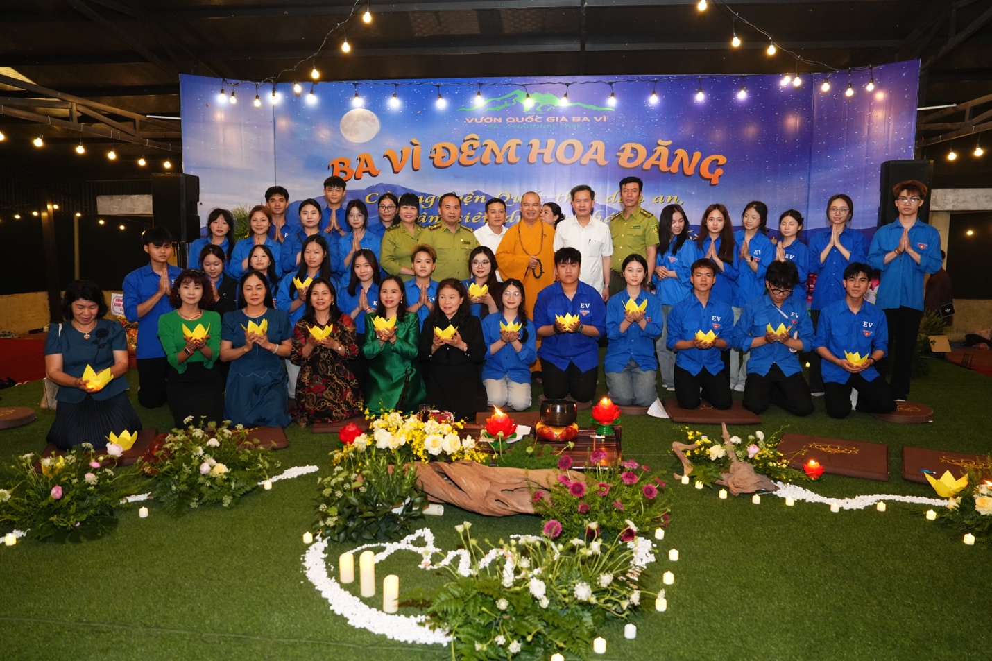 Ban Tổ chức đã trang nghiêm cung thỉnh Thượng tọa Thích Đạo Thịnh – Ủy viên Hội đồng Trị sự, Phó Chánh Văn phòng Trung ương, Phó Trưởng ban Thông tin Truyền thông Trung ương Giáo hội Phật giáo Việt Nam, Chánh đại diện Phật giáo liên xã Ba Vì, Trụ trì chùa Tản Viên Sơn quốc tự – quang lâm chủ trì lễ hoa đăng, cùng chư Tôn đức Tăng, Ni hiện diện chứng minh và tham dự.