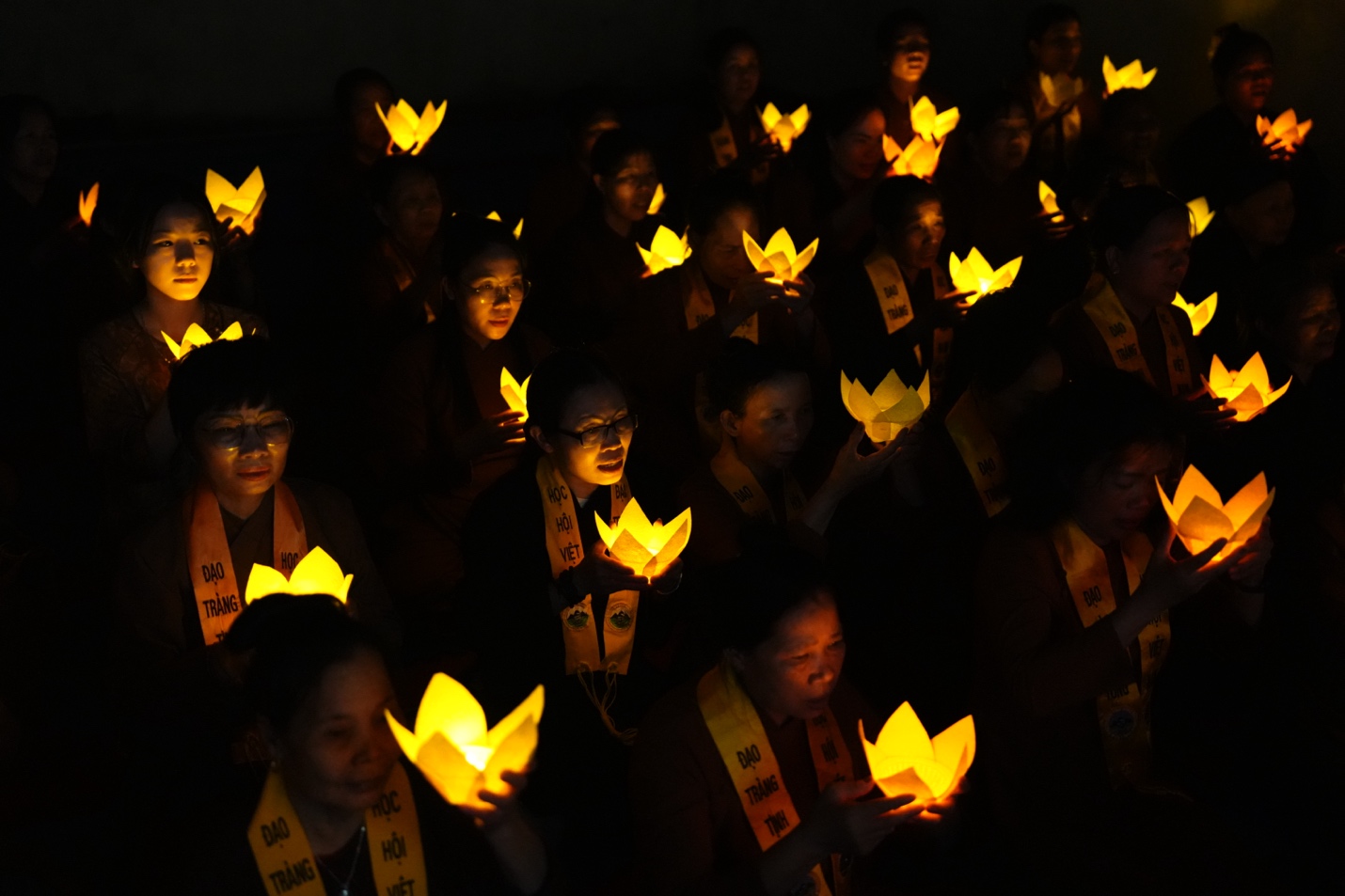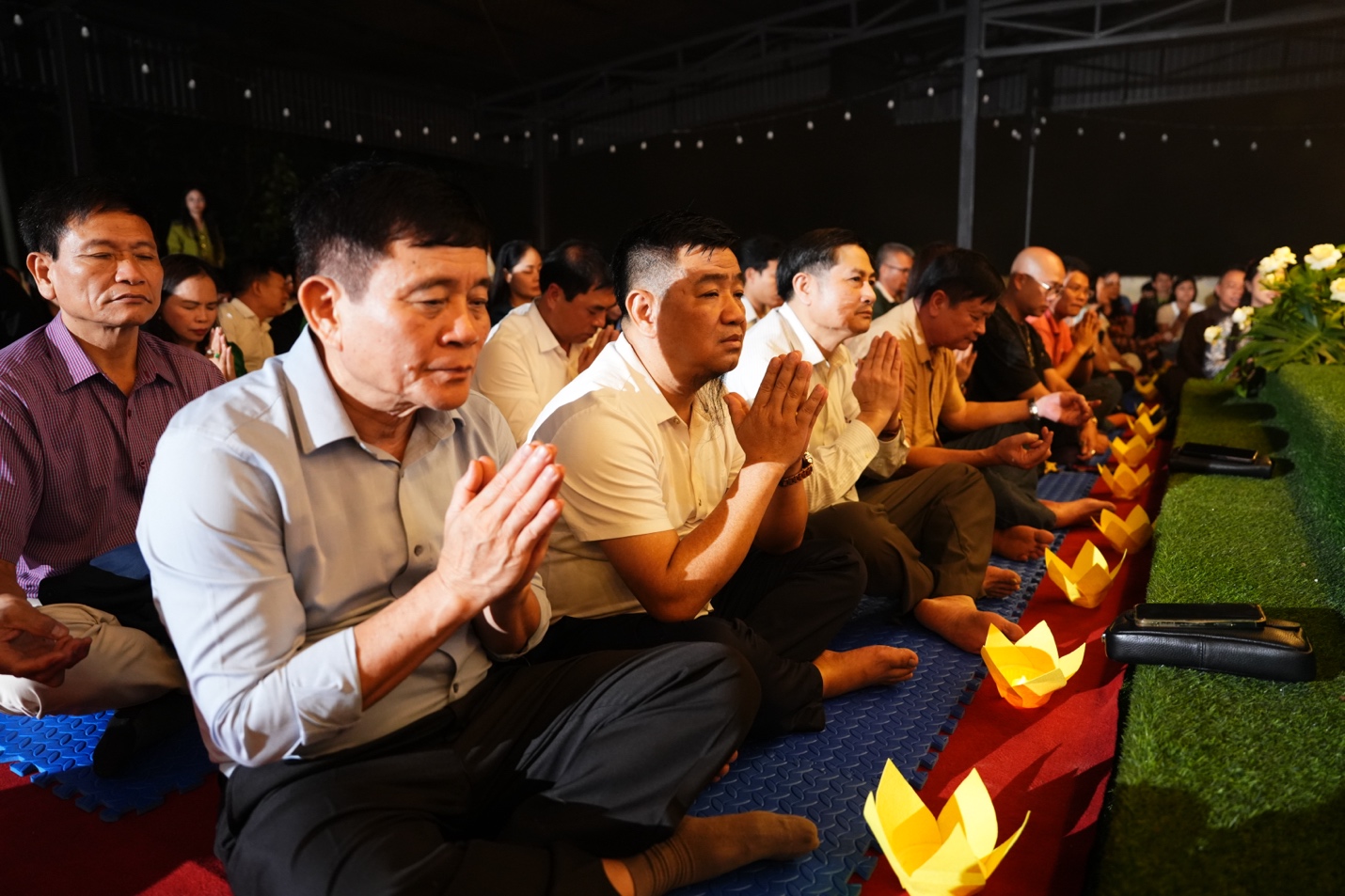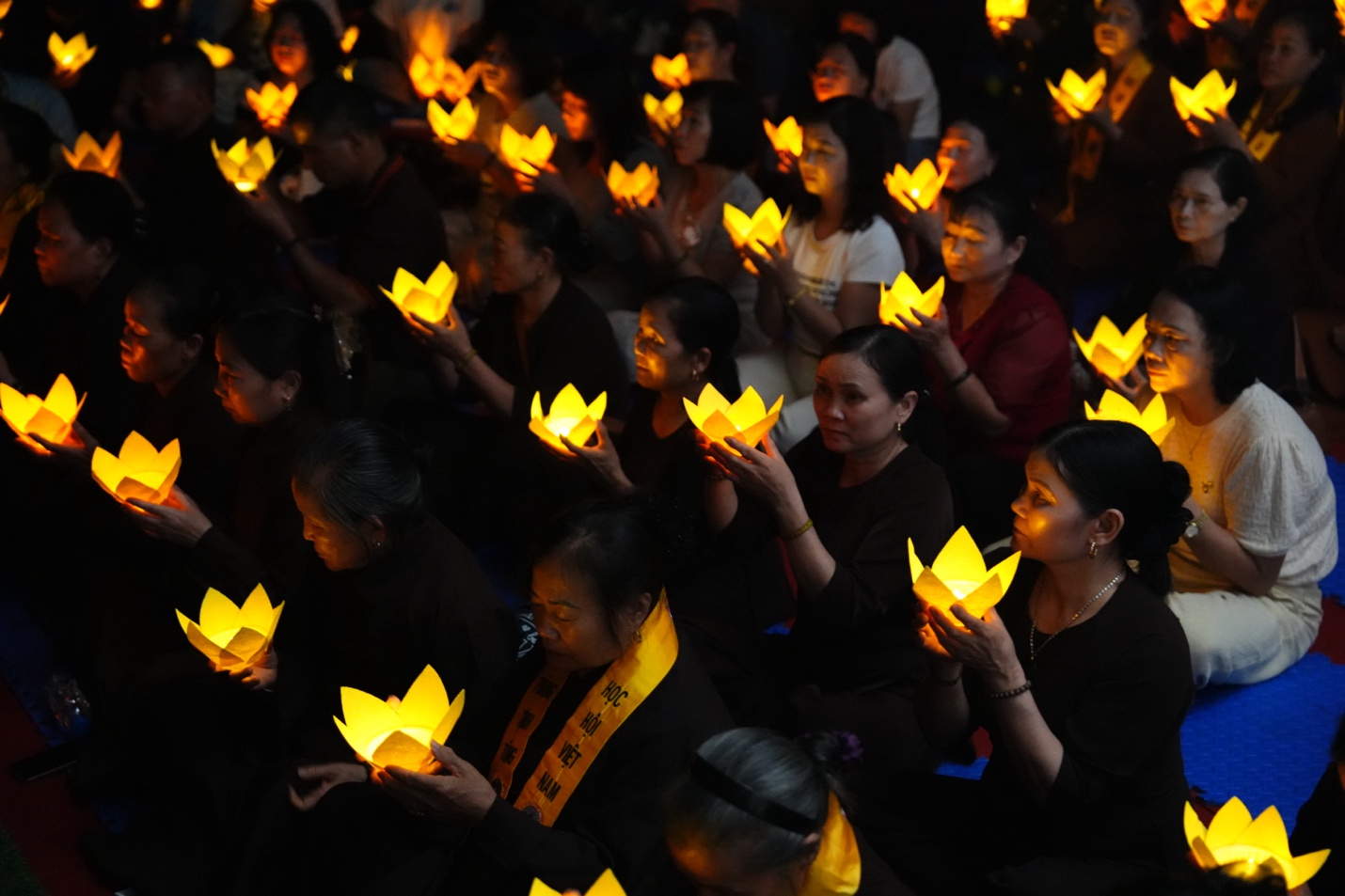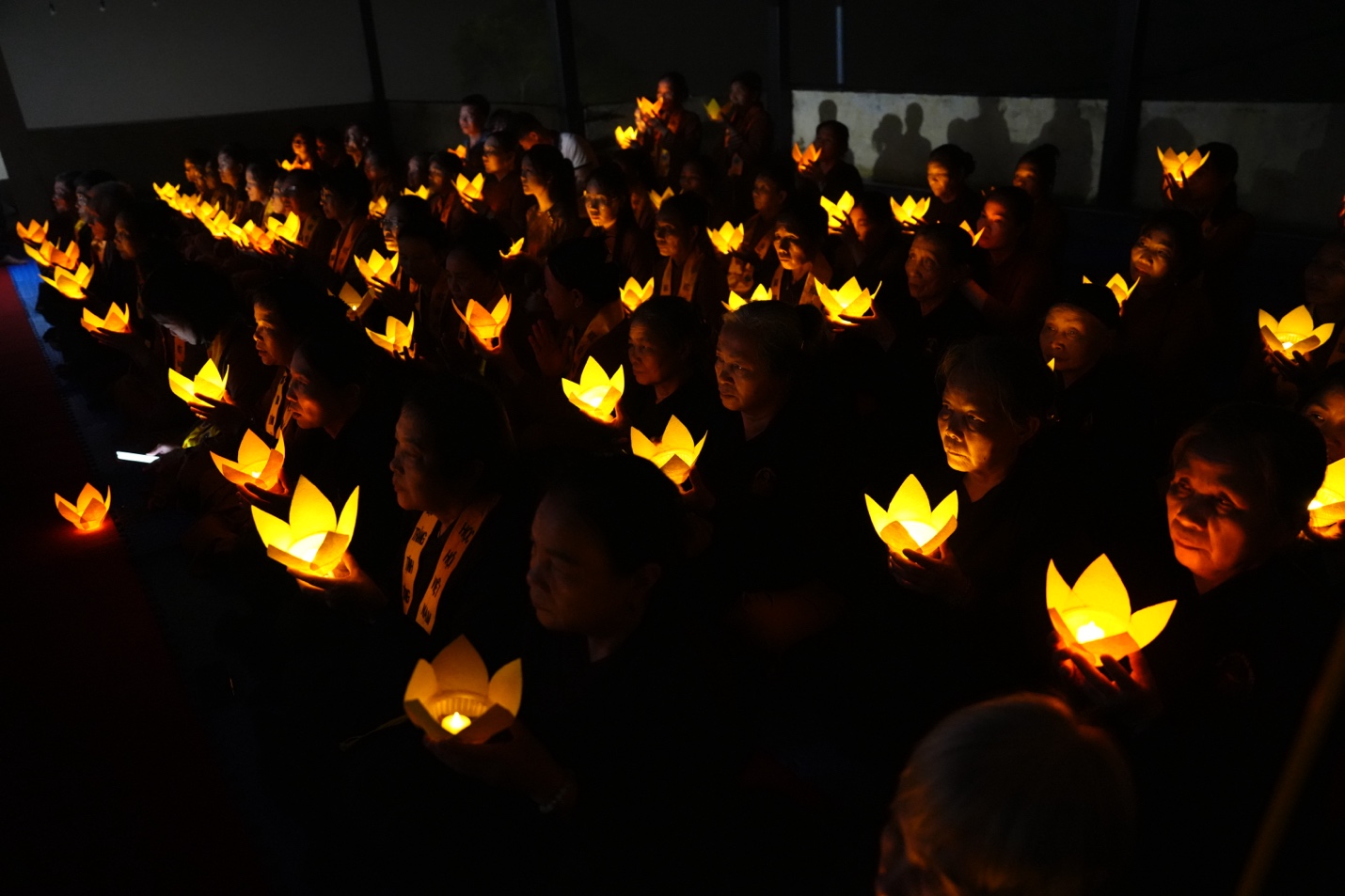 Dưới sự chủ trì của Thượng tọa Thích Đạo Thịnh, chư Tôn đức Tăng, Ni cùng toàn thể đại biểu, khách mời và Phật tử đã đồng tâm tụng kinh Cảnh văn, nhất tâm hướng về những giá trị thiện lành. Trong tiếng kinh trầm hùng ngân vang giữa đêm rằm, từng đóa hoa đăng được nâng niu trao đến tay đại chúng, rồi lần lượt thắp sáng như những lời nguyện cầu được gửi vào ánh sáng. Mỗi ngọn đèn không chỉ làm bừng lên không gian linh thiêng của buổi lễ, mà còn chuyên chở ước nguyện về quốc thái dân an, mưa thuận gió hòa, gia đạo bình an, muôn người được sống trong an lạc và hạnh phúc. Giữa đại ngàn Ba Vì tĩnh lặng, nghi lễ hoa đăng đã tạo nên một khoảnh khắc đẹp và sâu lắng, để mỗi người tham dự có dịp lắng lại, soi chiếu tự thân và nuôi lớn tâm nguyện sống thiện, sống lành.