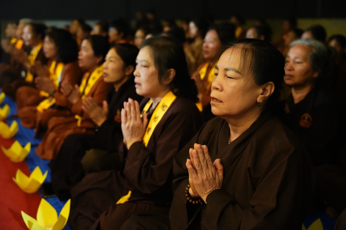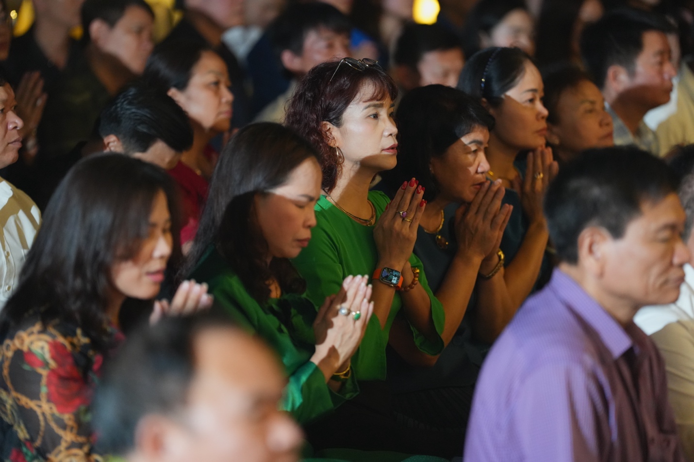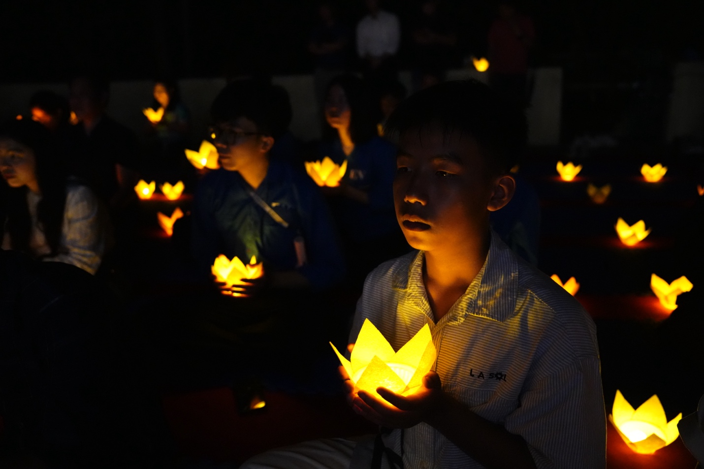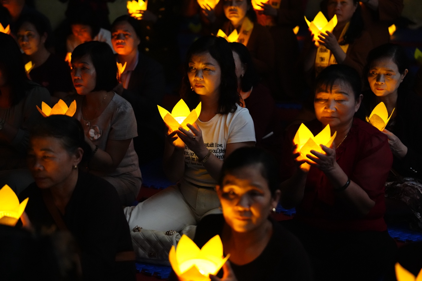 Dưới sự chủ trì của Thượng tọa Thích Đạo Thịnh, chư Tôn đức Tăng, Ni cùng toàn thể đại biểu, khách mời và Phật tử đã đồng tâm tụng kinh Cảnh văn, nhất tâm hướng về những giá trị thiện lành. Trong tiếng kinh trầm hùng ngân vang giữa đêm rằm, từng đóa hoa đăng được nâng niu trao đến tay đại chúng, rồi lần lượt thắp sáng như những lời nguyện cầu được gửi vào ánh sáng. Mỗi ngọn đèn không chỉ làm bừng lên không gian linh thiêng của buổi lễ, mà còn chuyên chở ước nguyện về quốc thái dân an, mưa thuận gió hòa, gia đạo bình an, muôn người được sống trong an lạc và hạnh phúc. Giữa đại ngàn Ba Vì tĩnh lặng, nghi lễ hoa đăng đã tạo nên một khoảnh khắc đẹp và sâu lắng, để mỗi người tham dự có dịp lắng lại, soi chiếu tự thân và nuôi lớn tâm nguyện sống thiện, sống lành.