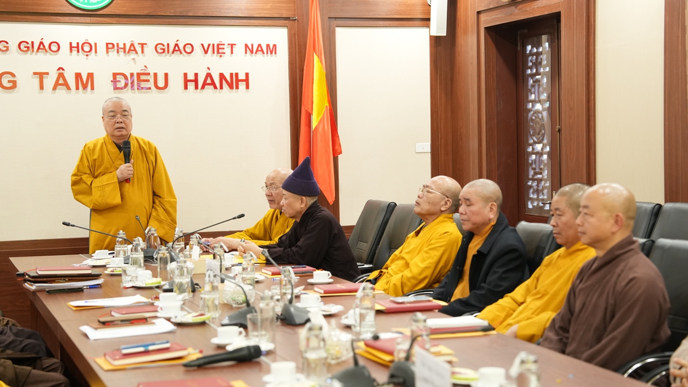 Phát biểu khai mạc, Trưởng lão Hòa thượng Thích Thanh Nhiễu cho biết phiên họp nhằm báo cáo các công tác Phật sự, chuẩn bị cho Hội nghị tổng kết cuối năm 2025 và góp ý bản dự thảo sửa đổi Hiến chương GHPGVN lần thứ 2 tháng 01 năm 2026. Sau khi sáp nhập các tỉnh thành, mô hình Giáo hội hiện nay hoạt động theo 3 cấp: cấp Trung ương (gồm Hội đồng Chứng minh và các cơ quan của Hội đồng Chứng minh; Hội đồng Trị sự và các cơ quan của Hội đồng Trị sự); cấp Tỉnh, Thành phố (gồm Chứng minh Ban Trị sự, Ban Trị sự và các cơ quan của Ban Trị sự); cấp Cơ sở (gồm Ban Đại diện phường, xã, đặc khu hoặc liên phường, xã; và Ban Quản trị cơ sở tự viện); chính bởi vậy, hiến chương cũng có nhiều sửa đổi.