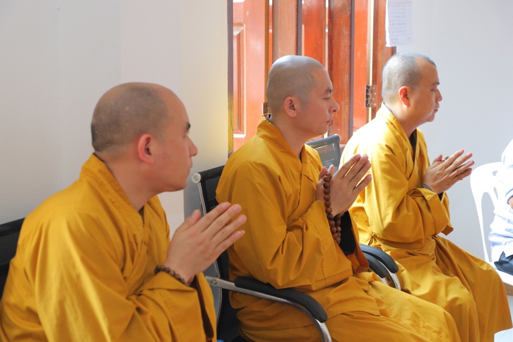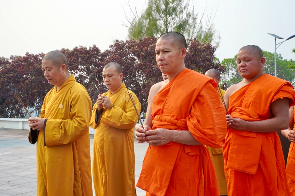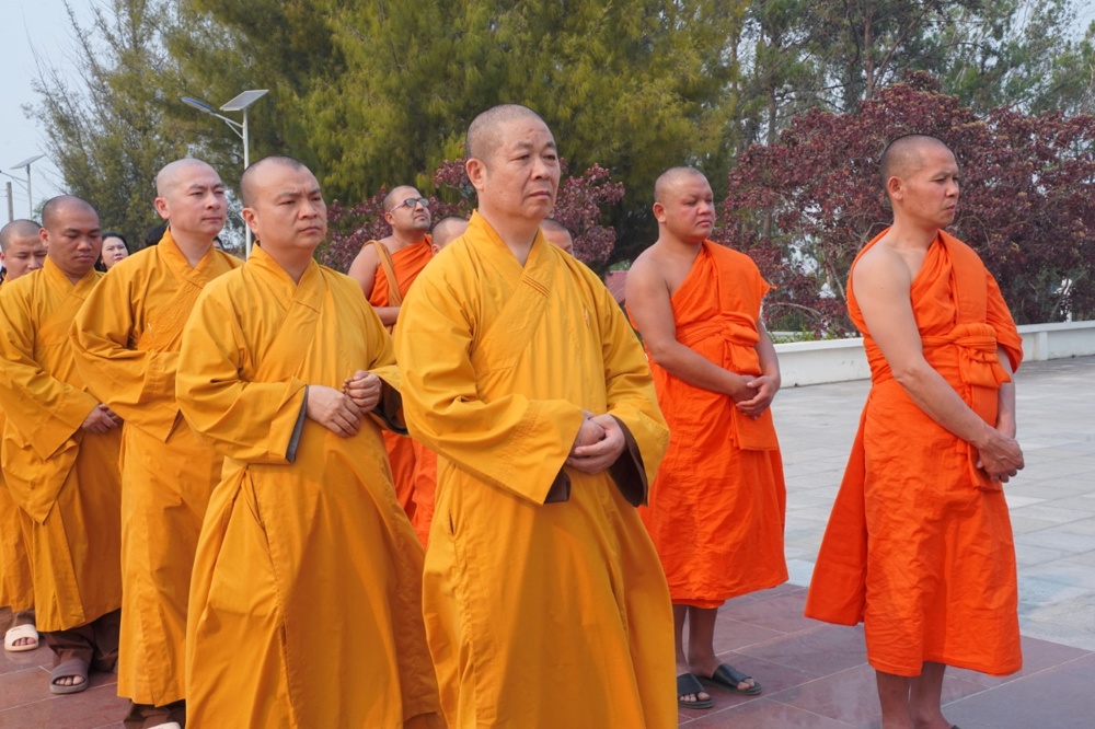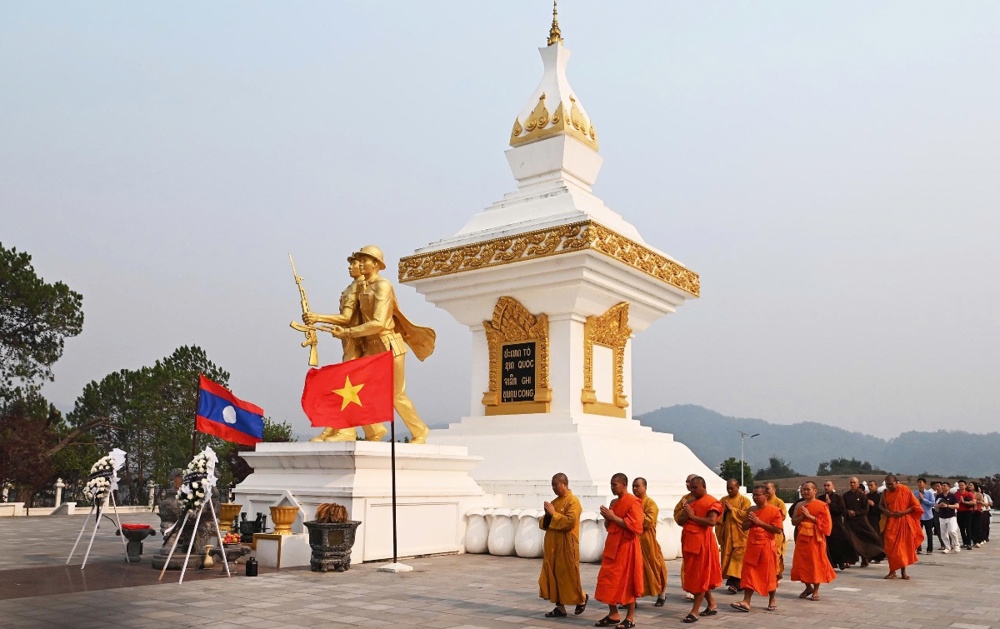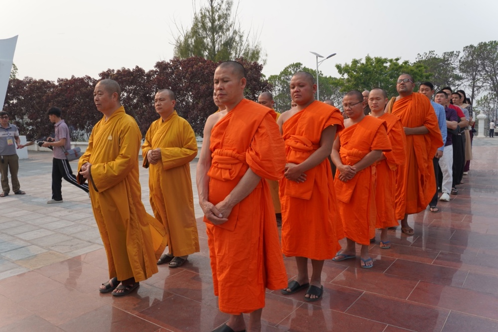 Chư Tôn đức cùng quý vị đại biểu đã dành phút mặc niệm, cầu nguyện cho hồn thiêng sông núi, anh linh các liệt sĩ gia hộ cho hai quốc gia hưng thịnh, tình đoàn kết Việt – Lào mãi bền vững.