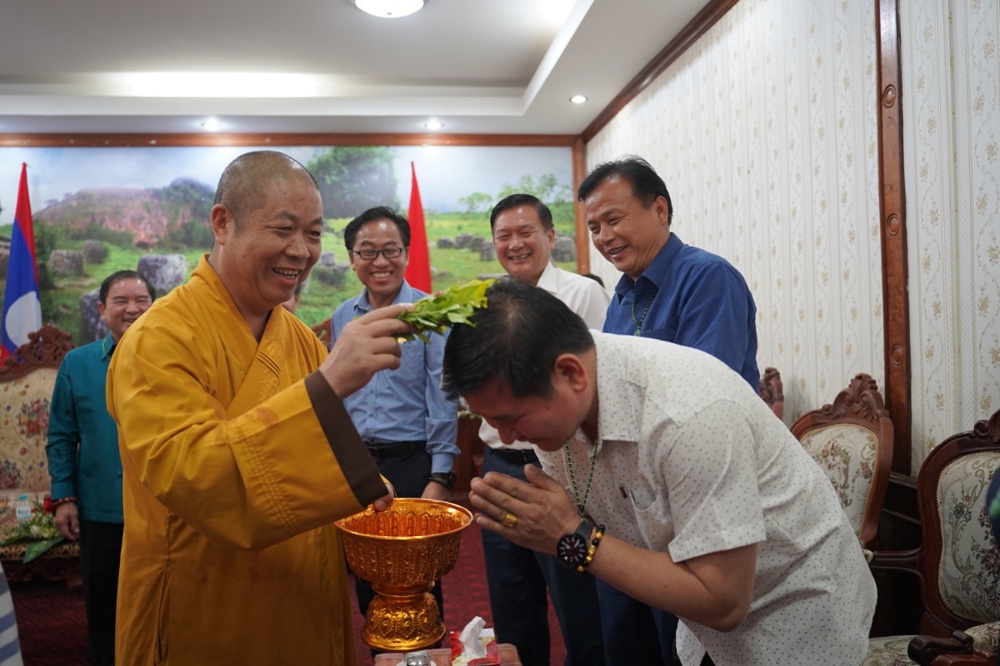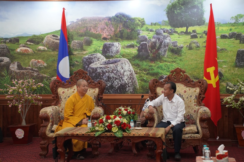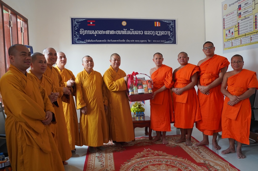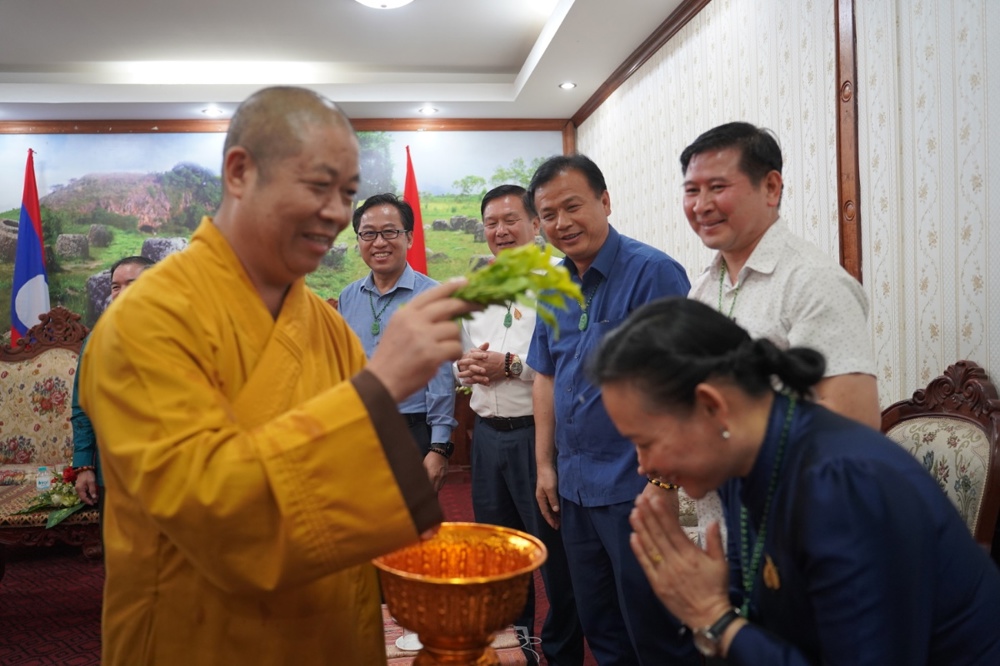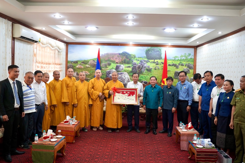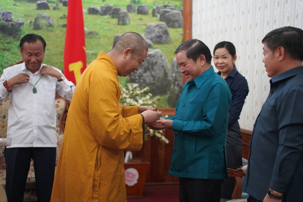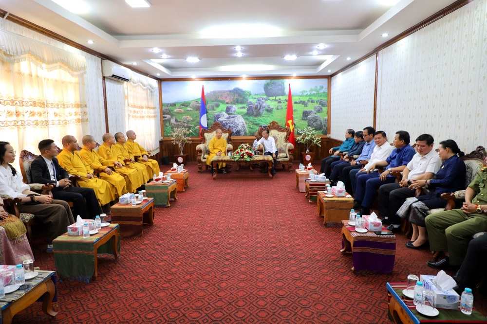 Hòa thượng Trưởng đoàn đã gửi lời chúc sức khỏe, thắm tình đạo vị và trân trọng mời đại diện Liên minh Phật giáo tỉnh Xiêng Khoảng sang tham dự Đại hội và Hội thảo Phật giáo tỉnh Nghệ An vào tháng 6/2026 tới đây.
