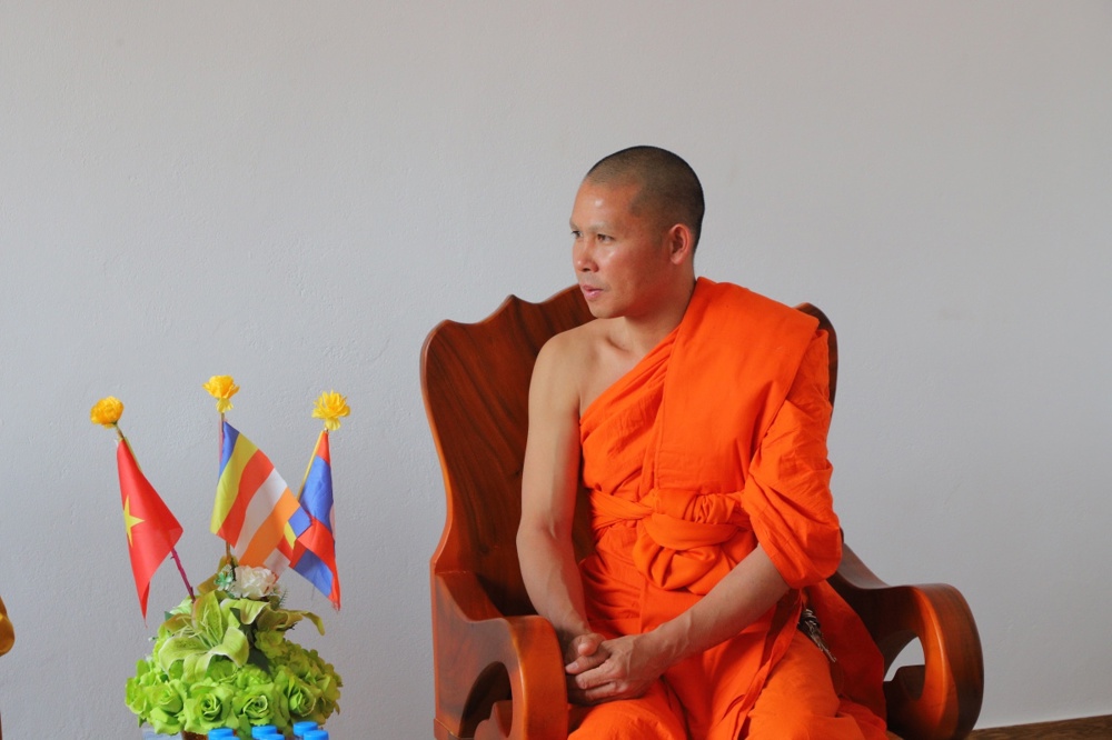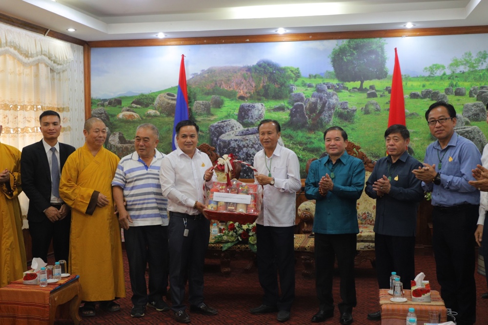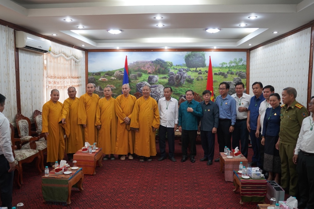 Tại Liên minh Phật giáo tỉnh Xiêng Khoảng: Đoàn đã tới thăm chư Tôn đức lãnh đạo Liên minh Phật giáo tỉnh do Ngài Văn-Xổm-Bút-Đa-Vông — Chủ tịch Liên minh làm đại diện.