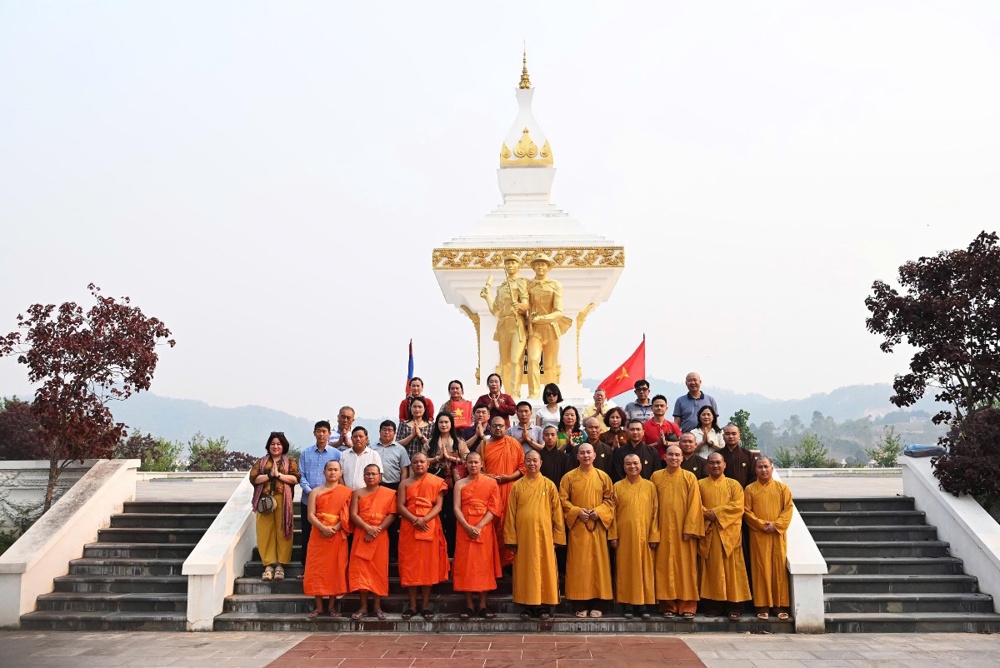 Cùng ngày, phái đoàn GHPGVN đã phối hợp cùng Liên minh Phật giáo tỉnh Xiêng Khoảng tổ chức lễ dâng hương tại Tượng đài Anh hùng Liệt sĩ Liên minh chiến đấu Việt – Lào.