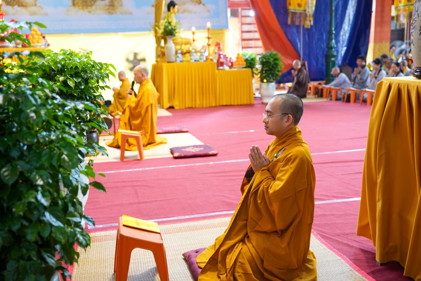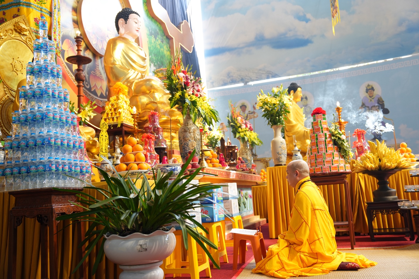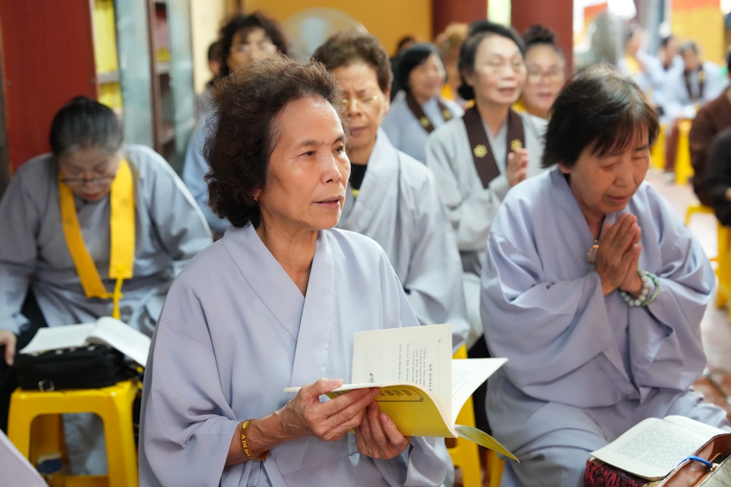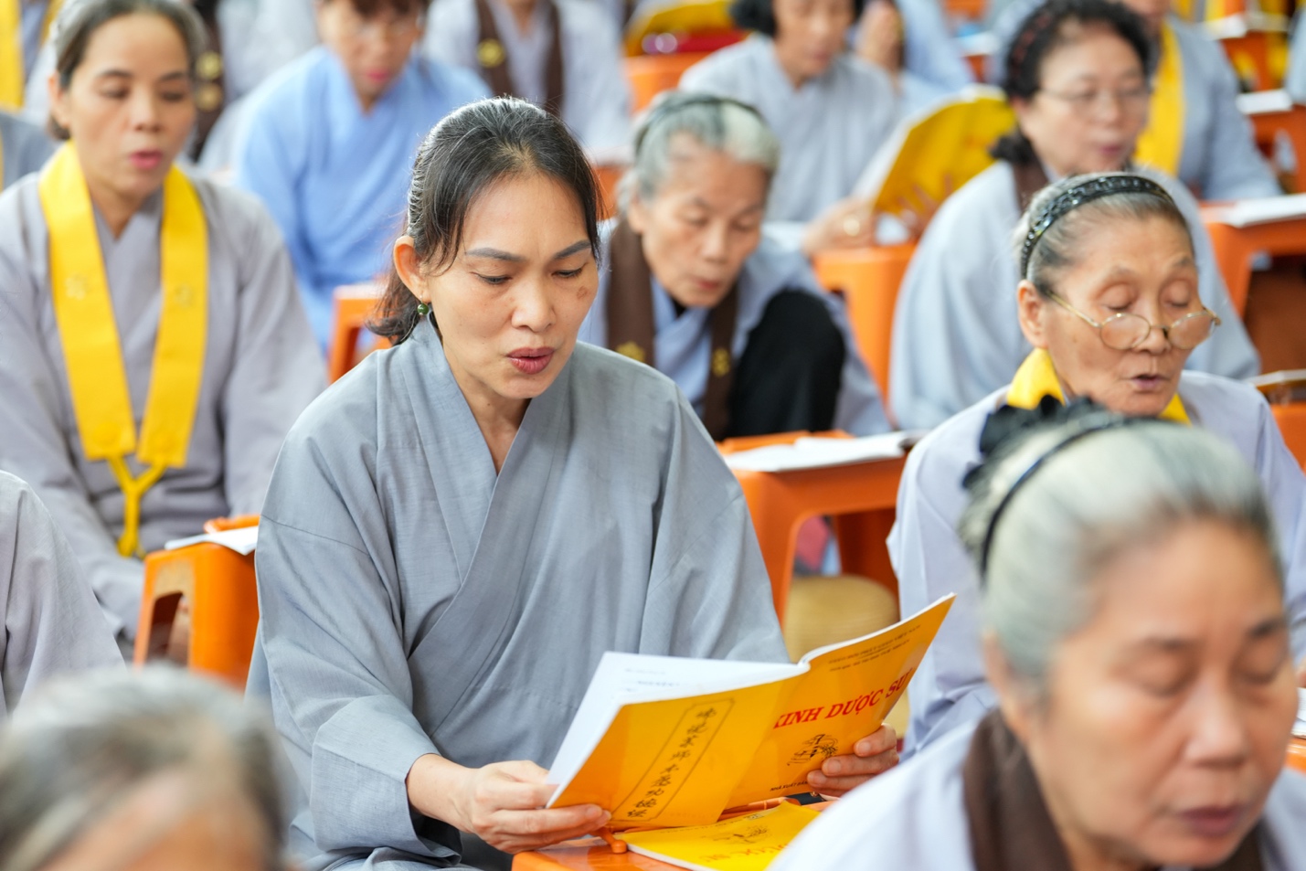 Sau thời pháp thoại ý nghĩa mà Thượng tọa truyền trao, dưới sự chủ lễ của chư Tôn đức Tăng bản tự, đại chúng tiếp tục thời khóa Tụng Kinh Dược Sư cầu nguyện thế giới hòa bình, Phật pháp xương minh, chúng sinh an lạc.