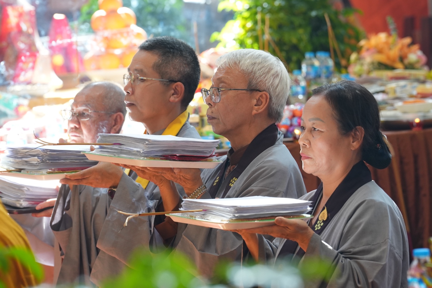 Buổi chiều cùng ngày, dưới sự chủ lễ của Hòa thượng Thích Bảo Nghiêm – Phó Chủ tịch Hội đồng Trị sự, Trưởng Ban Hoằng pháp Trung ương, Trụ trì chùa Bằng – Linh Tiên Tự, chư Tôn đức và toàn thể đại chúng đồng tụng Kinh Dược Sư, tạ đàn, khép lại Pháp hội Dược Sư truyền thống lần thứ XX thành tựu viên mãn viên mãn, để lại trong lòng mỗi hành giả niềm hoan hỷ và biết ơn sâu sắc.