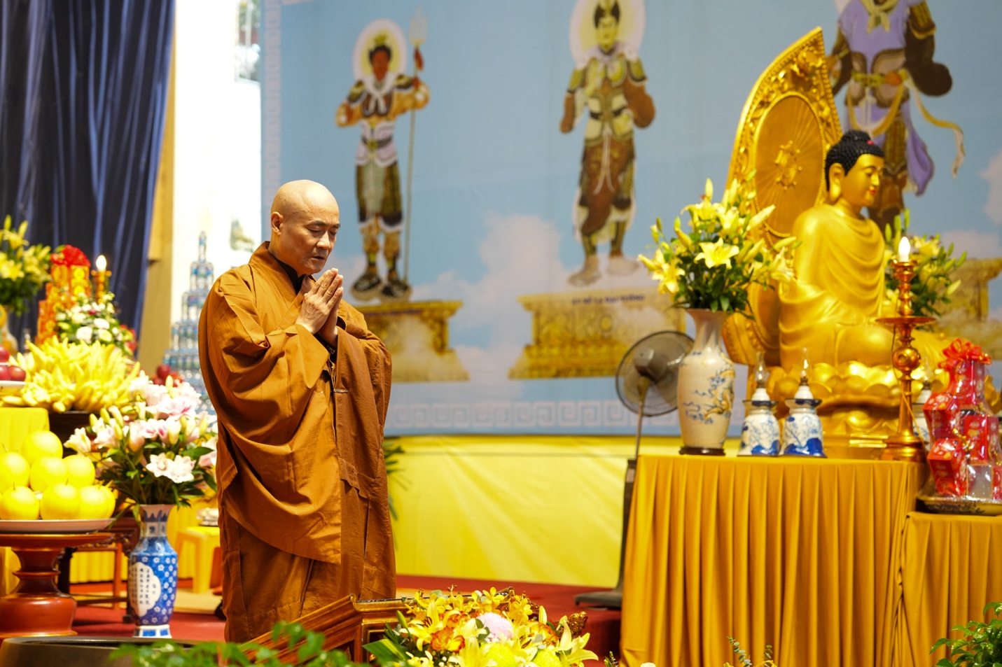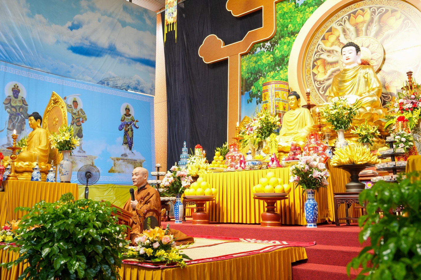 Trong buổi sáng bế mạc, đại chúng trang nghiêm cung thỉnh Thượng tọa Thích Tiến Đạt – Phó Viện trưởng Phân viện Nghiên cứu Phật học Việt Nam, Giám đốc Trung tâm Tư liệu Phật giáo tại Hà Nội, Viện chủ chùa Đại Từ Ân quang lâm pháp tòa, ban thời pháp thoại với chủ đề “Ý nghĩa số 7 trong Kinh Dược Sư.”
