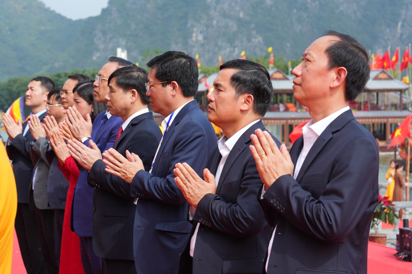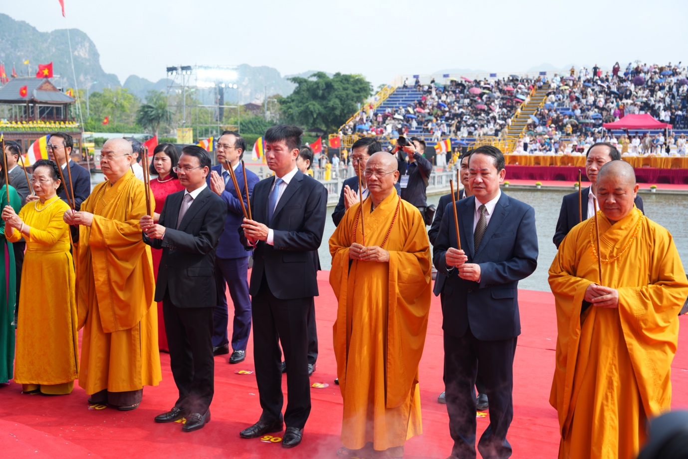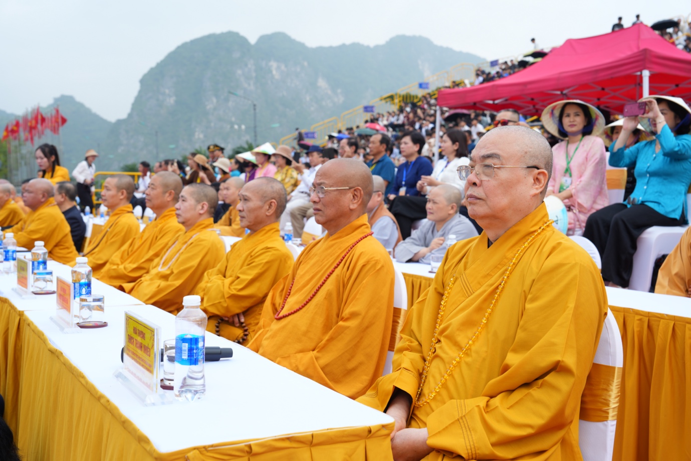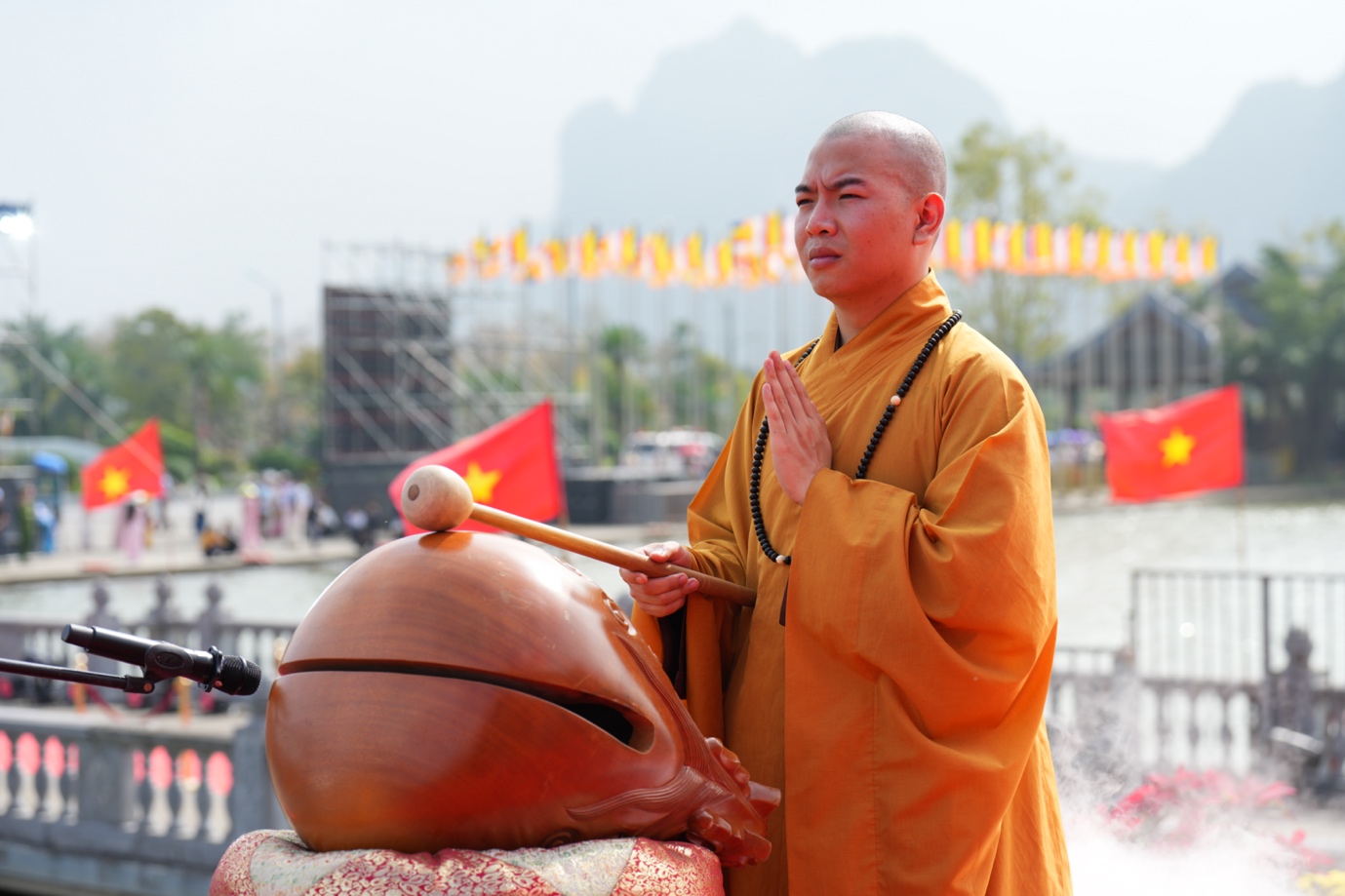 Tại buổi lễ, Trưởng lão Hòa thượng Thích Thanh Nhiễu, Ủy viên Thường trực Hội đồng Chứng minh, Phó Chủ tịch Thường trực HĐTS GHPGVN, Trụ trì chùa Tam Chúc cùng Ông Đặng Xuân Phong – Ủy viên Trung ương Đảng, Bí thư Tỉnh ủy Ninh Bình đã cử hành nghi thức thỉnh chuông, gióng trống và dâng hương cầu nguyện quốc thái dân an. Nghi lễ trang nghiêm không chỉ giàu ý nghĩa tâm linh mà còn gửi gắm tâm nguyện từ bi, cầu cho đất nước thái bình, nhân dân an lạc.