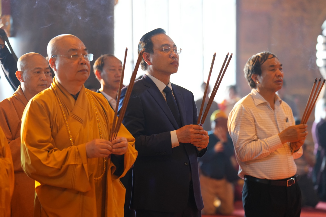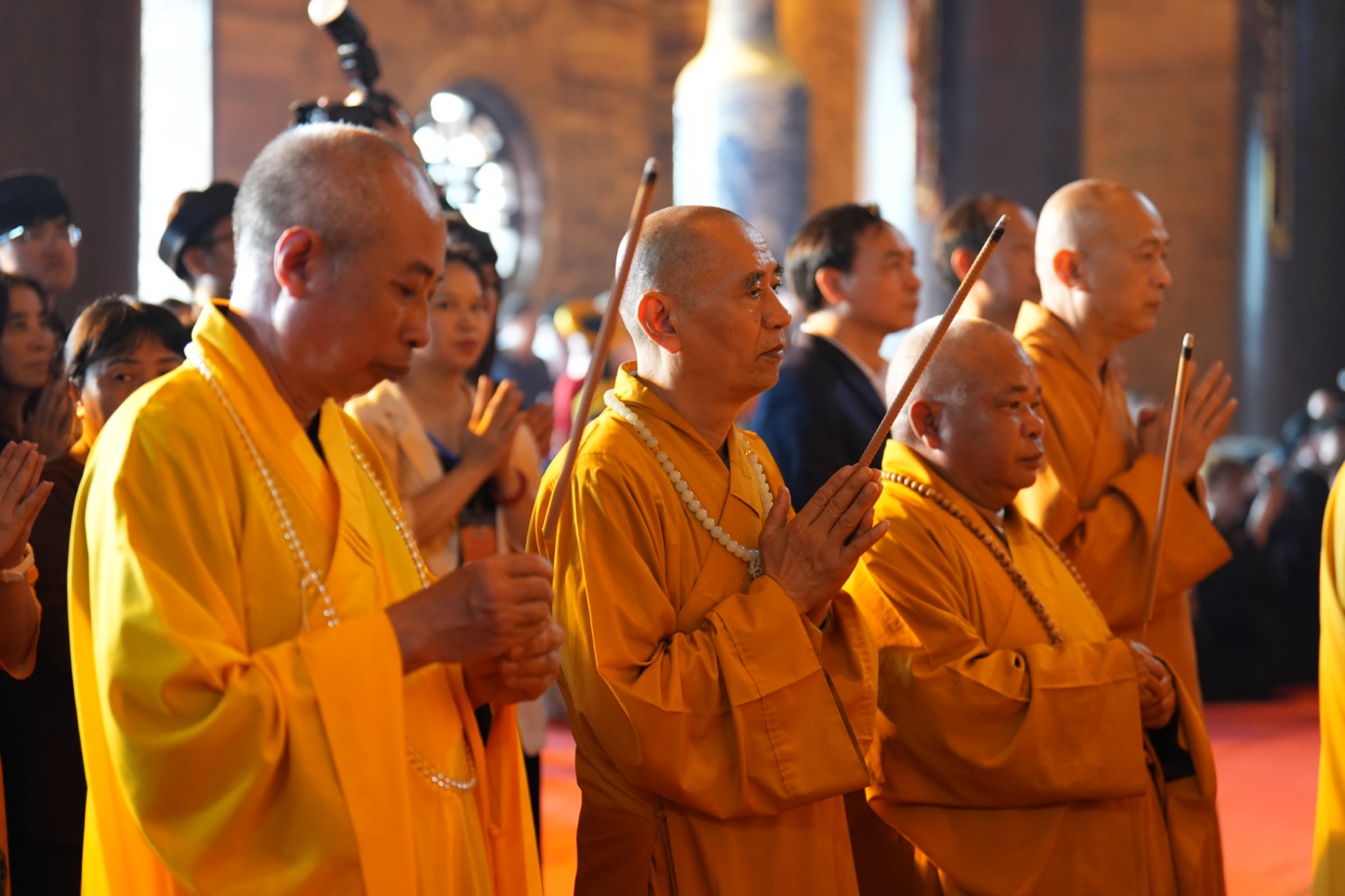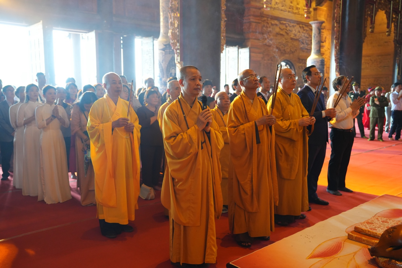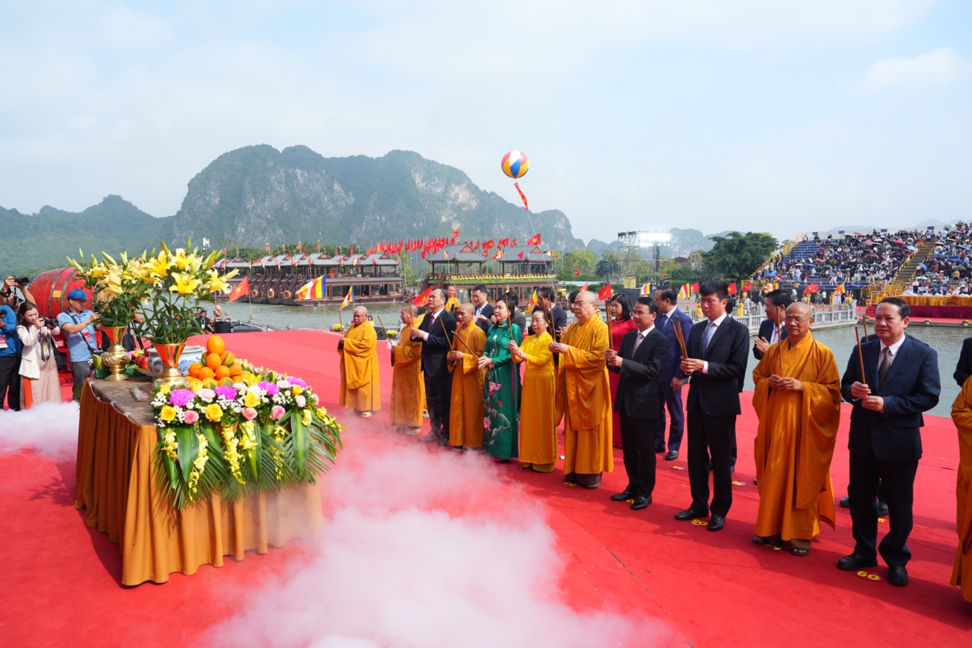 Tại buổi lễ, Trưởng lão Hòa thượng Thích Thanh Nhiễu, Ủy viên Thường trực Hội đồng Chứng minh, Phó Chủ tịch Thường trực HĐTS GHPGVN, Trụ trì chùa Tam Chúc cùng Ông Đặng Xuân Phong – Ủy viên Trung ương Đảng, Bí thư Tỉnh ủy Ninh Bình đã cử hành nghi thức thỉnh chuông, gióng trống và dâng hương cầu nguyện quốc thái dân an. Nghi lễ trang nghiêm không chỉ giàu ý nghĩa tâm linh mà còn gửi gắm tâm nguyện từ bi, cầu cho đất nước thái bình, nhân dân an lạc.