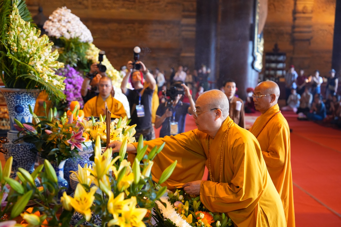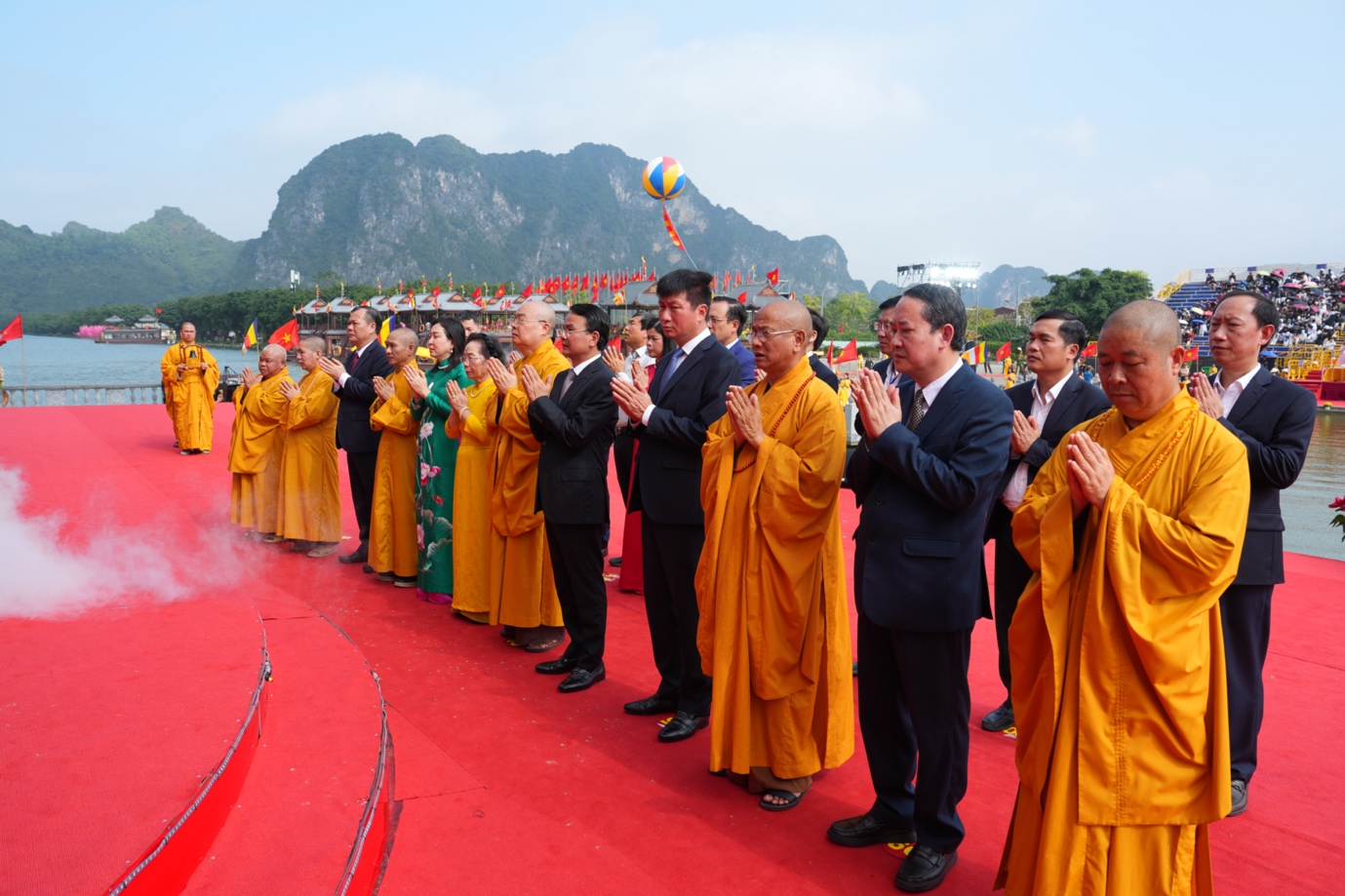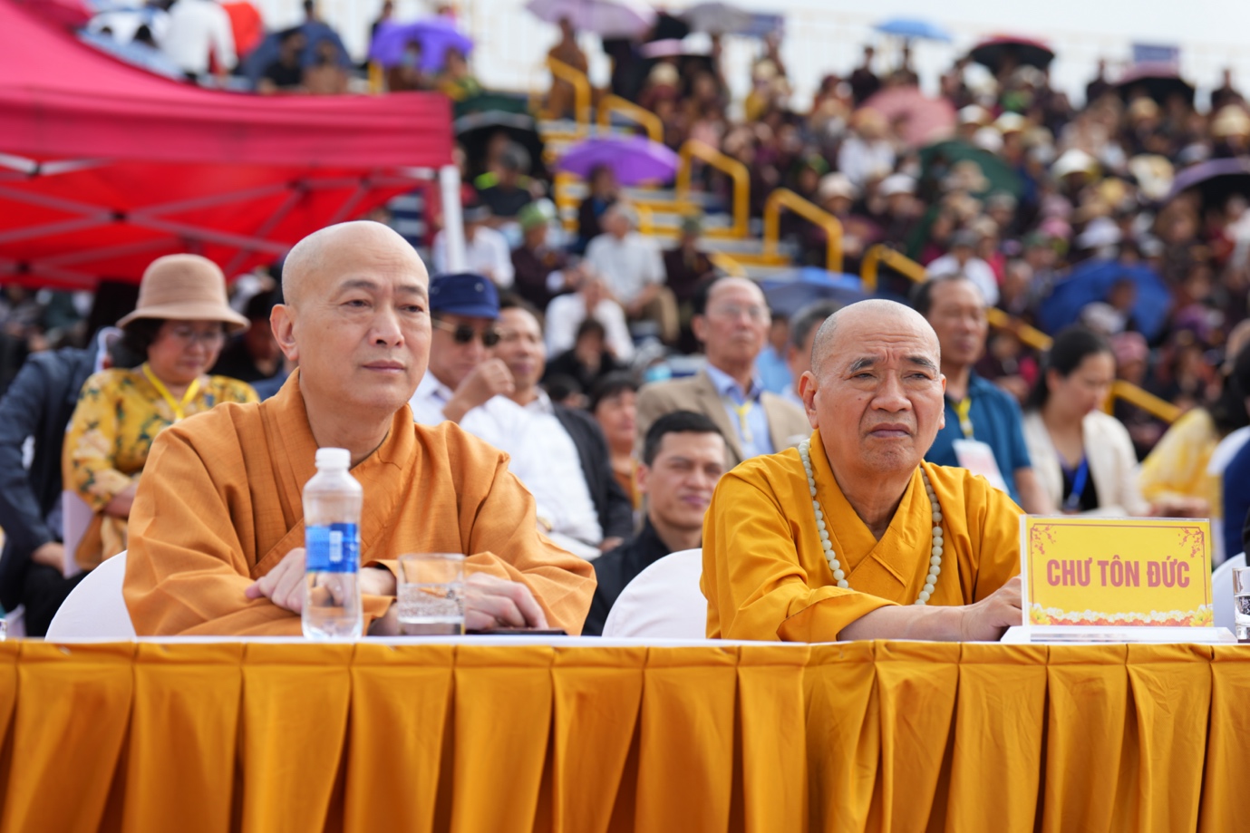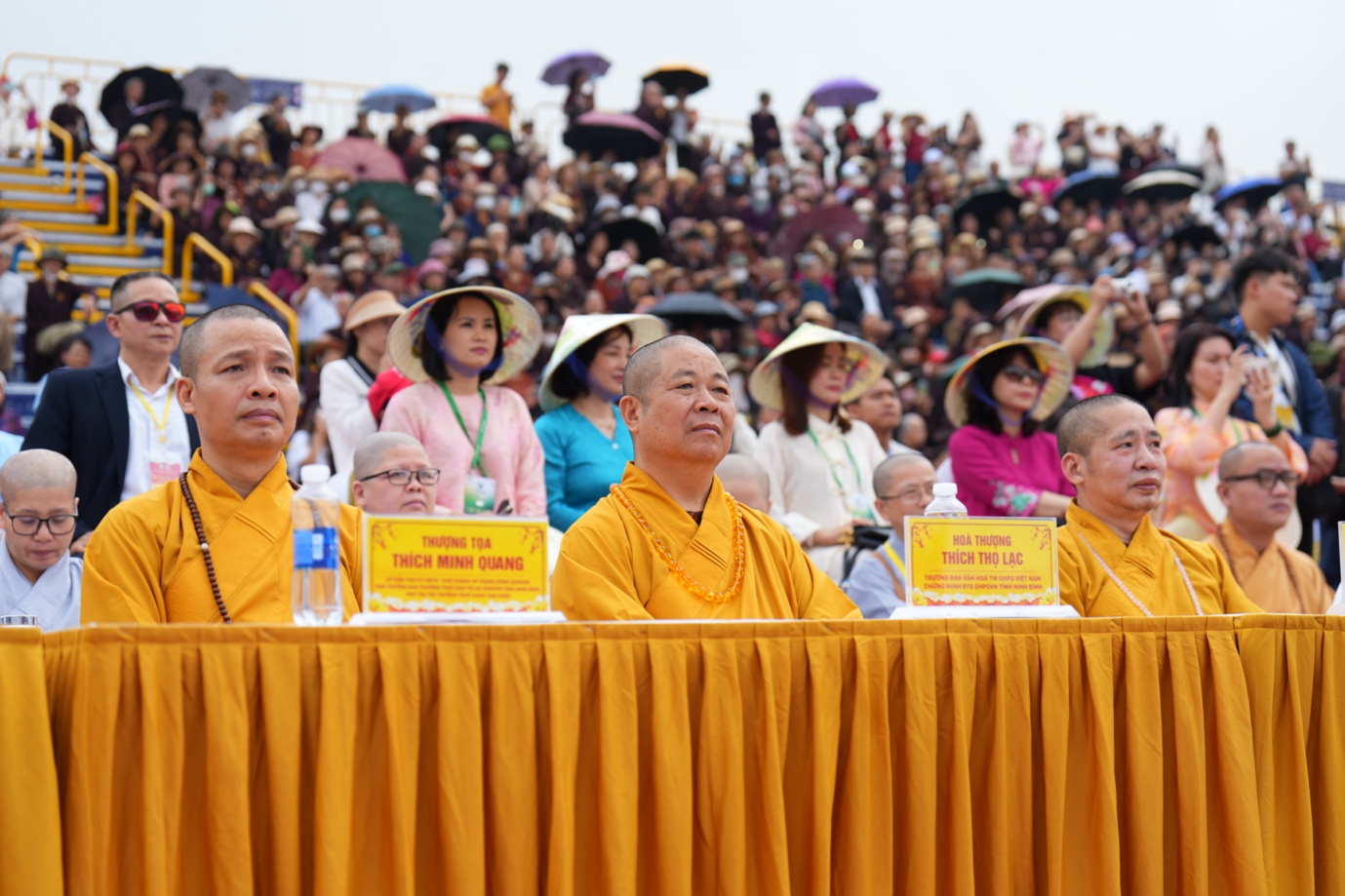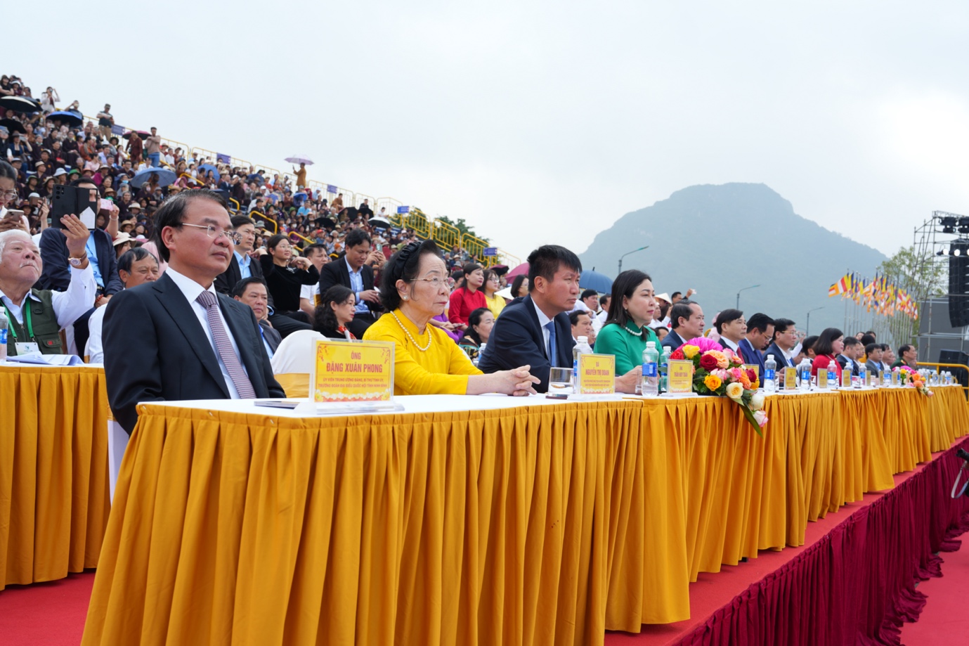 Tại buổi lễ, Trưởng lão Hòa thượng Thích Thanh Nhiễu, Ủy viên Thường trực Hội đồng Chứng minh, Phó Chủ tịch Thường trực HĐTS GHPGVN, Trụ trì chùa Tam Chúc cùng Ông Đặng Xuân Phong – Ủy viên Trung ương Đảng, Bí thư Tỉnh ủy Ninh Bình đã cử hành nghi thức thỉnh chuông, gióng trống và dâng hương cầu nguyện quốc thái dân an. Nghi lễ trang nghiêm không chỉ giàu ý nghĩa tâm linh mà còn gửi gắm tâm nguyện từ bi, cầu cho đất nước thái bình, nhân dân an lạc.