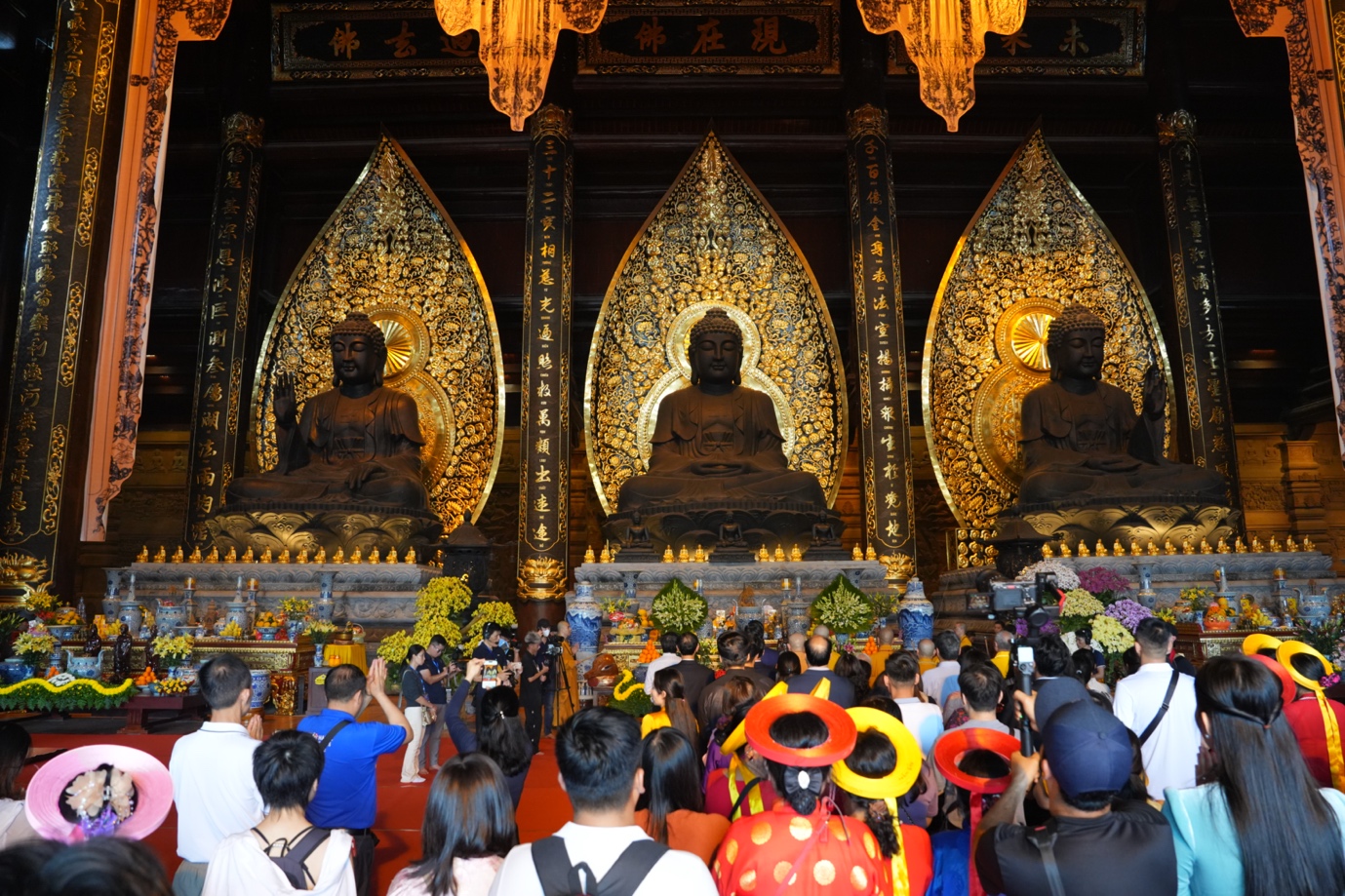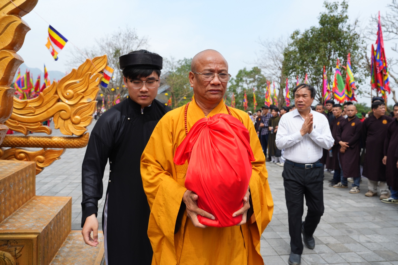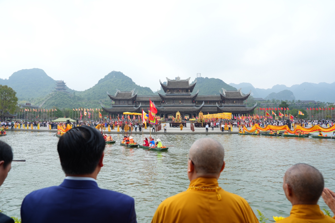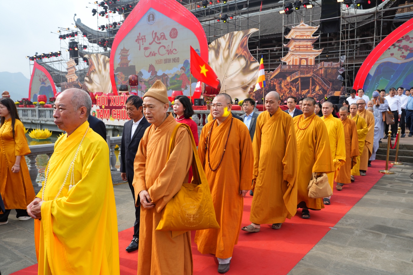 Tại buổi lễ, Trưởng lão Hòa thượng Thích Thanh Nhiễu, Ủy viên Thường trực Hội đồng Chứng minh, Phó Chủ tịch Thường trực HĐTS GHPGVN, Trụ trì chùa Tam Chúc cùng Ông Đặng Xuân Phong – Ủy viên Trung ương Đảng, Bí thư Tỉnh ủy Ninh Bình đã cử hành nghi thức thỉnh chuông, gióng trống và dâng hương cầu nguyện quốc thái dân an. Nghi lễ trang nghiêm không chỉ giàu ý nghĩa tâm linh mà còn gửi gắm tâm nguyện từ bi, cầu cho đất nước thái bình, nhân dân an lạc.