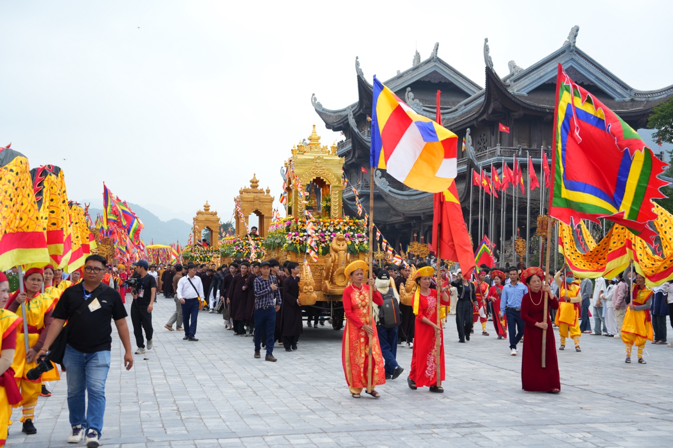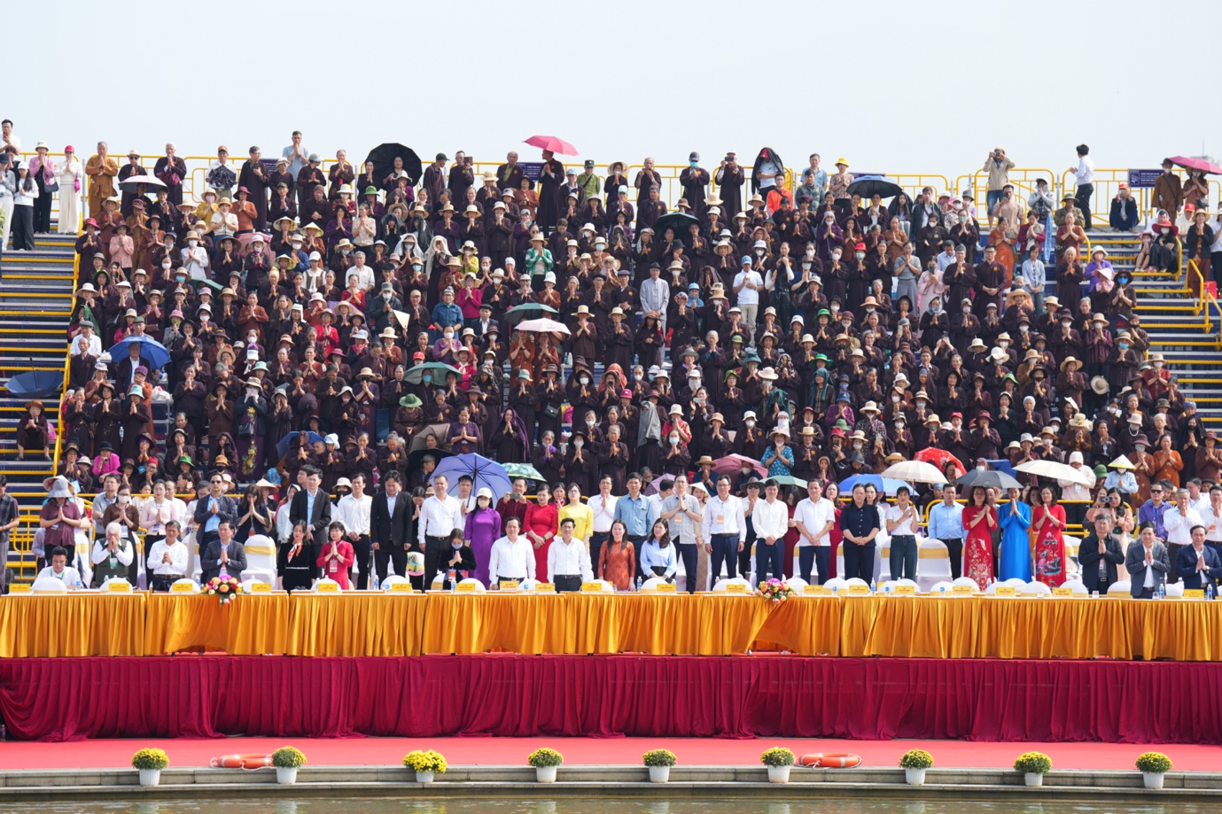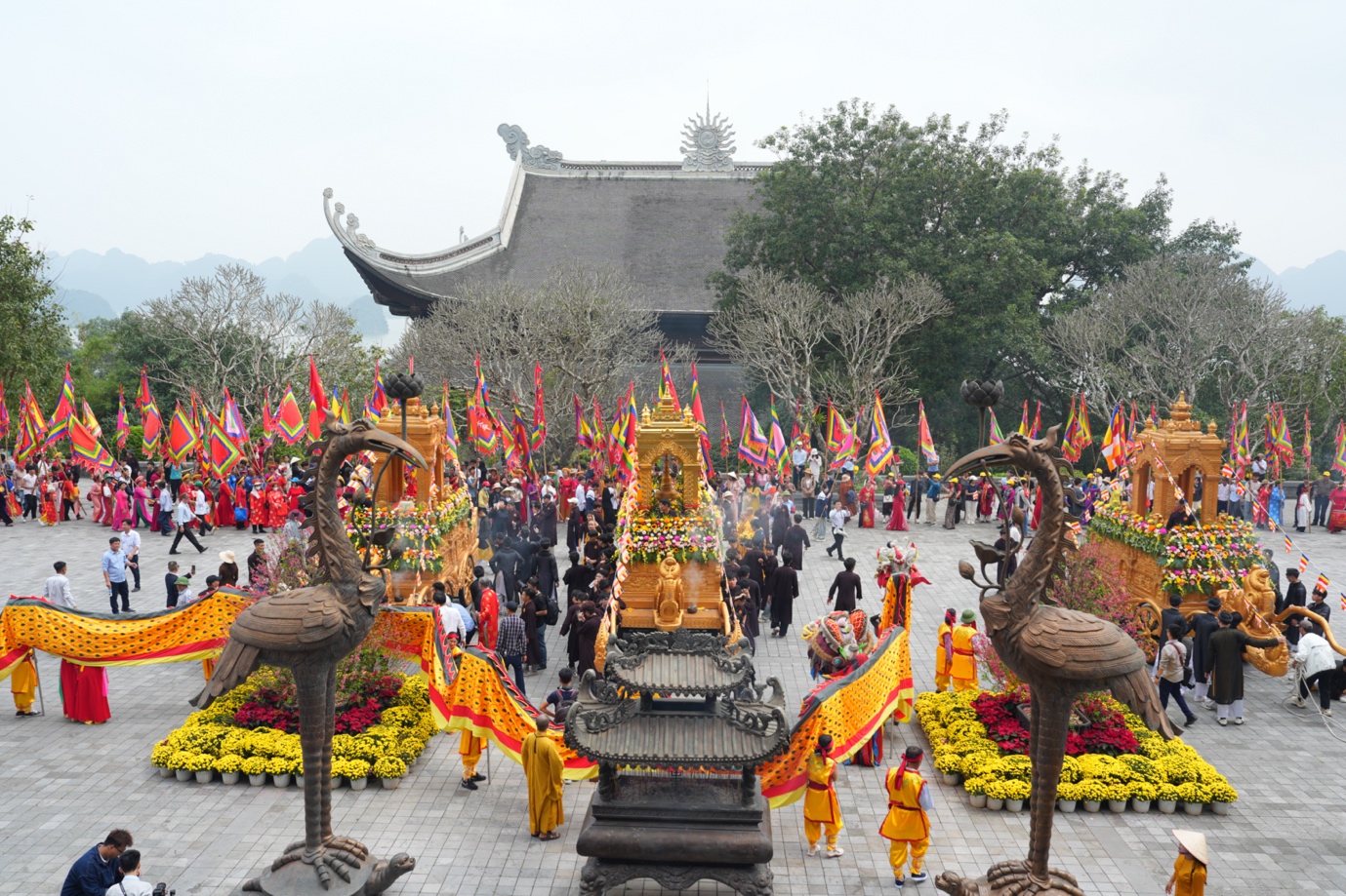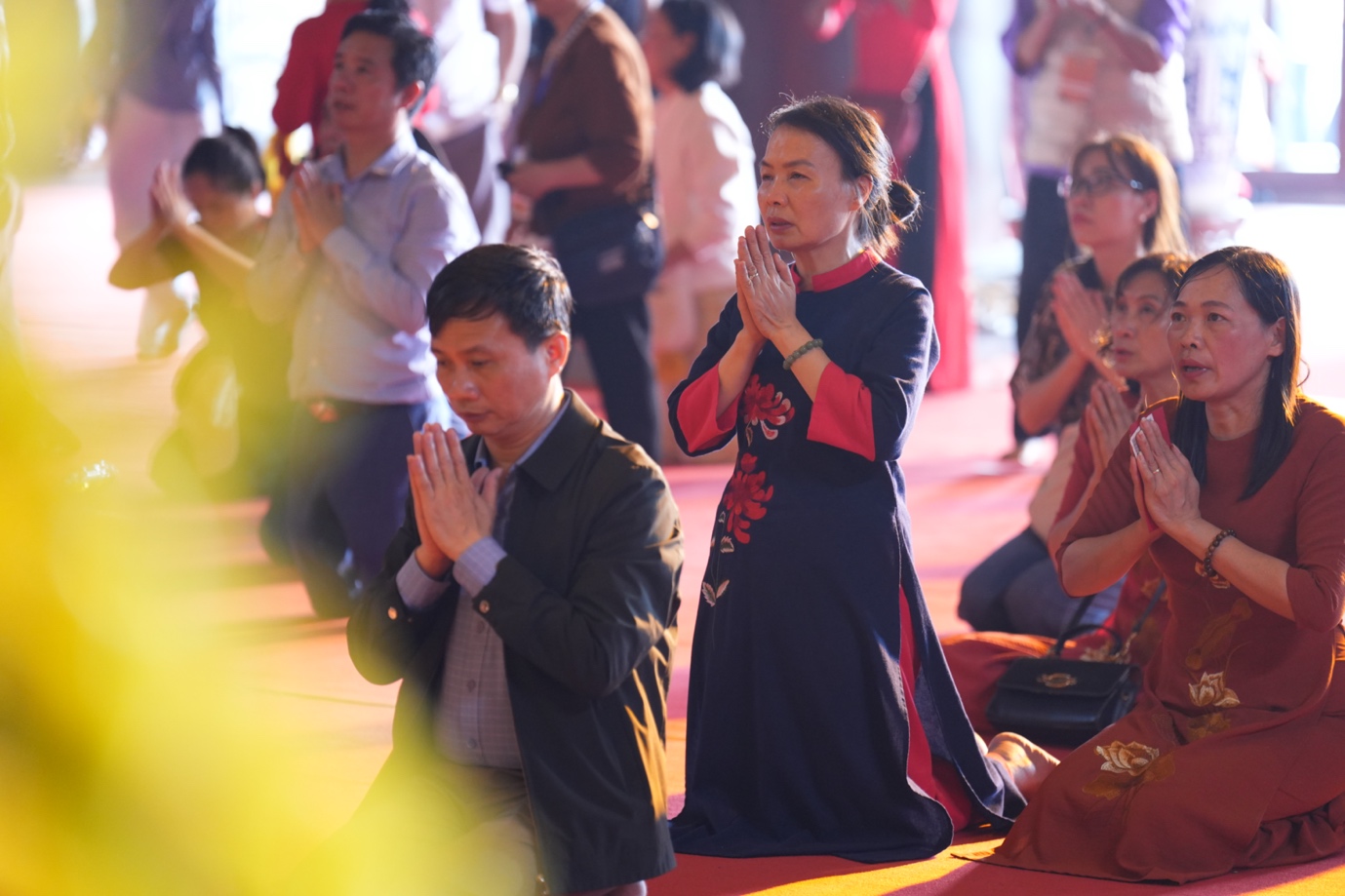 Tại buổi lễ, Trưởng lão Hòa thượng Thích Thanh Nhiễu, Ủy viên Thường trực Hội đồng Chứng minh, Phó Chủ tịch Thường trực HĐTS GHPGVN, Trụ trì chùa Tam Chúc cùng Ông Đặng Xuân Phong – Ủy viên Trung ương Đảng, Bí thư Tỉnh ủy Ninh Bình đã cử hành nghi thức thỉnh chuông, gióng trống và dâng hương cầu nguyện quốc thái dân an. Nghi lễ trang nghiêm không chỉ giàu ý nghĩa tâm linh mà còn gửi gắm tâm nguyện từ bi, cầu cho đất nước thái bình, nhân dân an lạc.