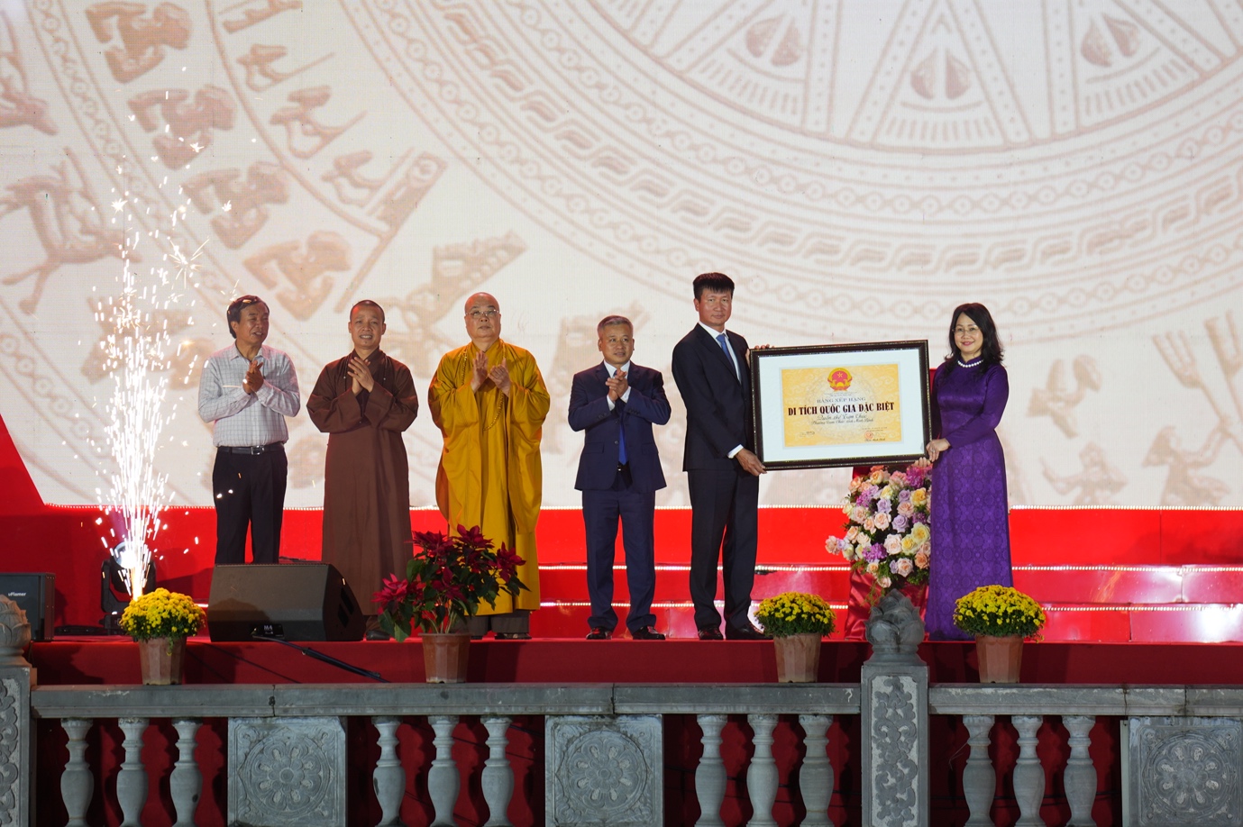Tối cùng ngày, thừa ủy quyền của Thủ tướng Chính phủ, bà Lâm Thị Phương Thanh – Ủy viên Trung ương Đảng, Thứ trưởng Thường trực Bộ Văn hóa, Thể thao và Du lịch đã trao Bằng xếp hạng Di tích Quốc gia đặc biệt Quần thể danh thắng Tam Chúc cho tỉnh Ninh Bình.