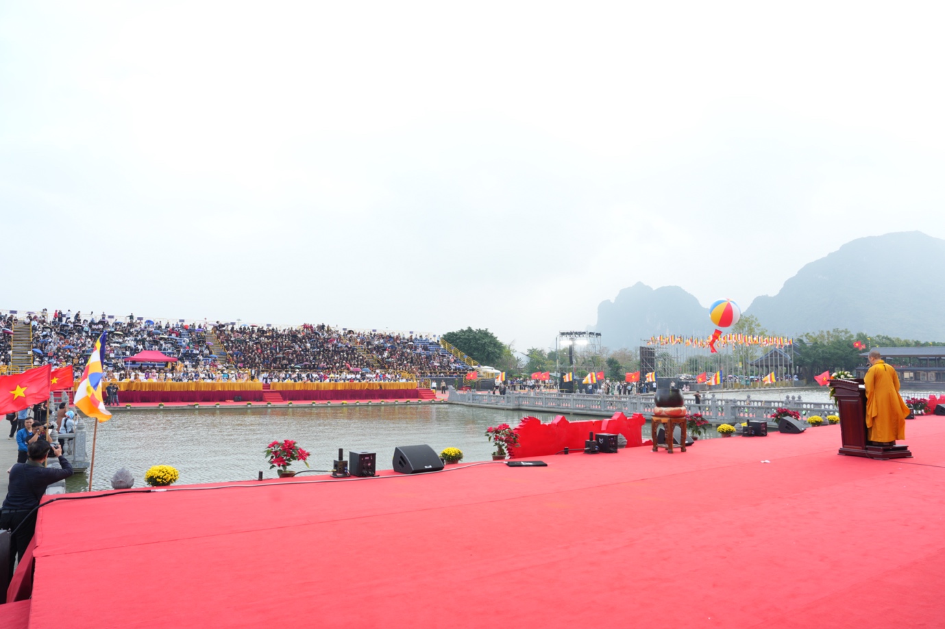 Đại mệnh Hòa thượng Trụ trì chùa Tam Chúc, Thượng tọa Thích Minh Quang – Uỷ viên Thư ký HĐTS, Phó Trưởng ban Thường trực BTS GHPGVN tỉnh Ninh Bình, Phó Trụ trì chùa Tam Chúc đã đọc diễn văn khai mạc và nhấn mạnh: Từ những dấu tích khảo cổ được phát hiện dưới lòng hồ Tam Chúc như cột gỗ, chân tảng đá hình hoa sen và các câu chuyện dân gian còn được lưu truyền cho thấy, cách đây hơn 1.000 năm, nơi đây là vùng đất linh thiêng. Từ xưa kia đã diễn ra các sinh hoạt văn hóa, tín ngưỡng, lễ hội, rước nước, các nghi lễ cầu mưa thuận gió hòa, quốc thái dân an,…