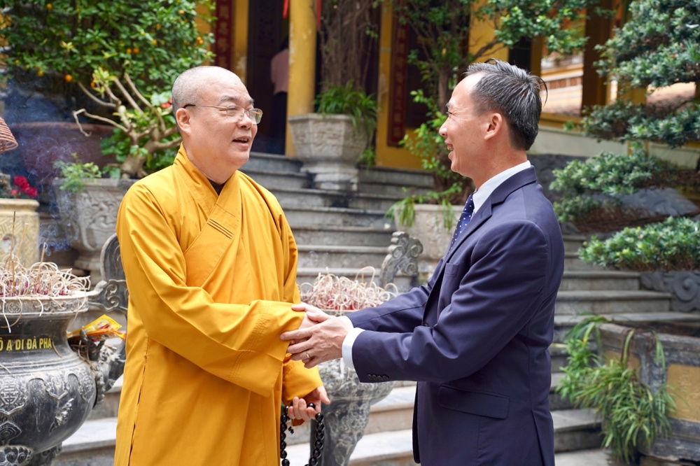 Đón tiếp phái đoàn có Trưởng lão Hòa thượng Thích Thanh Nhiễu, Ủy viên Thường trực Hội đồng Chứng minh, Phó Chủ tịch Thường trực Hội đồng Trị sự; chư vị Phó Chủ tịch Hội đồng Trị sự: Hòa thượng Thích Gia Quang, Hòa thượng Thích Thanh Điện, Thượng toạ Thích Thanh Tuấn, phó Tổng thư ký kiêm chánh văn phòng TƯ GHPGVN cùng chư tôn đức Tăng Ni Văn phòng I T.Ư.