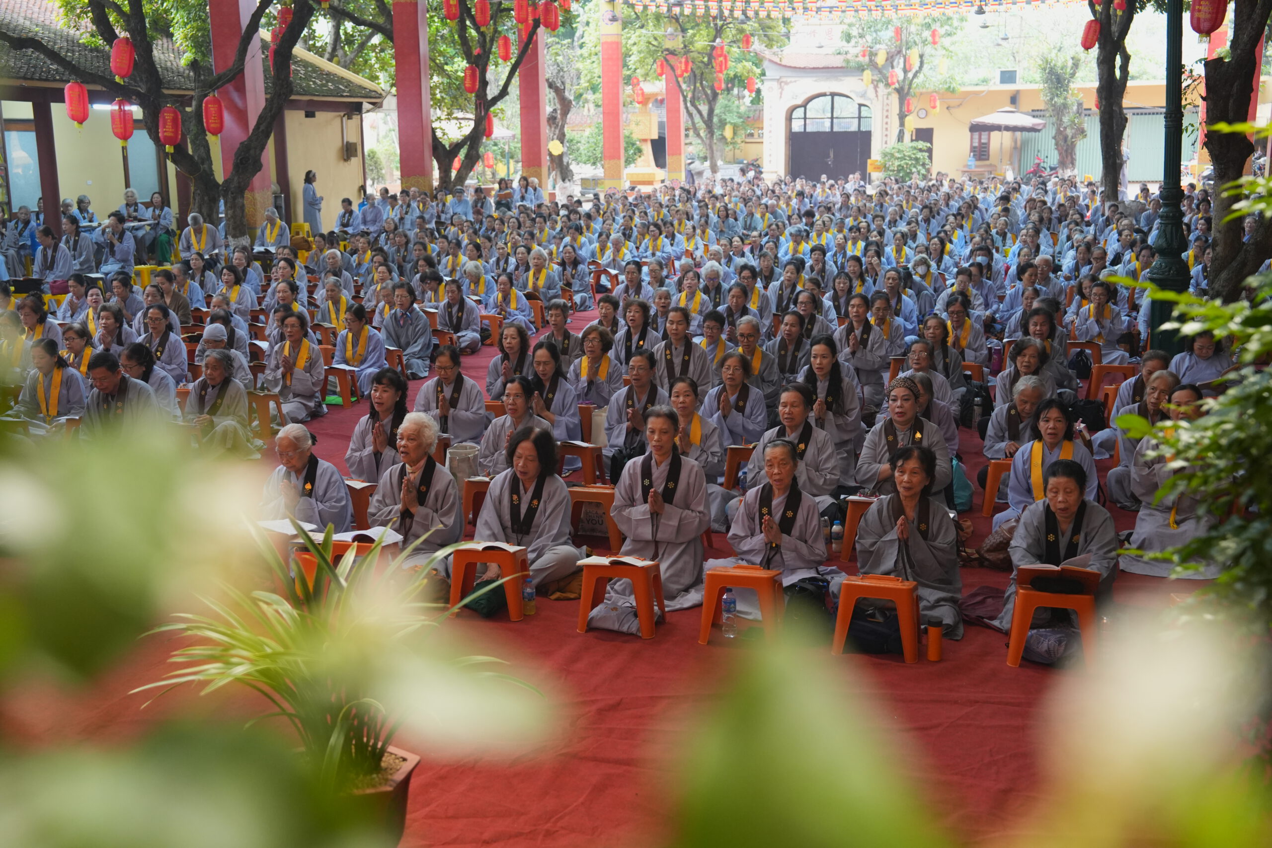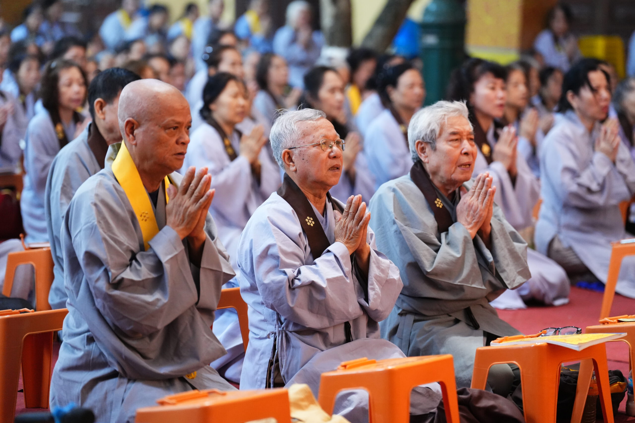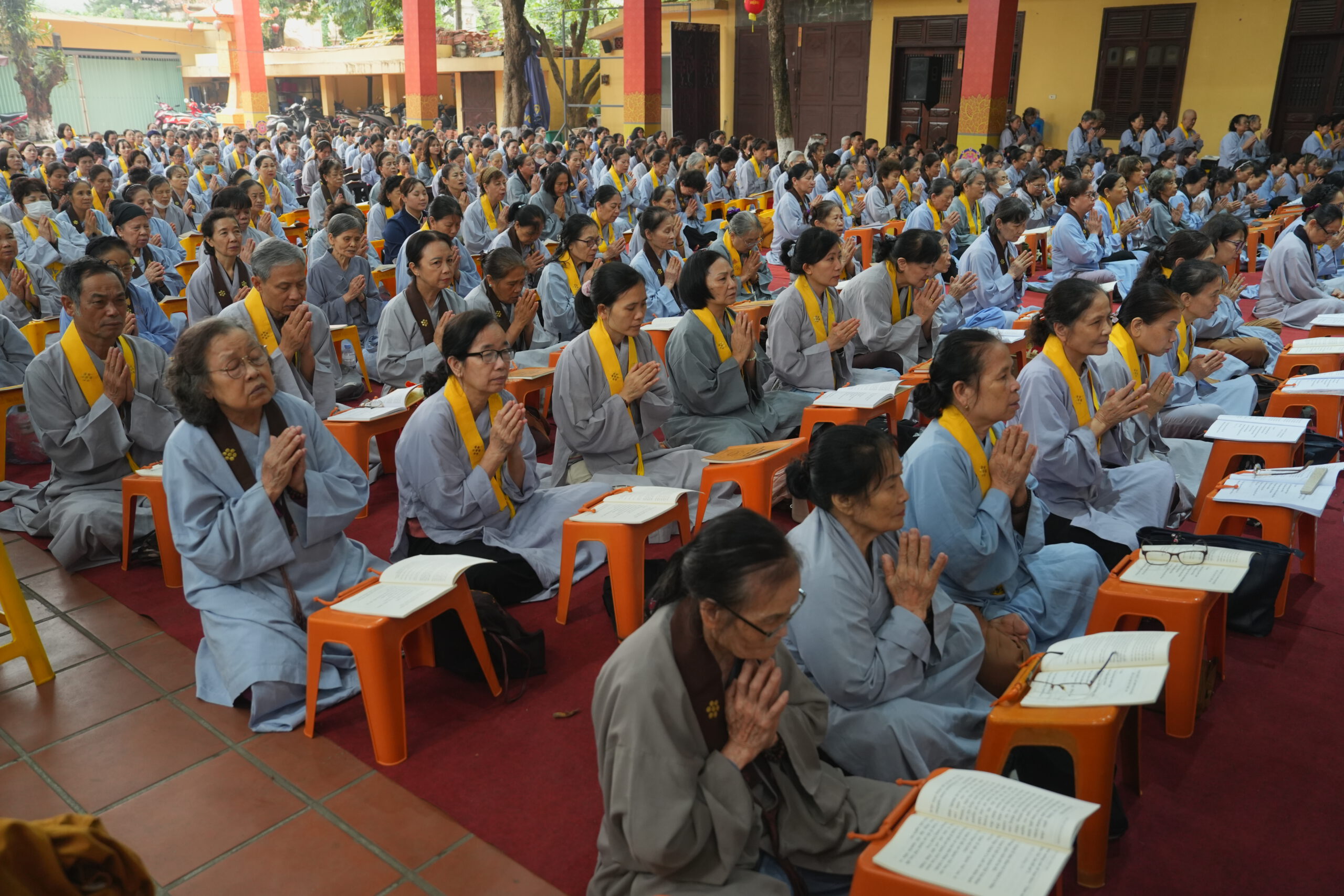 Hình ảnh toàn thể đại chúng đồng loạt ngũ thể đầu địa, nhất tâm đỉnh lễ, sân chùa kín đầy người mà vẫn giữ được sự trang nghiêm, thanh tịnh, đó chính là biểu hiện sống động của tinh thần tu học chân chính. Hoà thượng trân trọng tán thán chư Tôn đức, tán thán Ban lãnh đạo đạo tràng và toàn thể quý Phật tử đã tinh tấn hành trì, làm nên một ngày tu thật viên mãn.