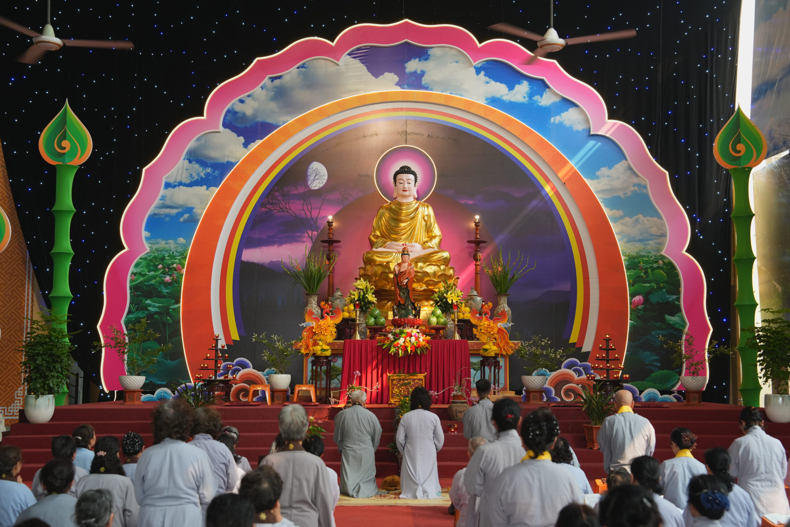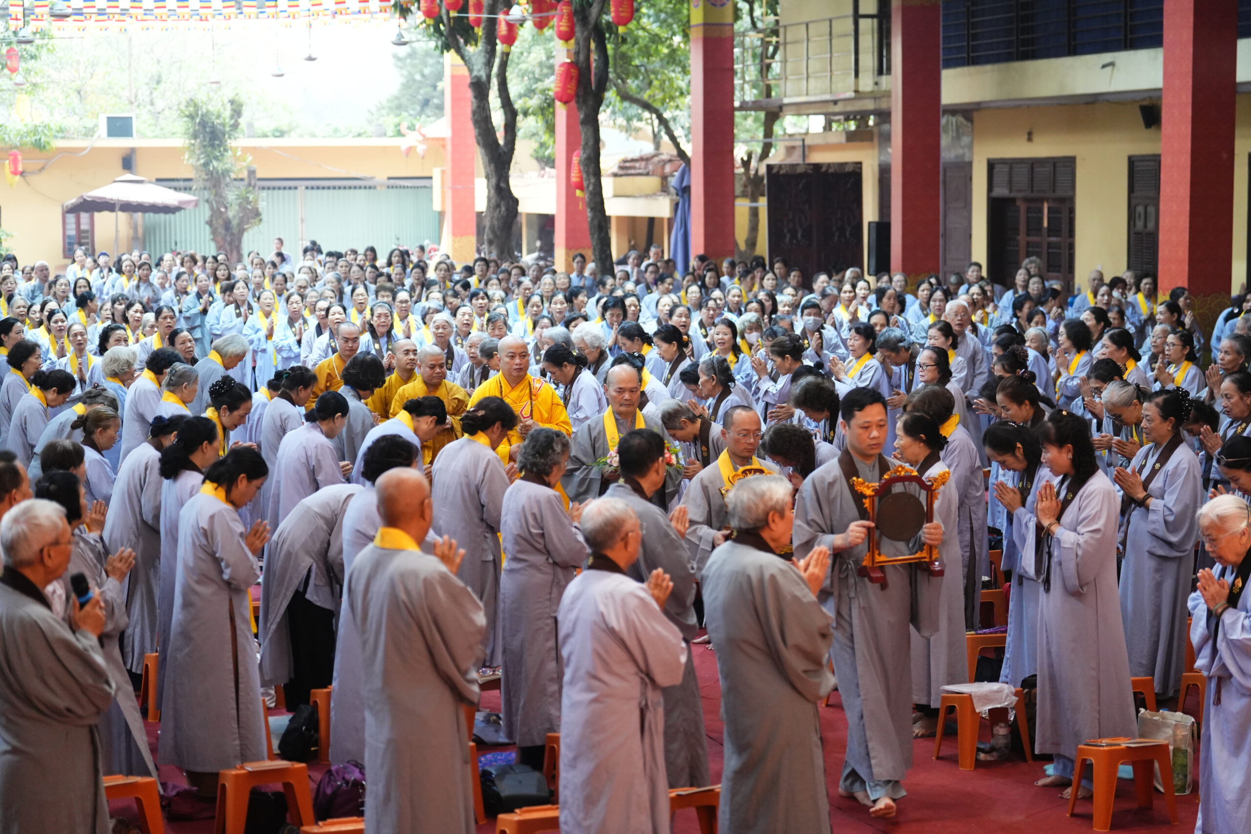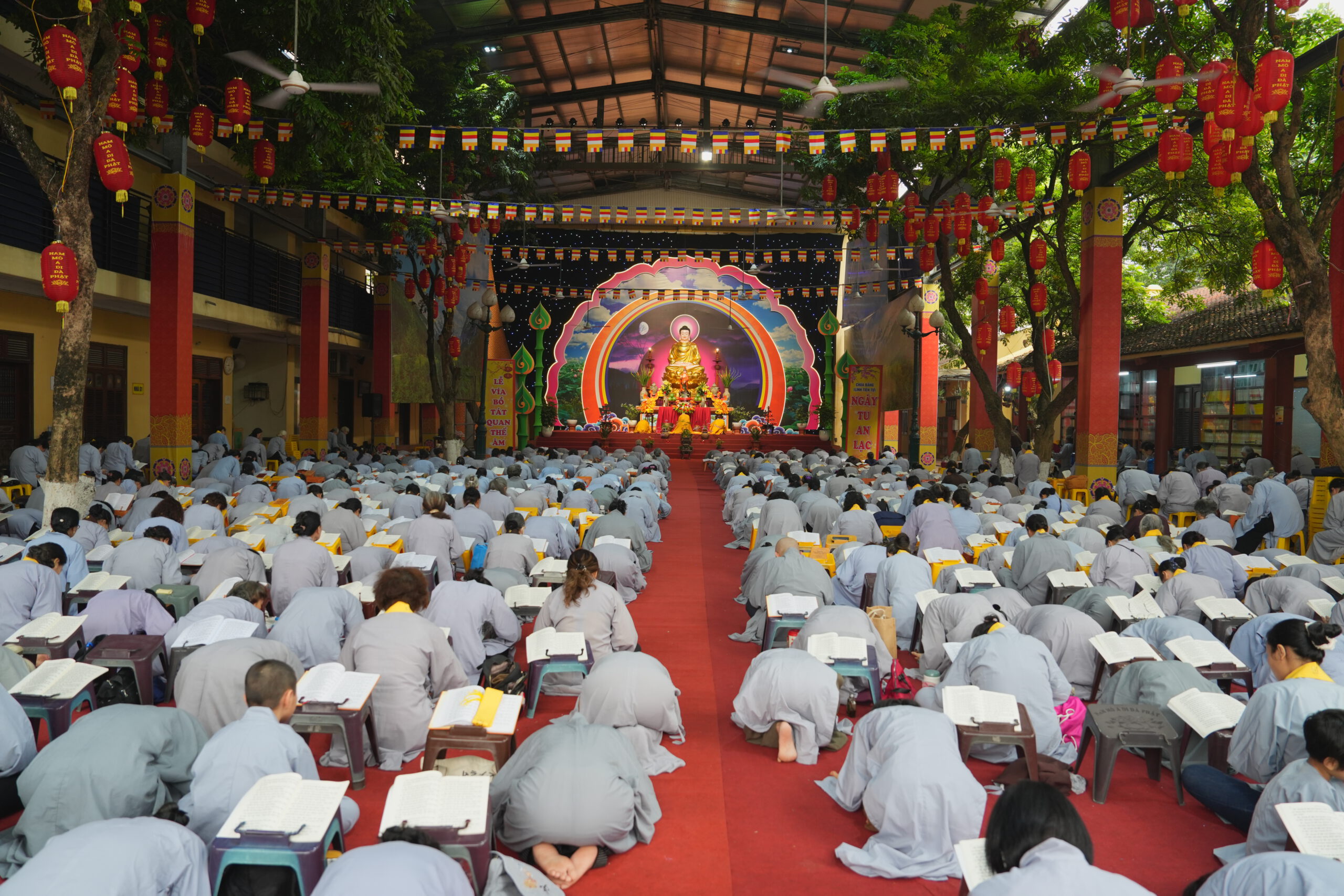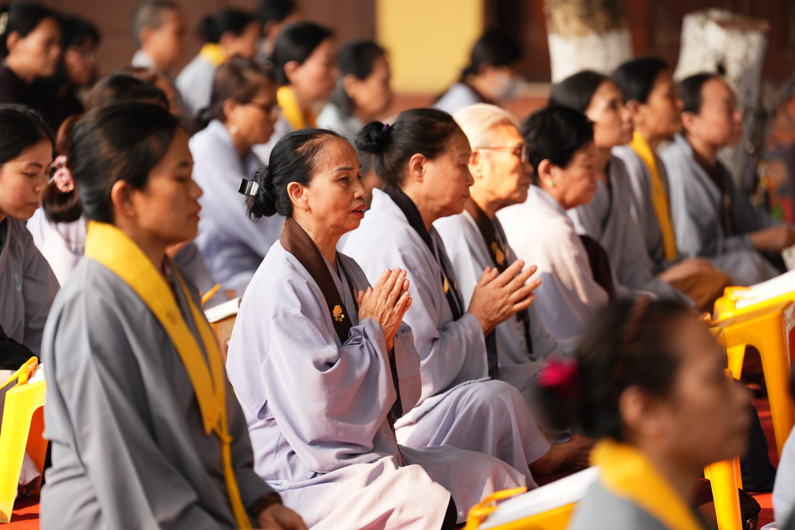 Hình ảnh toàn thể đại chúng đồng loạt ngũ thể đầu địa, nhất tâm đỉnh lễ, sân chùa kín đầy người mà vẫn giữ được sự trang nghiêm, thanh tịnh, đó chính là biểu hiện sống động của tinh thần tu học chân chính. Hoà thượng trân trọng tán thán chư Tôn đức, tán thán Ban lãnh đạo đạo tràng và toàn thể quý Phật tử đã tinh tấn hành trì, làm nên một ngày tu thật viên mãn.