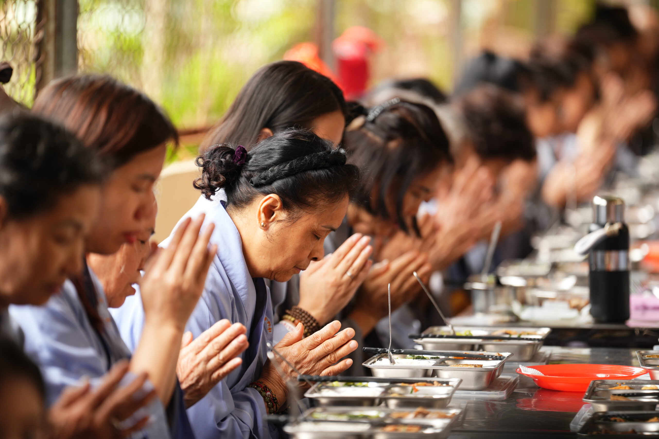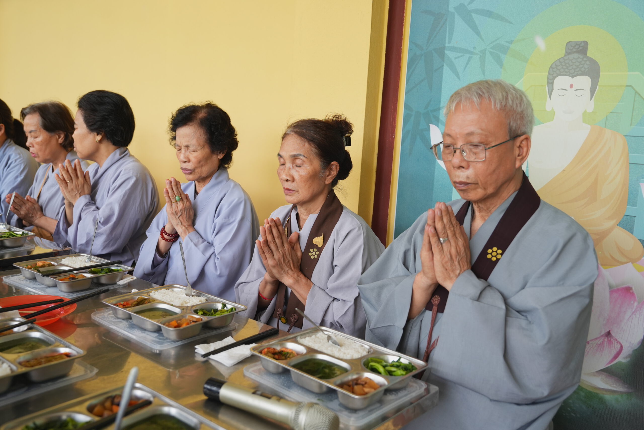 Buổi trưa, đại chúng tiếp tục nghi thức cúng Quá Đường. Trong sự tĩnh lặng, bữa cơm trở thành pháp vị, nuôi thân trong tỉnh thức và nuôi tâm trong ánh sáng Phật pháp.
