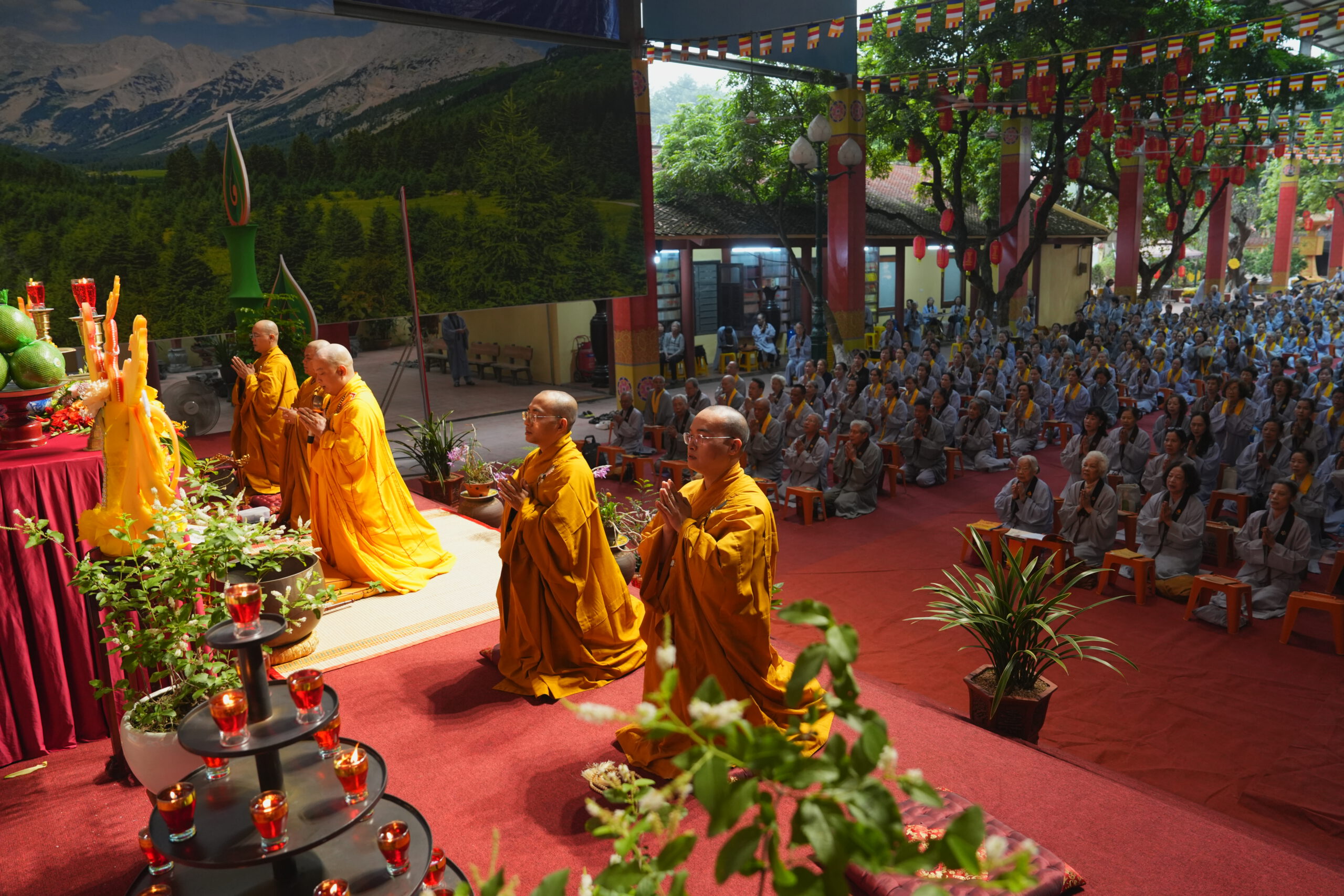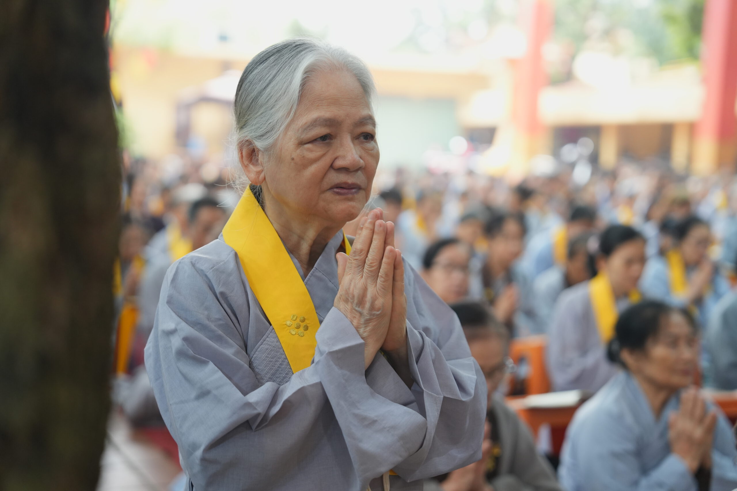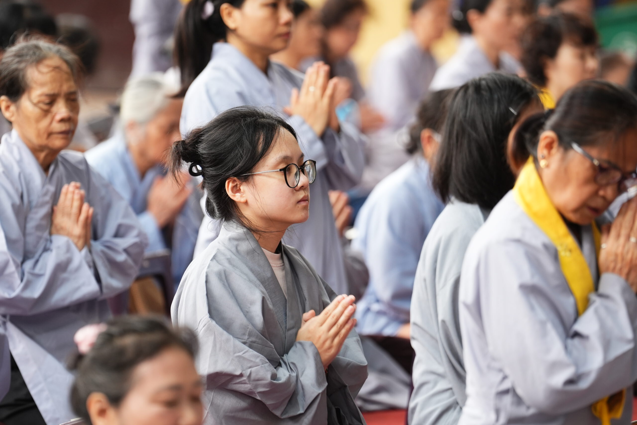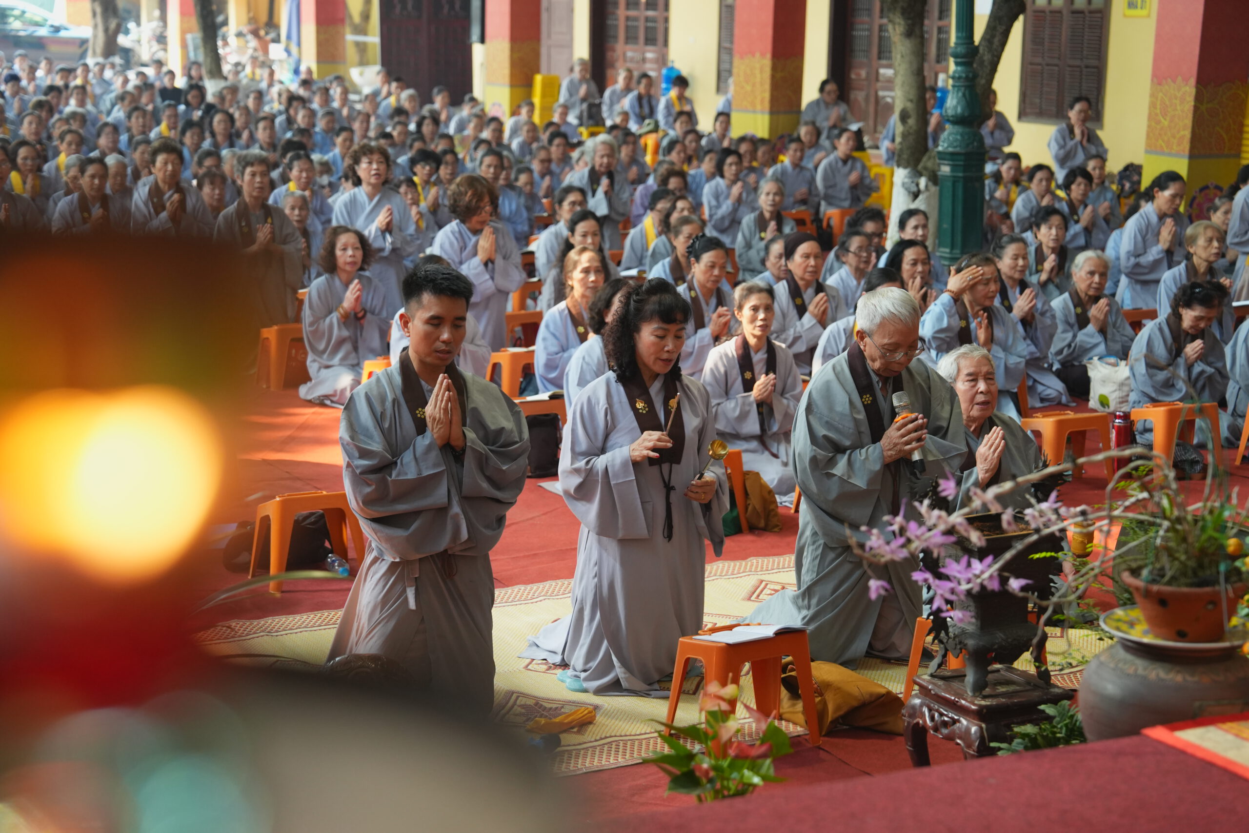 Hình ảnh toàn thể đại chúng đồng loạt ngũ thể đầu địa, nhất tâm đỉnh lễ, sân chùa kín đầy người mà vẫn giữ được sự trang nghiêm, thanh tịnh, đó chính là biểu hiện sống động của tinh thần tu học chân chính. Hoà thượng trân trọng tán thán chư Tôn đức, tán thán Ban lãnh đạo đạo tràng và toàn thể quý Phật tử đã tinh tấn hành trì, làm nên một ngày tu thật viên mãn.