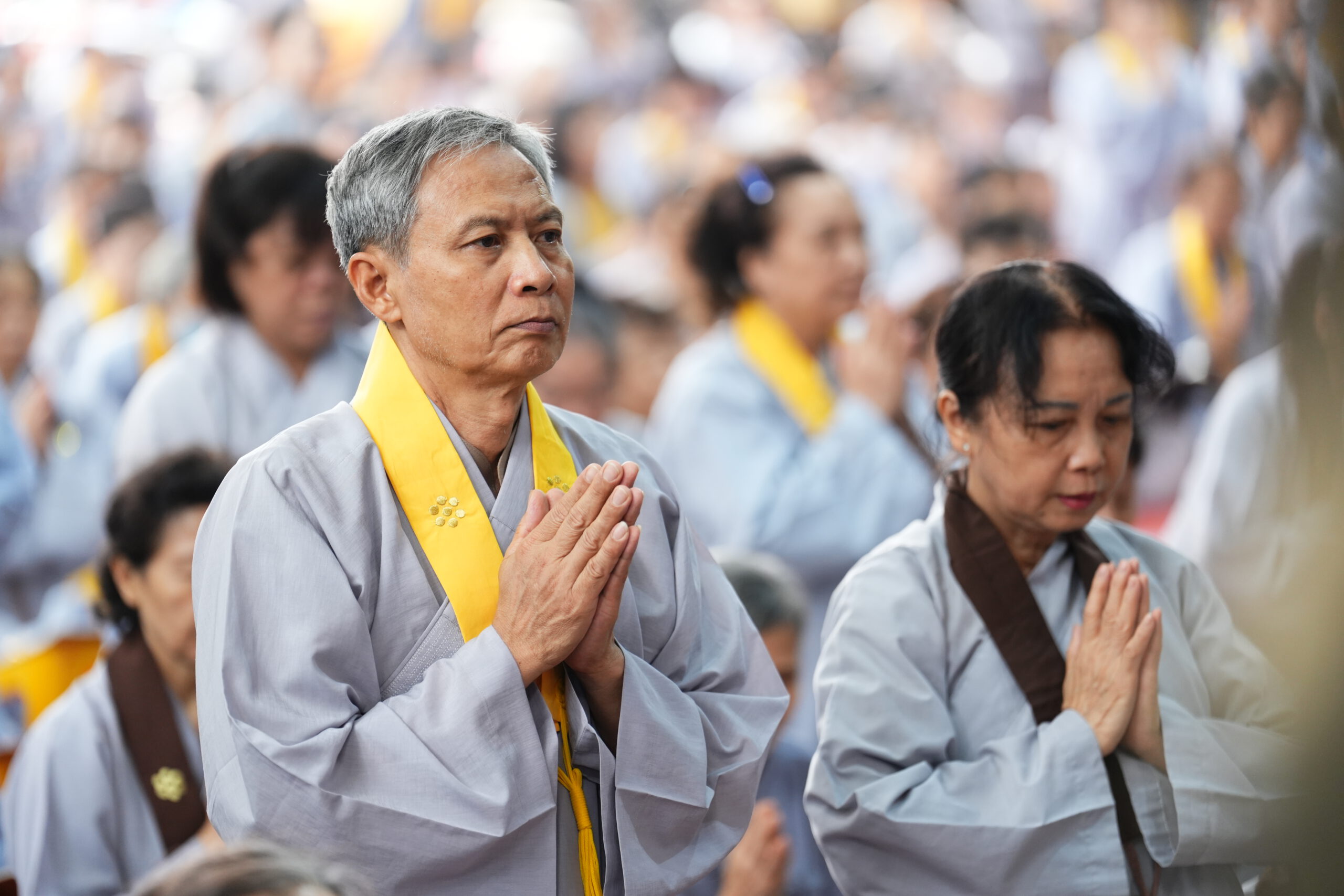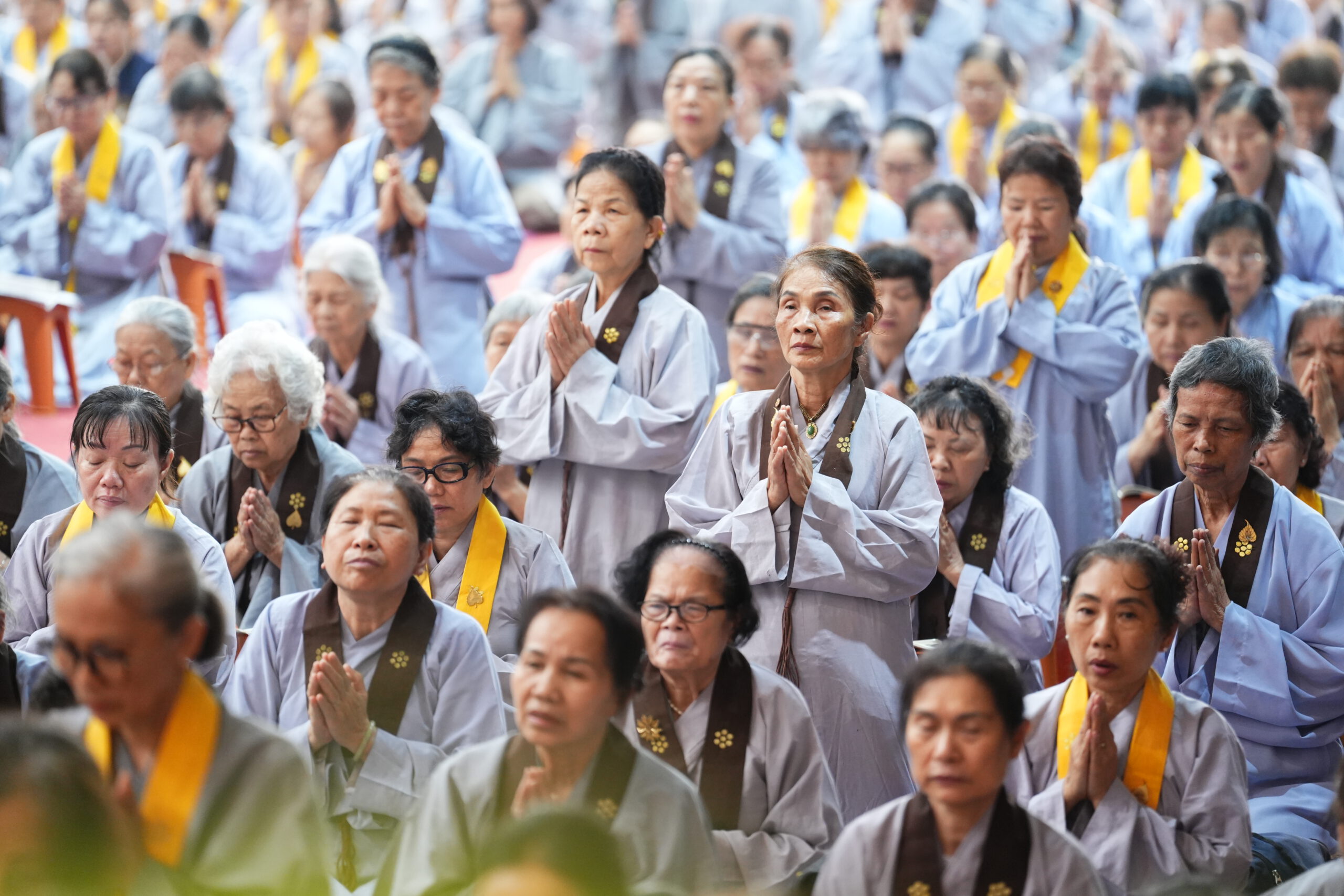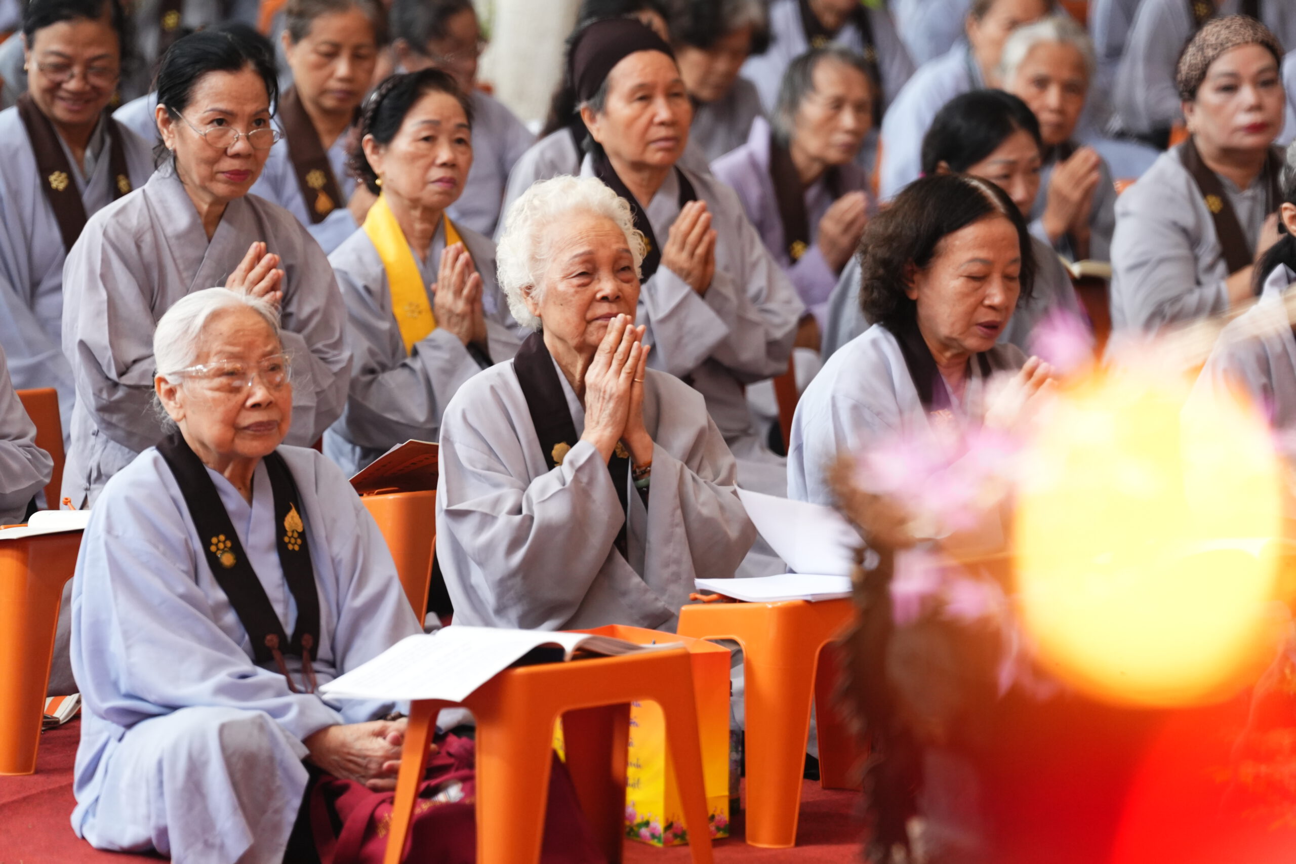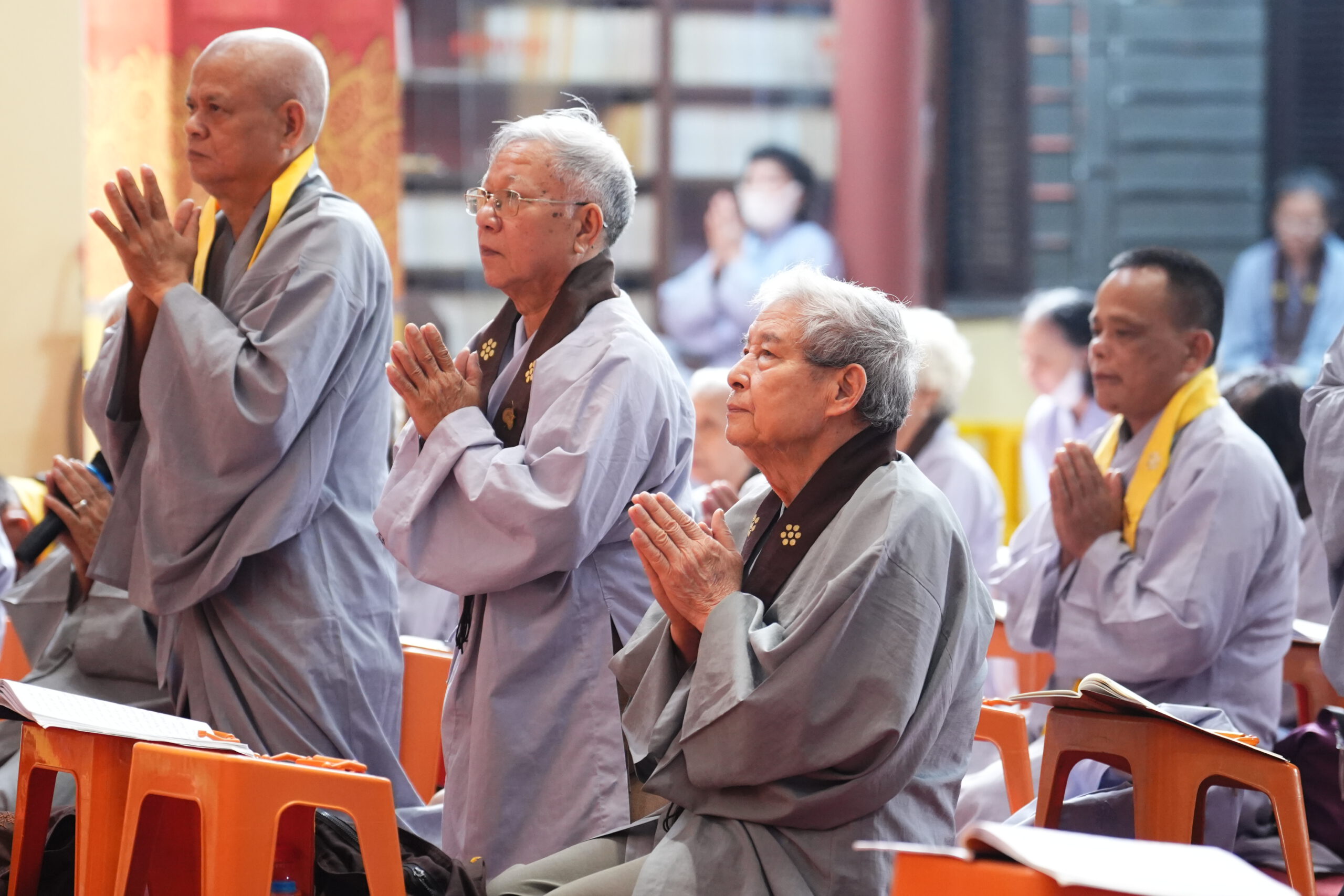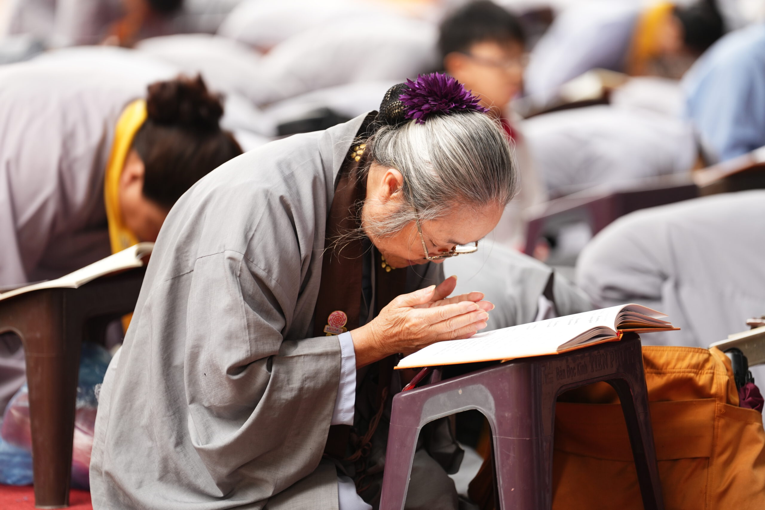 Hình ảnh toàn thể đại chúng đồng loạt ngũ thể đầu địa, nhất tâm đỉnh lễ, sân chùa kín đầy người mà vẫn giữ được sự trang nghiêm, thanh tịnh, đó chính là biểu hiện sống động của tinh thần tu học chân chính. Hoà thượng trân trọng tán thán chư Tôn đức, tán thán Ban lãnh đạo đạo tràng và toàn thể quý Phật tử đã tinh tấn hành trì, làm nên một ngày tu thật viên mãn.