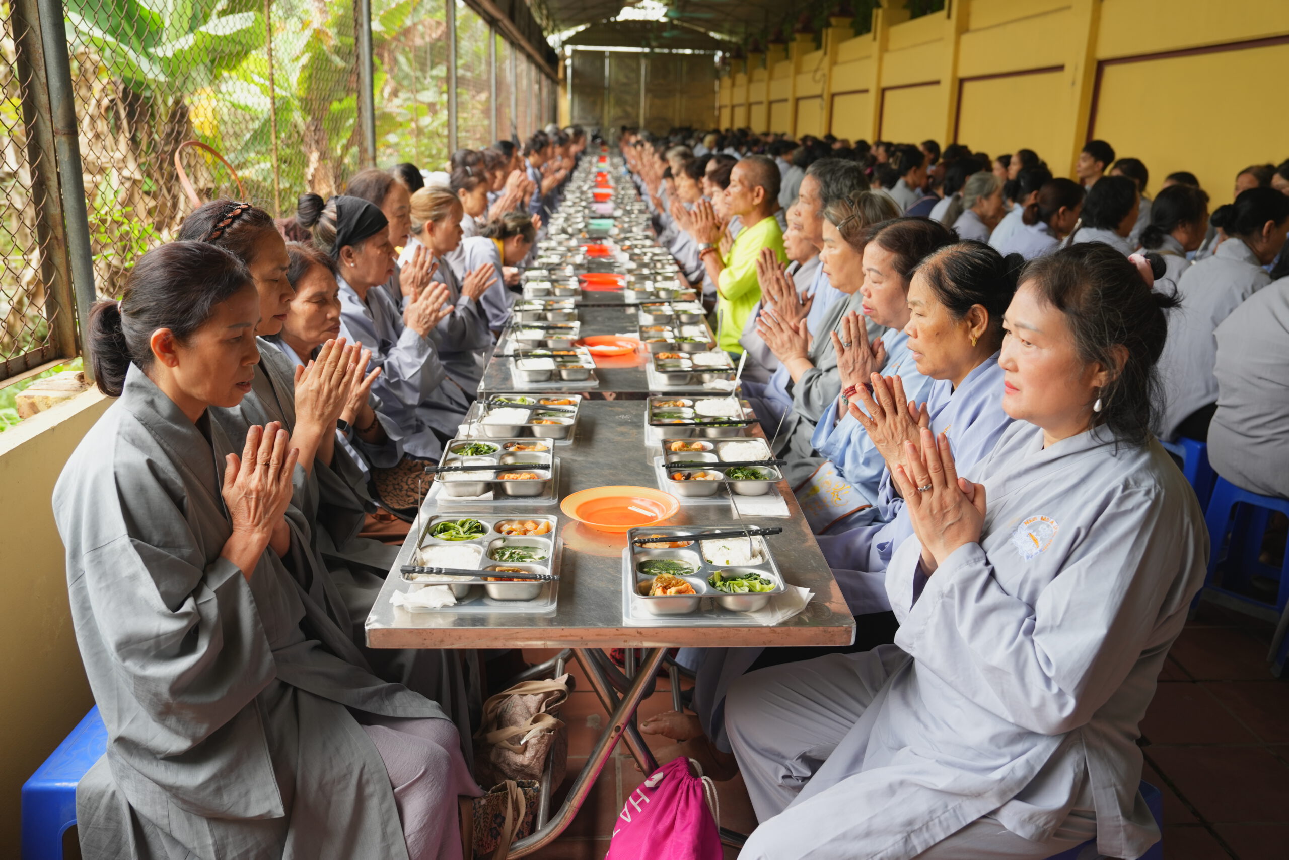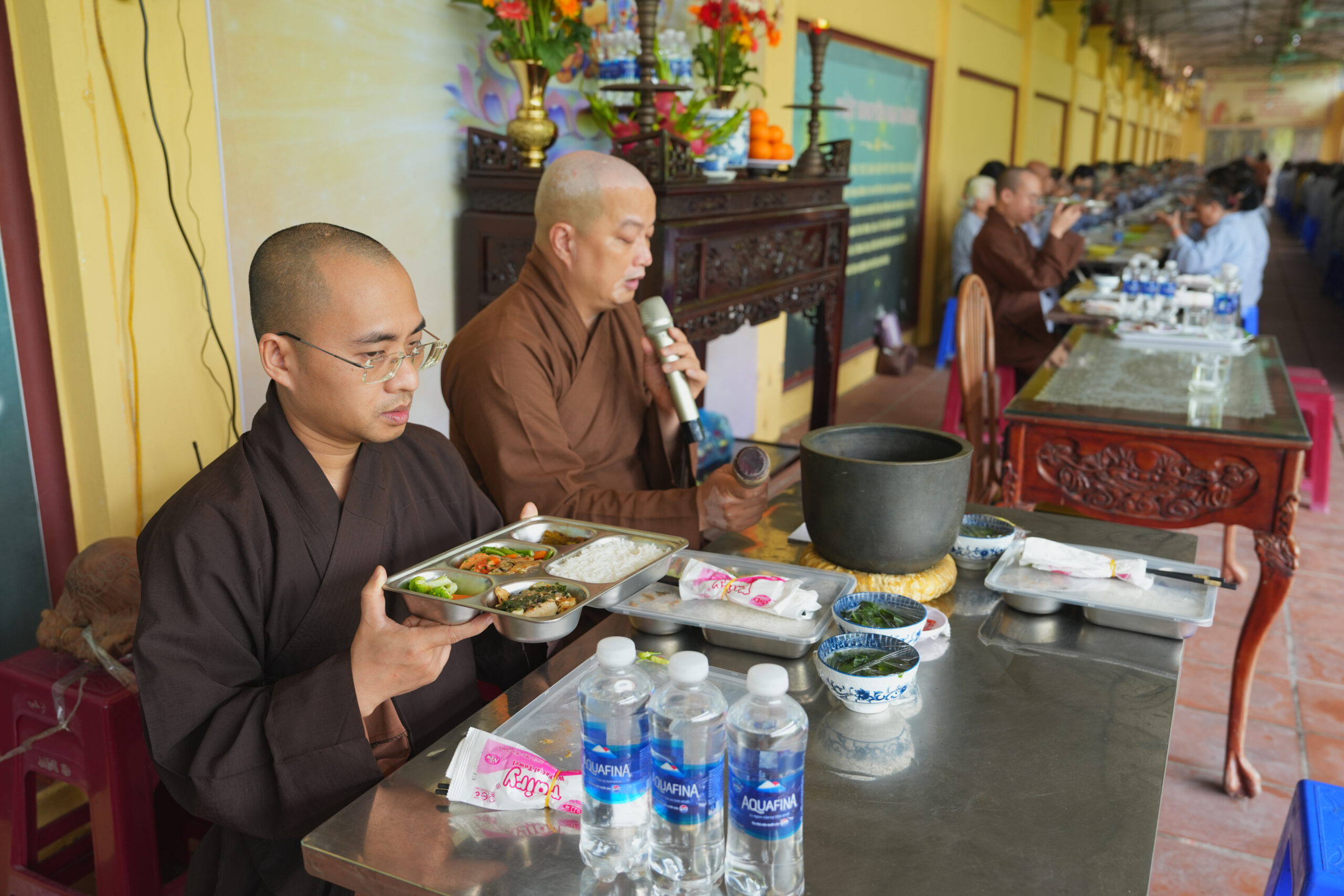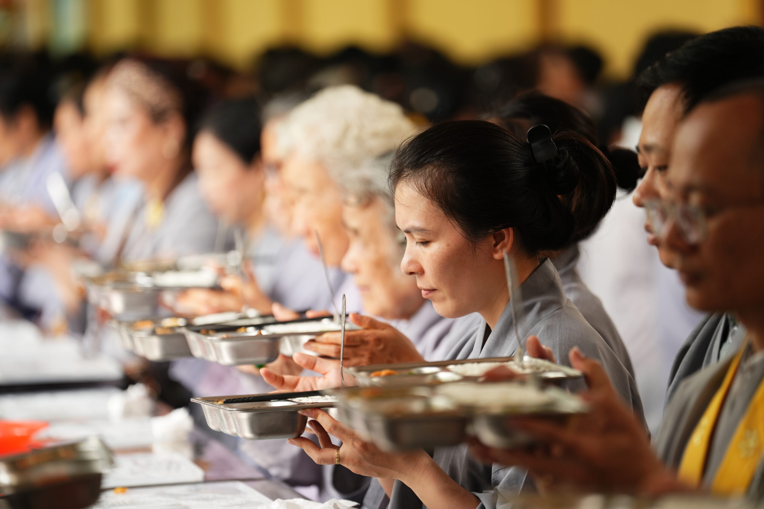 Buổi trưa, đại chúng tiếp tục nghi thức cúng Quá Đường. Trong sự tĩnh lặng, bữa cơm trở thành pháp vị, nuôi thân trong tỉnh thức và nuôi tâm trong ánh sáng Phật pháp.