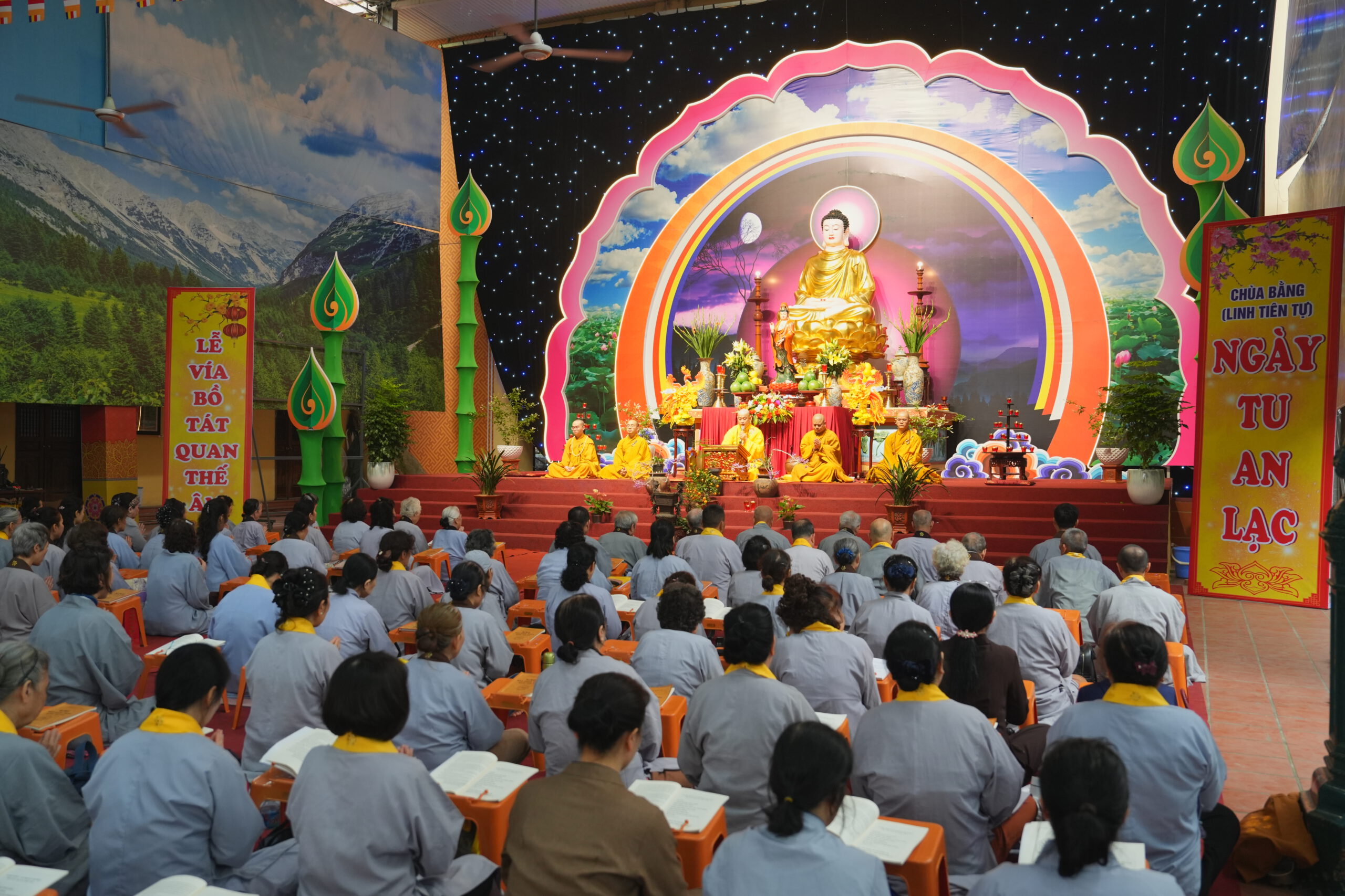 Khép lại một ngày tu, đại chúng đồng hồi hướng công đức về Bồ Tát Quan Thế Âm và Tam Bảo, nguyện cầu cho thế giới hòa bình, chúng sinh an lạc, mưa thuận gió hòa, nhân dân ấm no hạnh phúc. Dòng kinh tiếng kệ lắng sâu như suối nguồn thanh lương, gột rửa phiền não, nuôi lớn hạt giống thiện lành nơi mỗi hành giả.