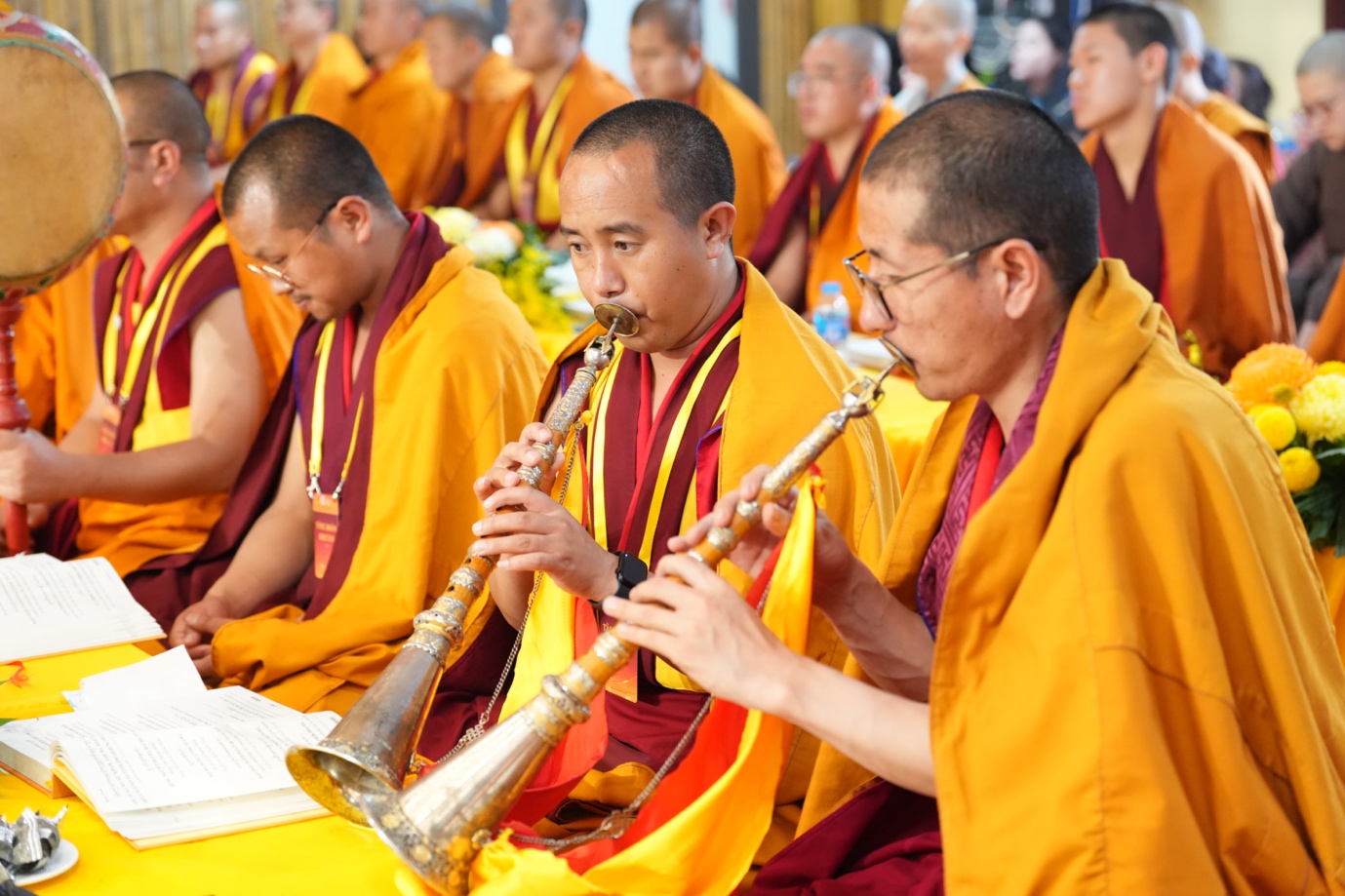 Trong suốt thời gian diễn ra pháp hội, tiếng kèn, tiếng trống pháp hội hòa cùng những lời kinh cầu nguyện vang vọng nơi đạo tràng, tạo nên không khí thiêng liêng và trang nghiêm. Bên cạnh các nghi lễ truyền thống, những tiết mục nghệ thuật Phật giáo của Việt Nam và Bhutan cũng góp phần làm phong phú thêm chương trình giao lưu văn hóa tâm linh giữa hai quốc gia.