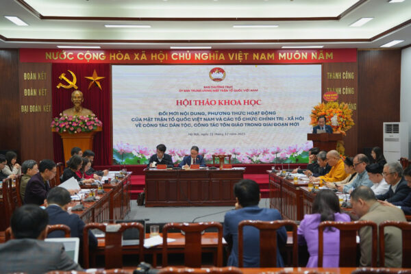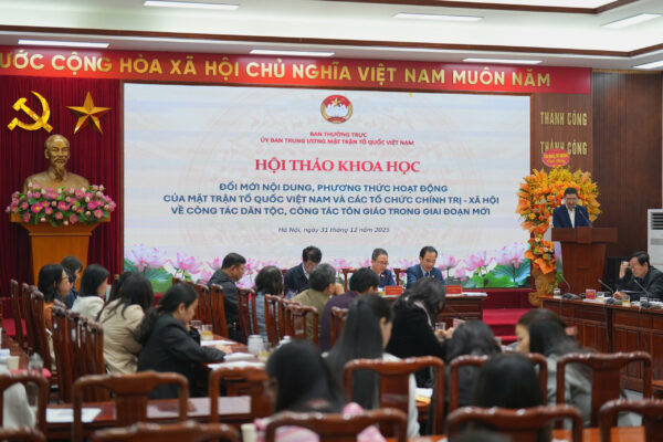 Sáng ngày 31/12/2025, Ban Thường trực UBTƯ MTTQVN đã tổ chức hội thảo “Đổi mới nội dung, phương thức hoạt động của MTTQ VN, các tổ chức chính trị – xã hội đối với công tác dân tộc, công tác tôn giáo trong giai đoạn mới” tại trụ sở UBTƯ MTTQVN, 46 Tràng Thi, Hà Nội. Hội thảo đã nhận được nhiều bài tham luận, đóng góp ý kiến chất lượng của các đại biểu, chuyên gia, nhà khoa học về dân tộc và tôn giáo.