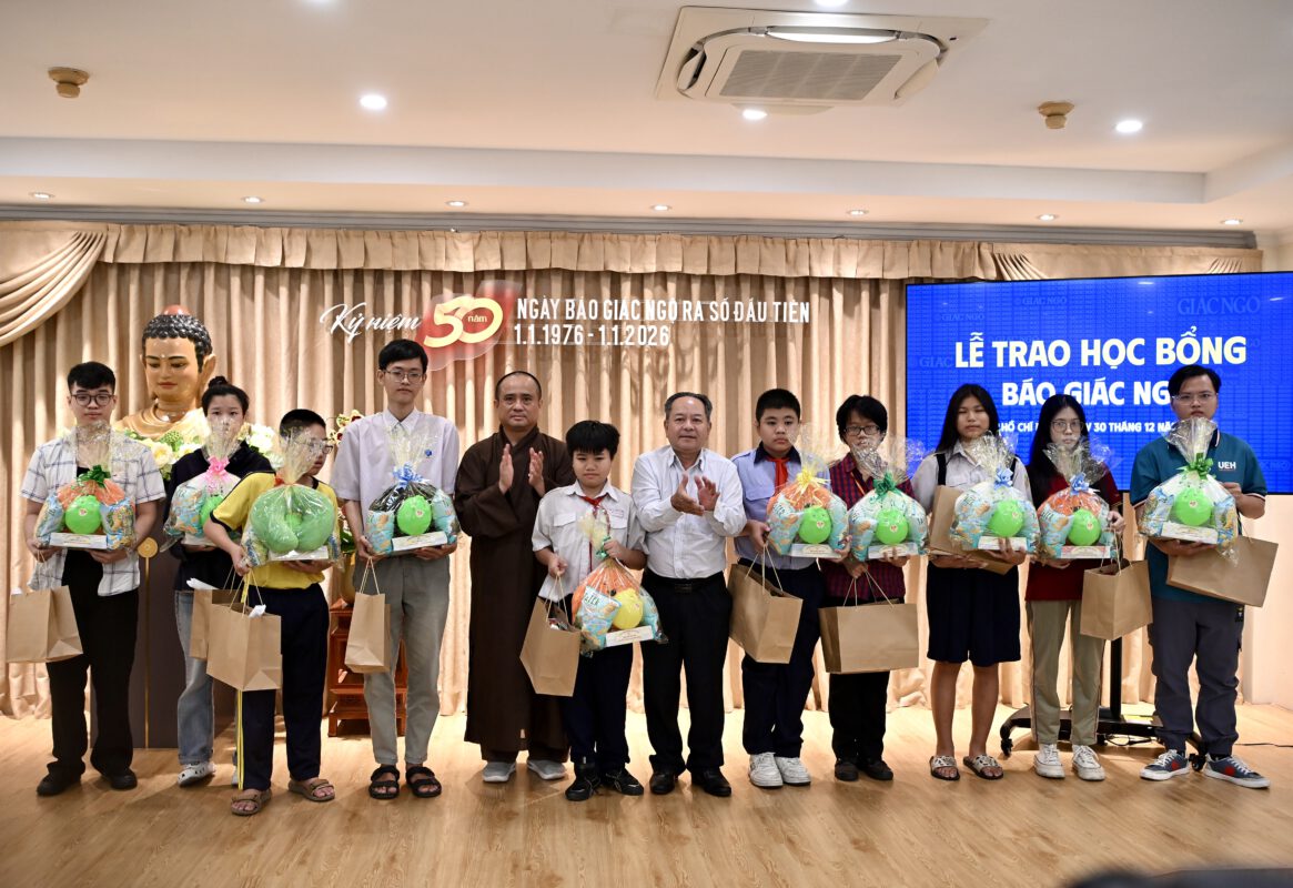 Nhân kỷ niệm 50 năm ngày Báo Giác Ngộ ra số đầu tiên, sáng ngày 30/12/2025, tại trụ sở Tòa soạn Báo Giác Ngộ (số 85 Nguyễn Đình Chiểu, phường Xuân Hòa, TP.HCM), Ban Biên tập tổ chức lễ trao tặng học bổng đến 50 em sinh viên có thành tích học tập và rèn