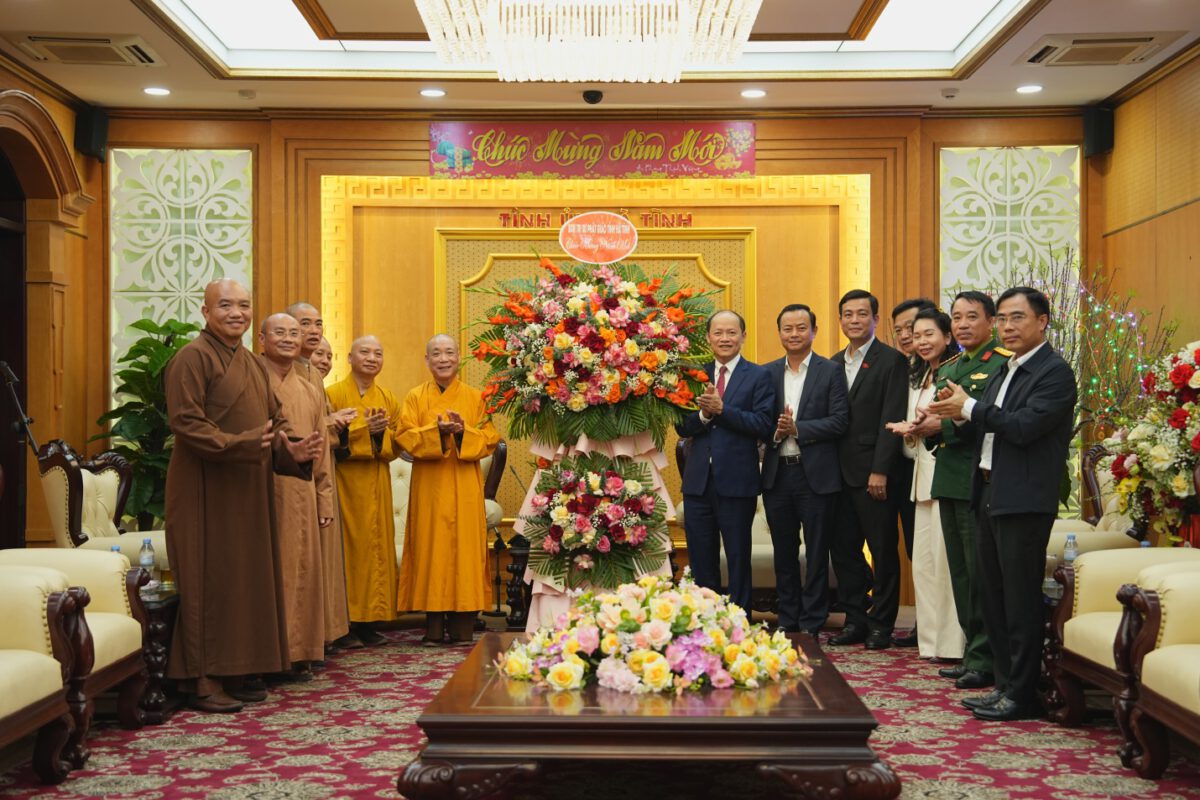 Sáng ngày 6/2/2026, nhằm ngày 19/12 năm Ất Tỵ, trong không khí hoan hỷ đón Xuân Bính Ngọ đang cận kề, chư Tôn đức lãnh đạo BTS GHPGVN tỉnh Hà Tĩnh do Hòa thượng Thích Bảo Nghiêm – Phó Chủ tịch HĐTS, Trưởng ban Hoằng pháp TƯGH, Trưởng BTS Phật giáo tỉnh làm trưởng đoàn