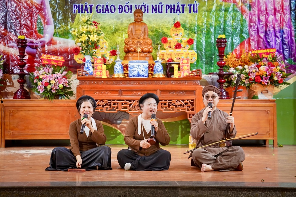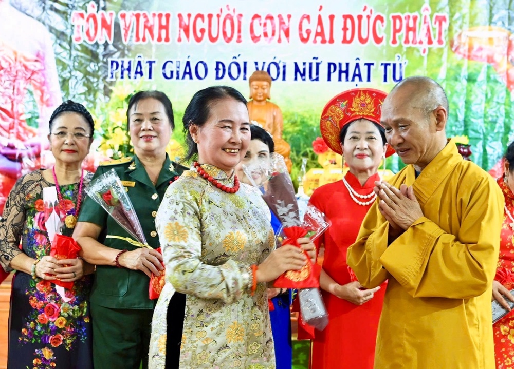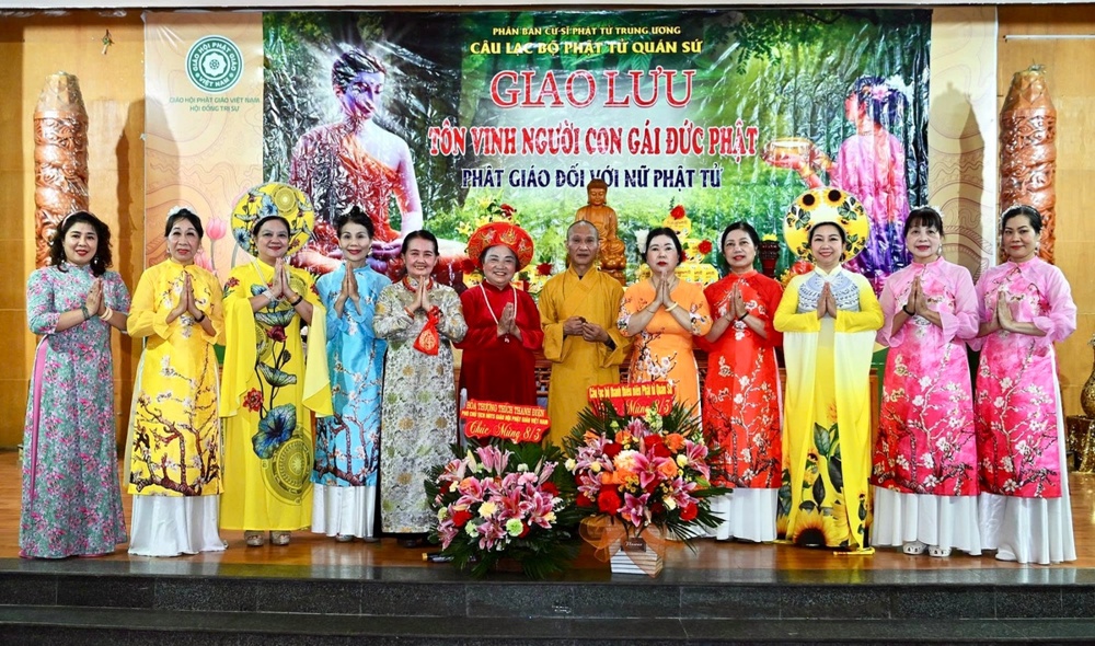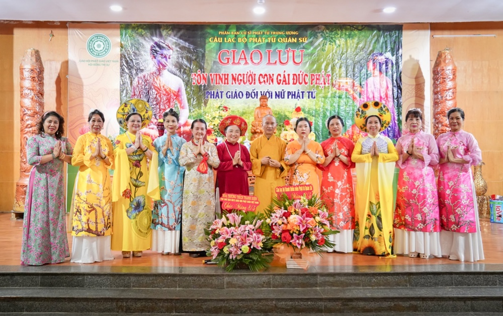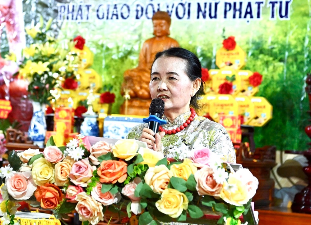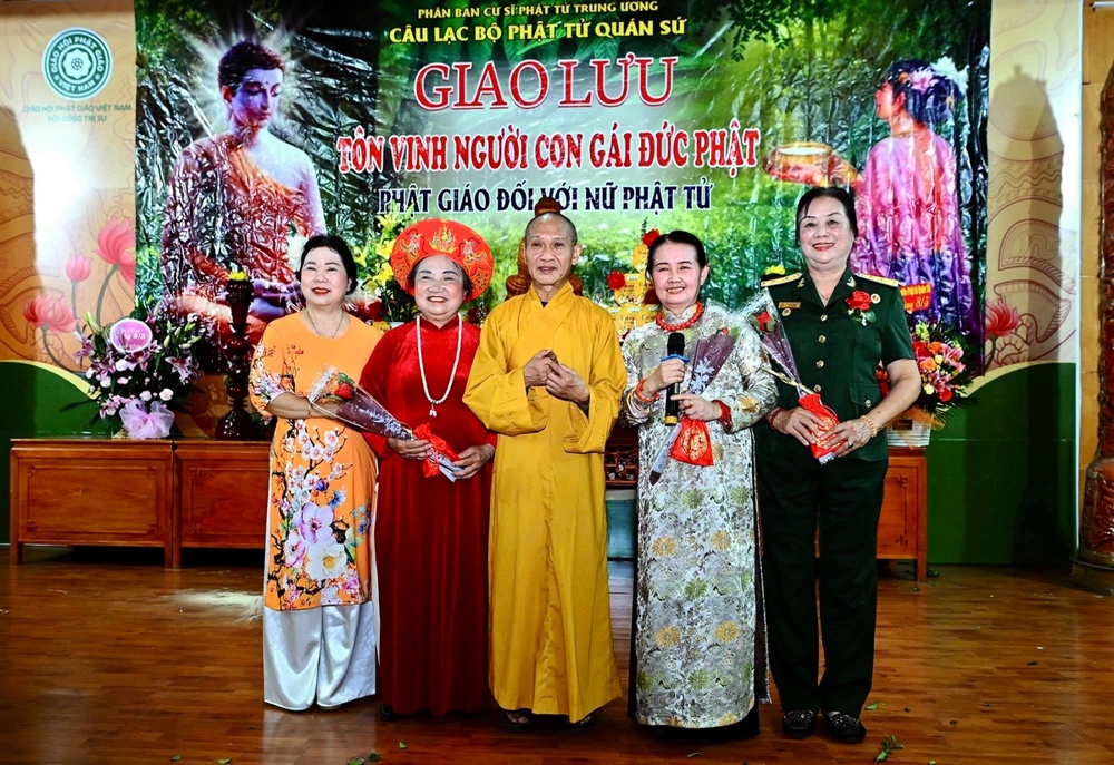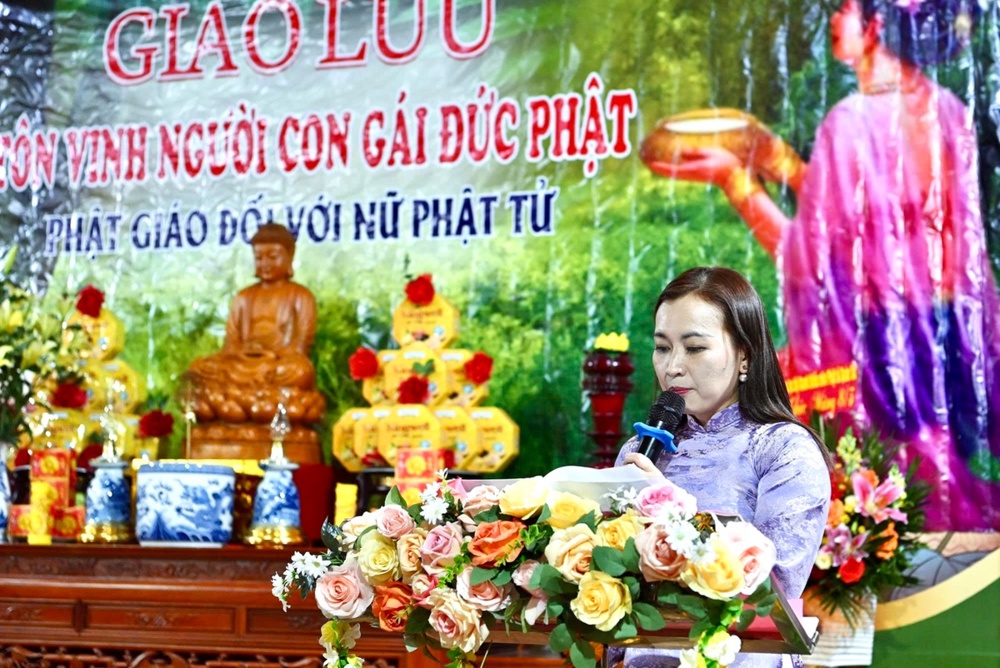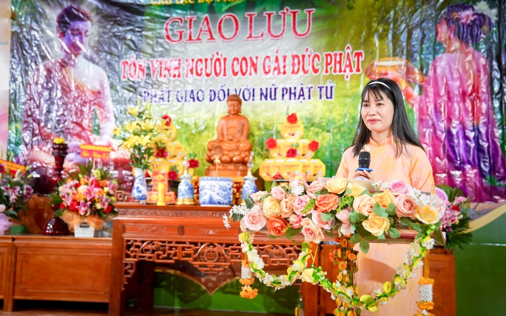 Tại buổi giao lưu, Cư sĩ Diệu Nhân – Nguyễn Thị Xuân Loan, Ủy viên Hội đồng Trị sự, Trưởng ban Tổ chức thay mặt Phật tử tại gia đọc lời khai mạc, khẳng định trí tuệ, công đức vị trí quan trọng của người phụ nữ trong xã hội