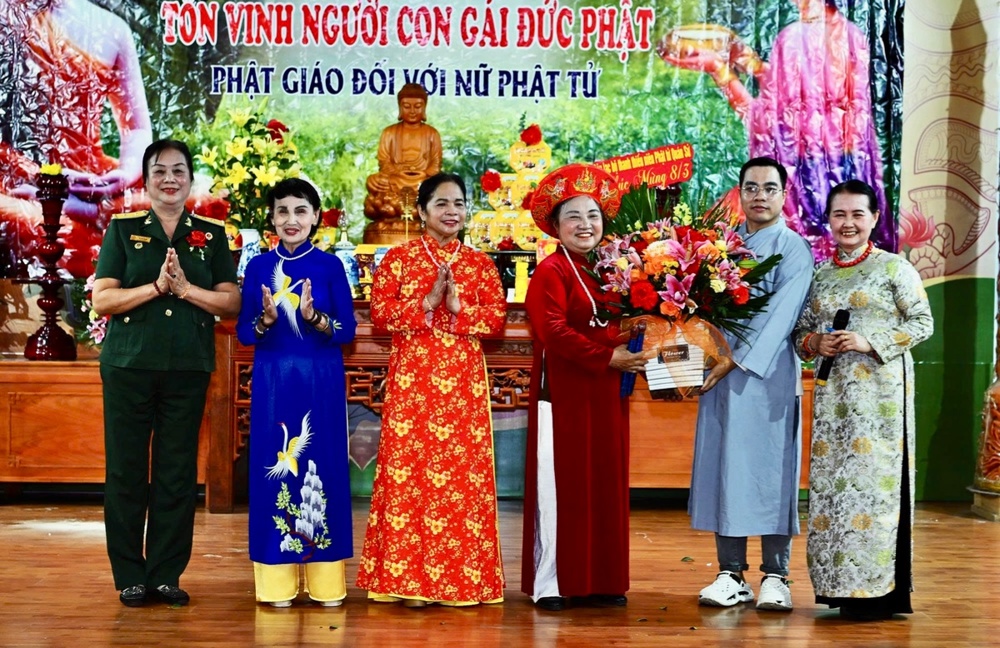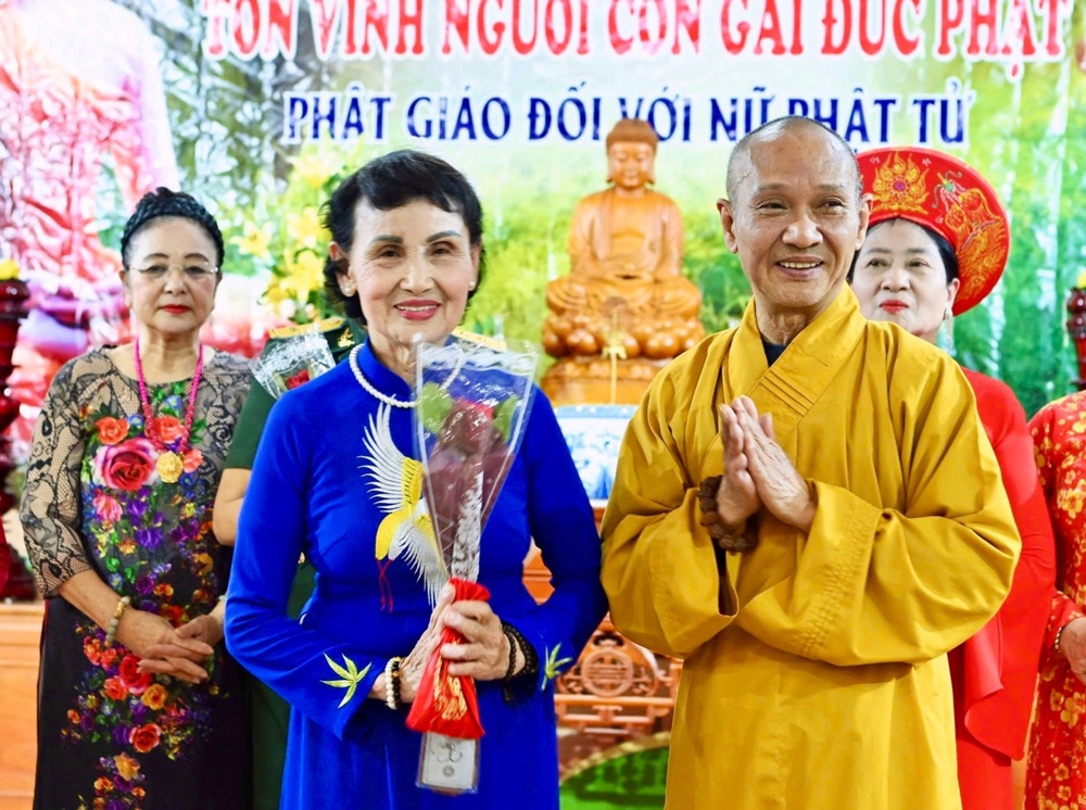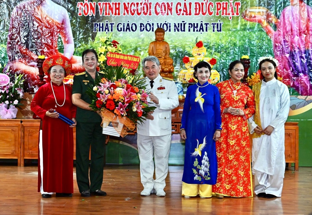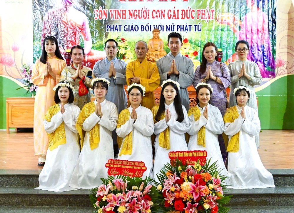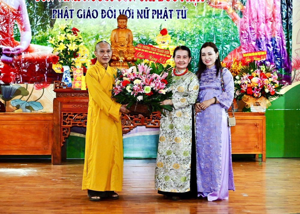 Dịp này, HòaThượng Thích Thanh Điện tặng hoa chúc mừng và ban đạo từ tán thán công đức và đánh giá cao các hoạt động của nữ Phật tử, họ đã tham gia tích cực vào nhiều phong trào tốt đạo đẹp đời, khẳng định vai trò của người con gái Đức Phật.