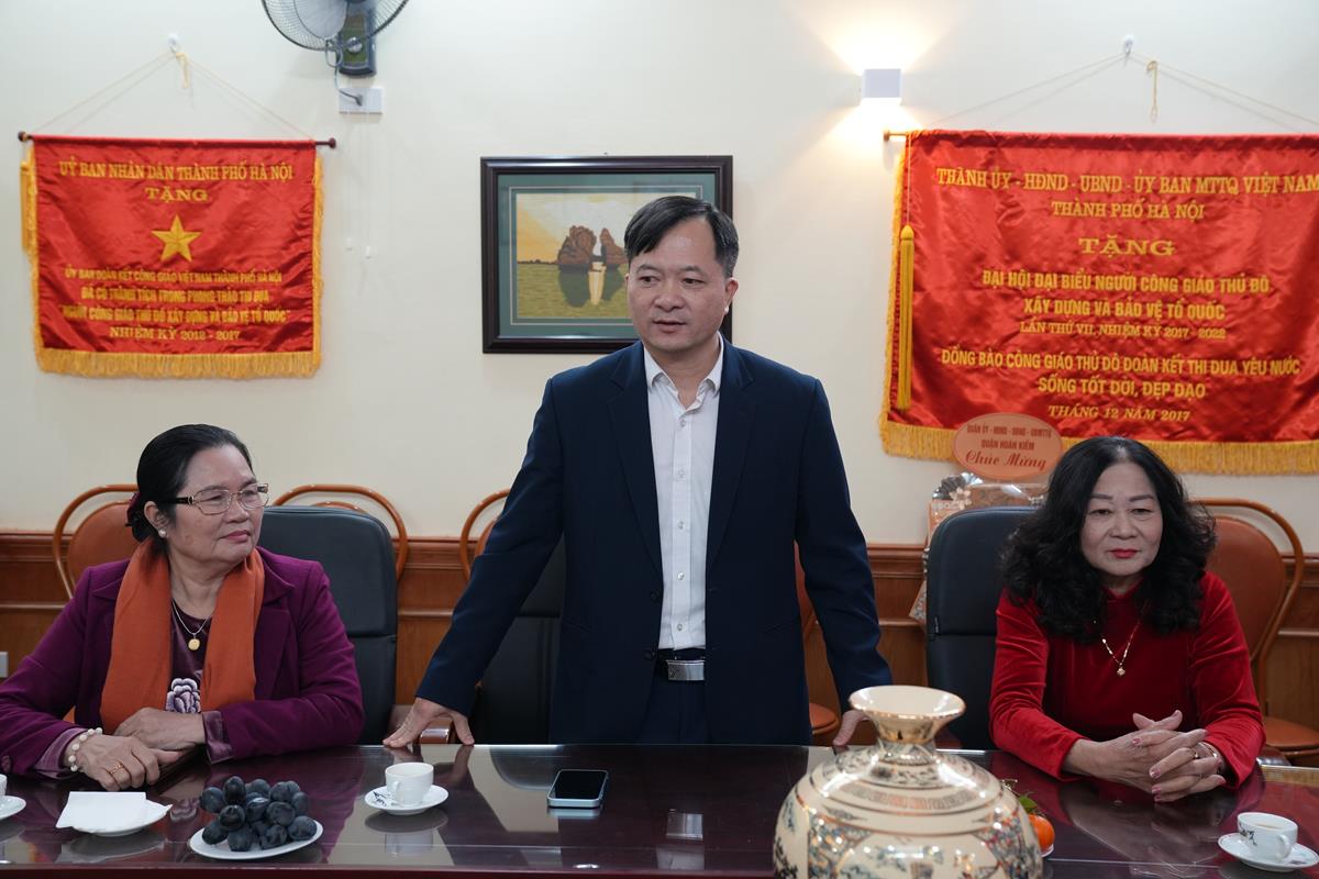 Trân trọng tiếp đón hai phái đoàn, Linh mục Anton Maria Dương Phú Oanh bày tỏ sự vui mừng trước sự quan tâm của Tôn giáo bạn cũng như phía Mặt trận Tổ quốc Việt Nam thành phố Hà Nội. Linh mục chia sẻ nhiều năm nay, Giáng sinh không chỉ là ngày lễ quan trọng của đồng bào Công giáo, mà còn là ngày vui chung của người dân. Linh mục mong rằng Phật giáo và Công giáo sẽ là hai Tôn giáo luôn đồng hành cùng nhau, với những hoạt động tốt đạo đẹp đời, xây dựng đất nước ngày càng phát triển thịnh vượng.
