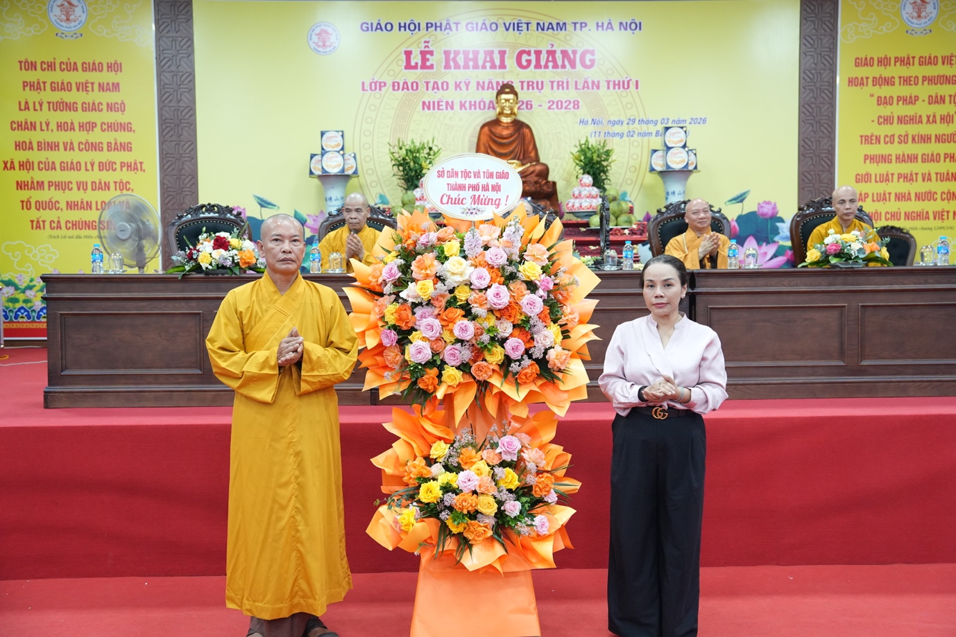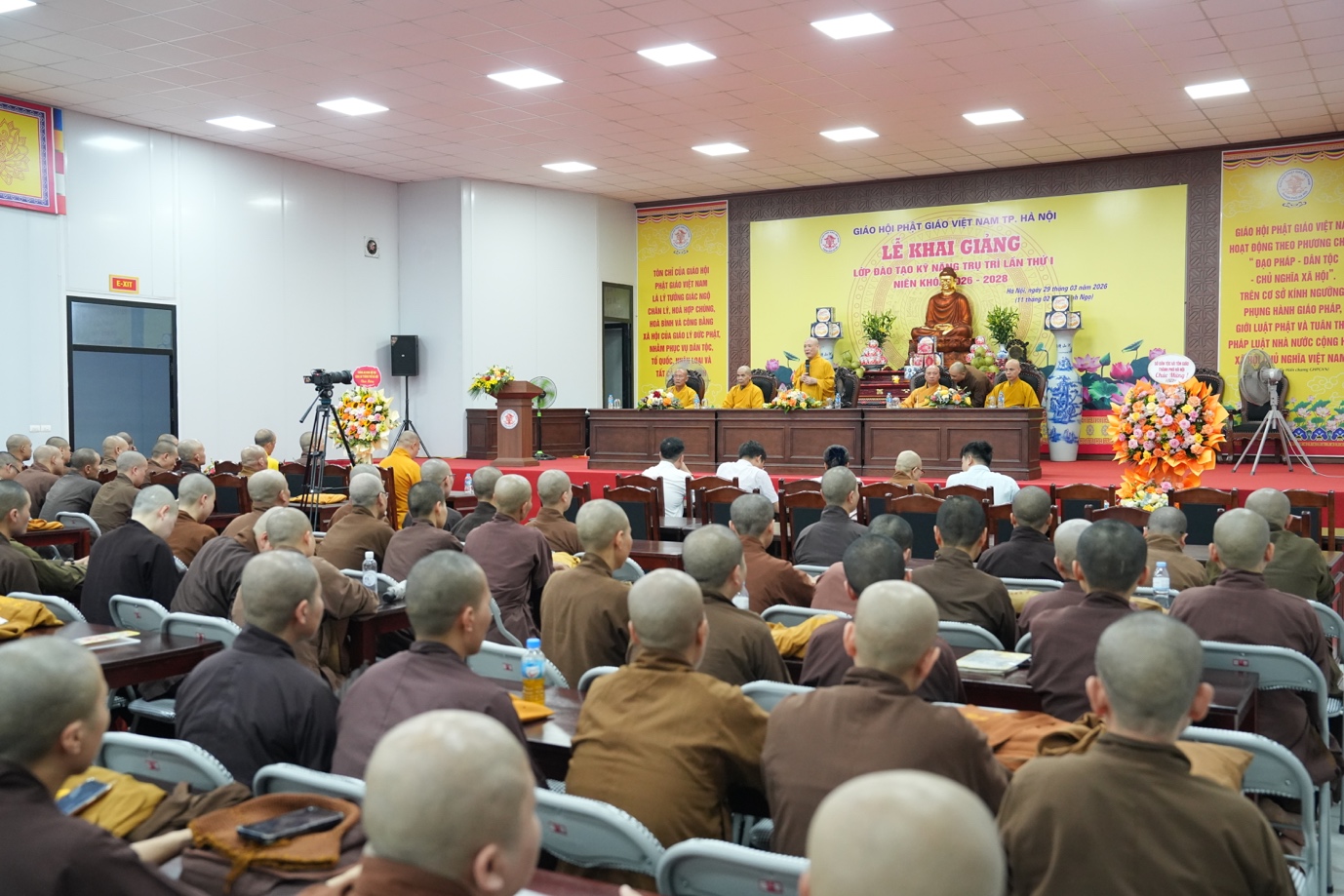 Ban lời đạo từ, Hòa thượng Thích Bảo Nghiêm – Phó Chủ tịch HĐTS, Trưởng BTS GHPGVN thành phố bày tỏ niềm hoan hỉ khi lần đầu tiên trong lịch sử Phật giáo Hà Nội có lớp đào tạo kĩ năng trụ trì. Niềm vui ấy càng được nhân lên khi chứng kiến số lượng đăng ký tham gia đông đảo, thể hiện tinh thần cầu học, nhiệt tâm phụng sự và khát vọng hoàn thiện của chư Tăng Ni. Điều đó minh chứng cho sự phát triển mạnh mẽ, đồng thời mở ra một tương lai bền vững cho Phật giáo Thủ đô.
