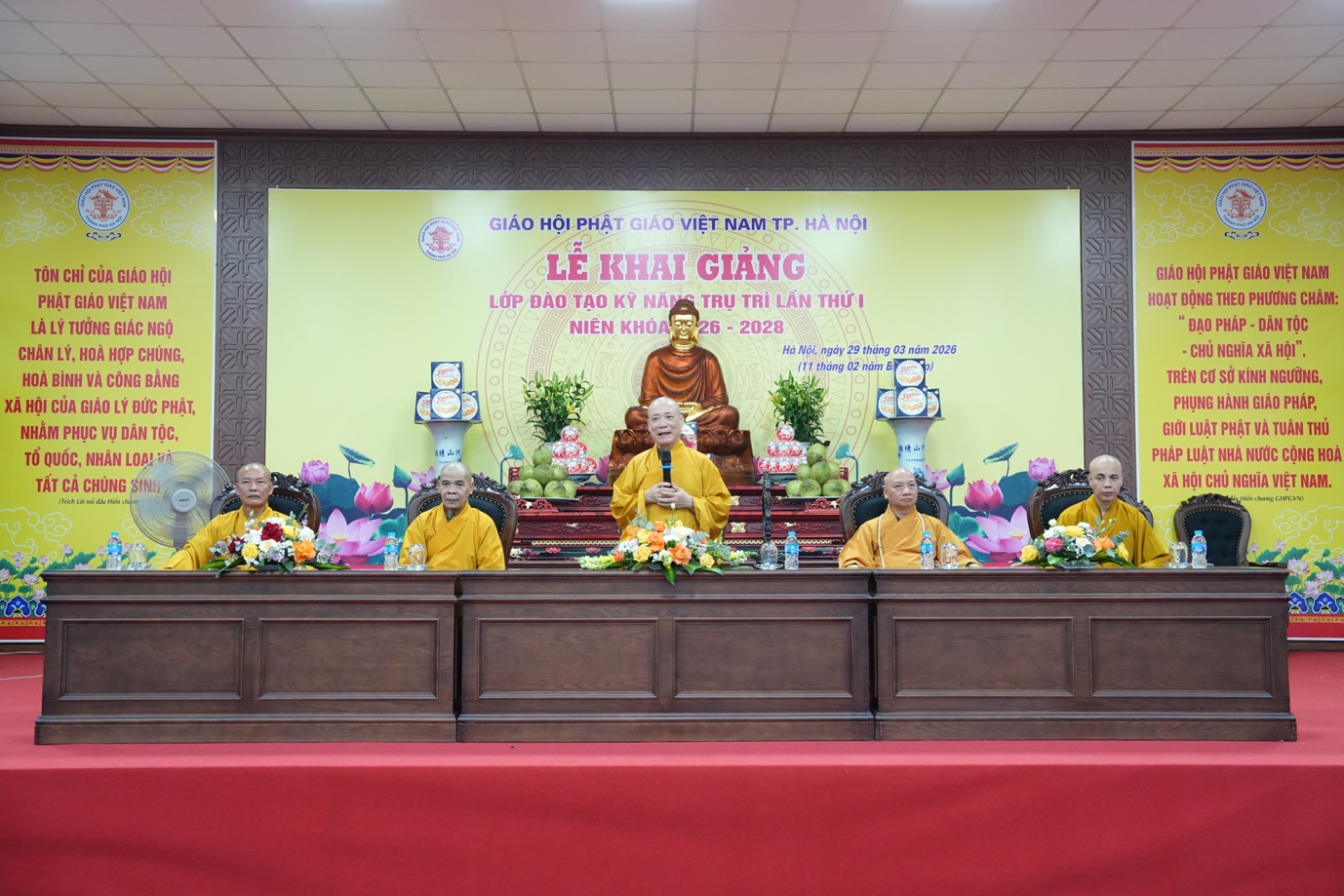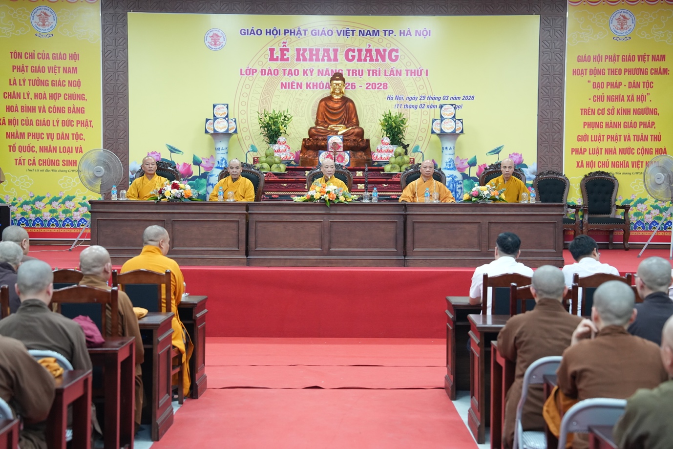 Chiều ngày 29/03/2026 (nhằm ngày 11/02 năm Bính Ngọ), tại Trung tâm văn hóa Phật giáo Thủ đô (xã Bát Tràng, thành phố Hà Nội), BTS GHPGVN thành phố Hà Nội đã long trọng tổ chức Lễ khai giảng lớp đào tạo kỹ năng trụ trì lần thứ I. Chương trình không chỉ thể hiện sự quan tâm của Giáo hội trong việc đào tạo Tăng tài kế thừa; mà còn khẳng định quyết tâm nâng cao chất lượng quản lý, điều hành Phật sự trong bối cảnh xã hội ngày càng phát triển và hội nhập.