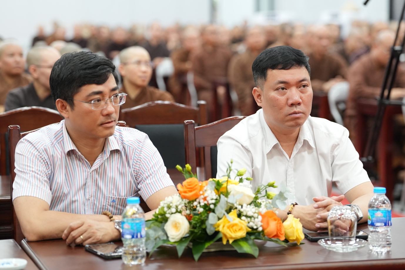 Ngoài ra còn có sự hiện diện của: Bà Phạm Bảo Khánh – Trưởng Phòng Nghiệp vụ 2, Sở Dân tộc và Tôn giáo TP; Thượng tá Trần Tuấn Ngọc – Phó trưởng Phòng An ninh Nội địa, Công an TP; cùng chư Tăng Ni sinh lớp đào tạo bồi dưỡng trụ trì khóa I.