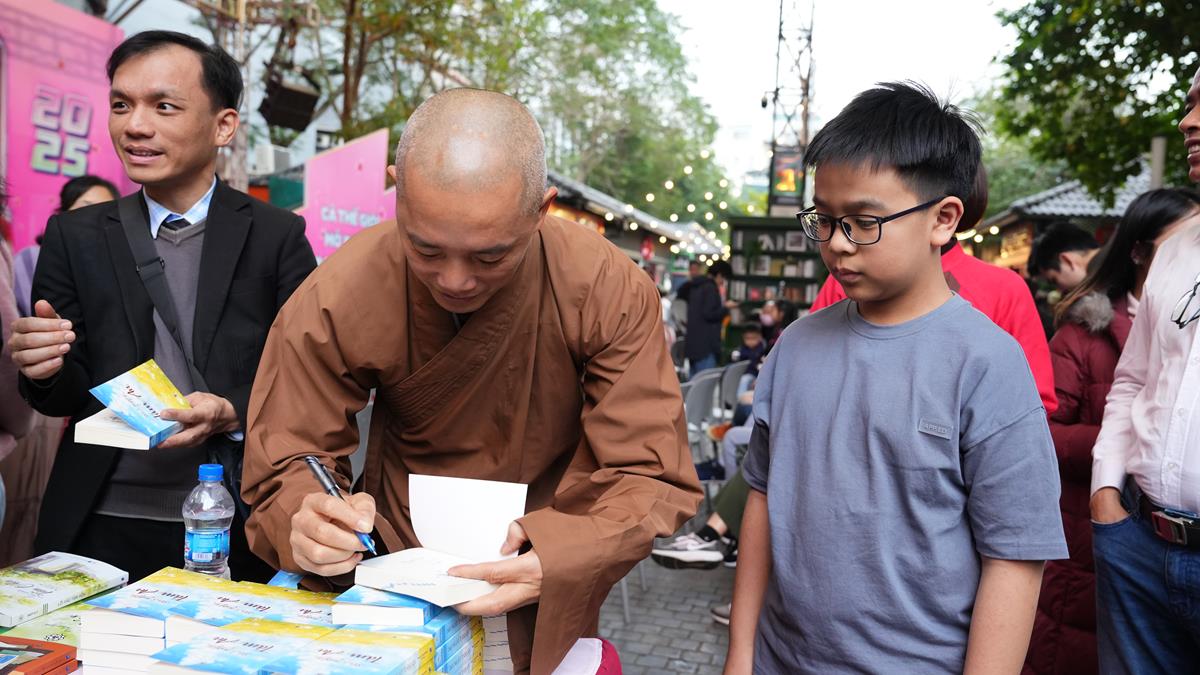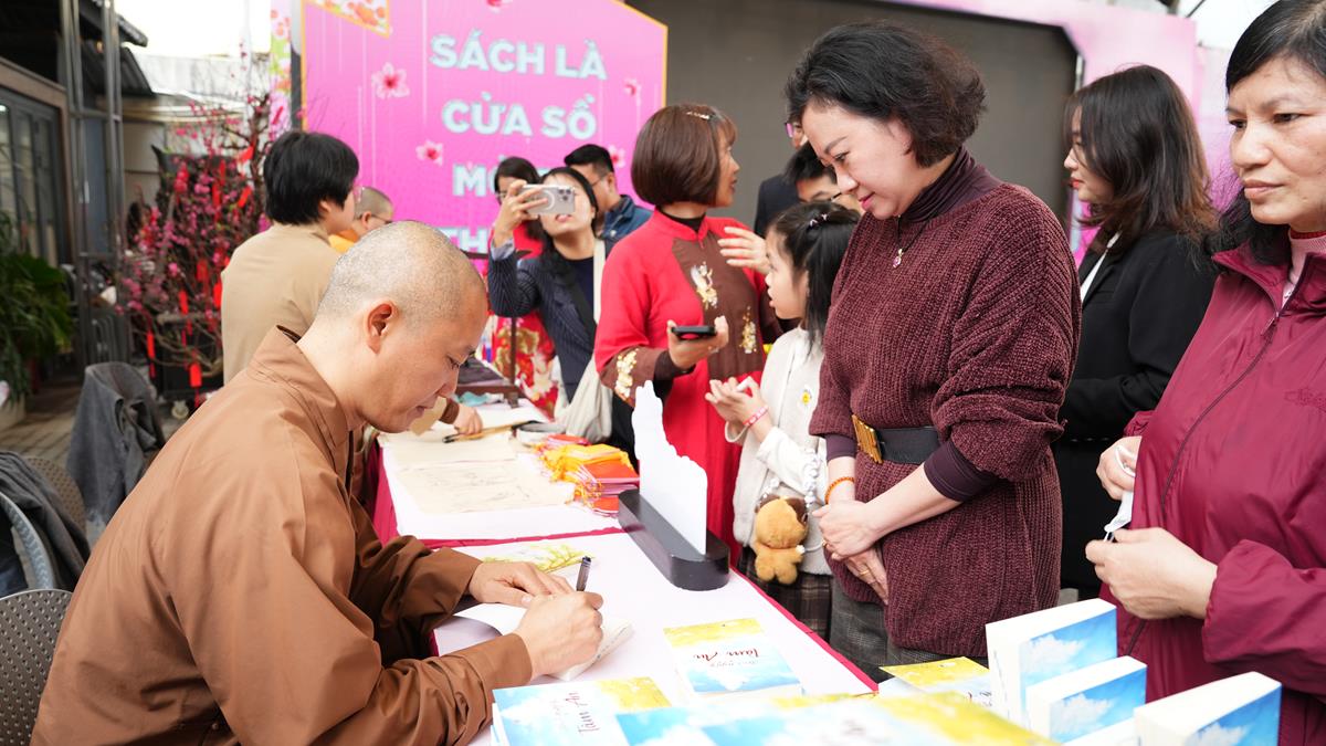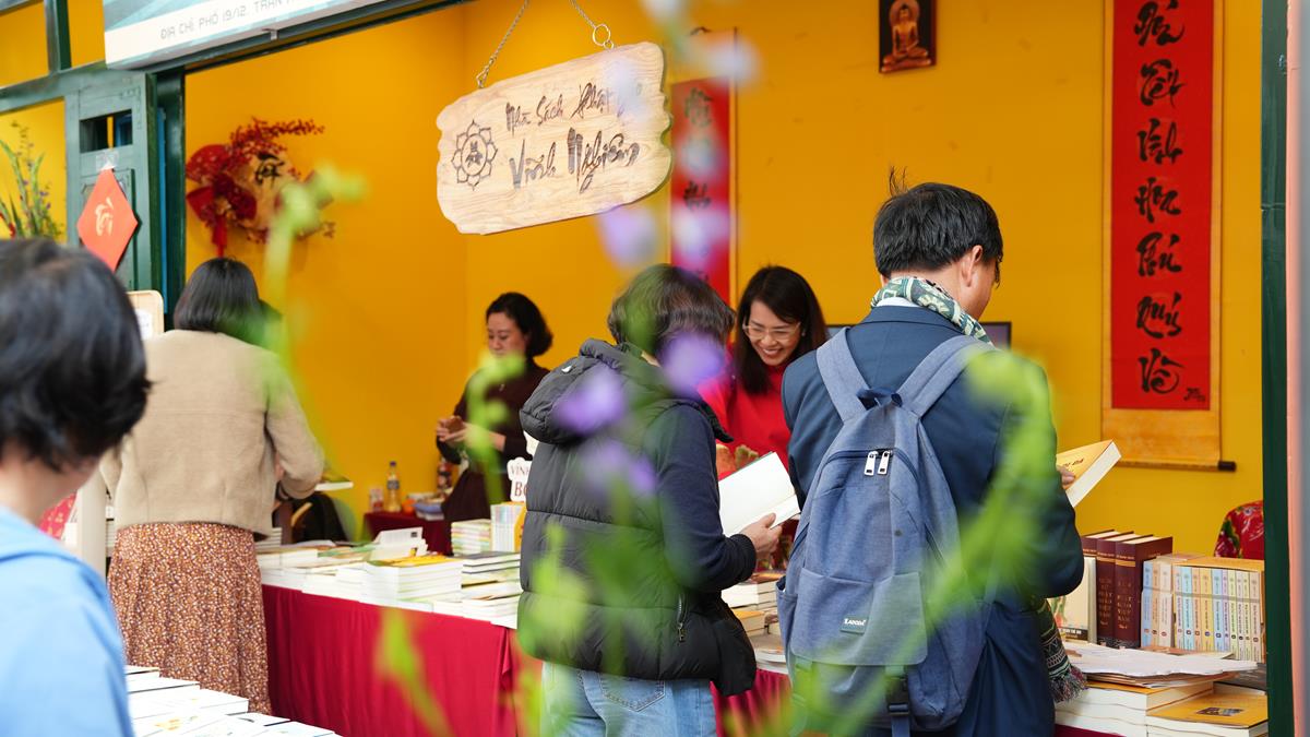 Qua những chia sẻ của Đại đức Thích Vạn Lợi – Phó Giám đốc Trung tâm biên phiên dịch Tư liệu Phật giáo Quốc tế và bà Nguyễn Thị Kim Hà – Giám đốc Nhà sách Phật giáo Vĩnh Nghiêm, toàn thể hội chúng tham dự có thể hiểu rõ hơn về giá trị của sách nói chung và sách Phật nói riêng trong xã hội ngày nay, cũng như những mong muốn mà Vĩnh Nghiêm Books muốn gửi gắm qua việc tham gia chương trình Phố sách xuân 2025 lần này. Có thể nói, giữa cuộc sống với bộn bề những áp lực căng thẳng, việc tìm cho mình một không gian tĩnh lặng qua những trang sách, không chỉ góp phần nâng cao văn hóa đọc của cộng đồng, mà còn giúp mỗi người có thêm tri thức, cảm nhận được sự thư thái và an bình. Trong những năm qua, ngành xuất bản và văn hóa đọc tại Việt Nam đã có sự phát triển mạnh mẽ. Nhiều tác phẩm văn học, nghiên cứu, sách thiếu nhi đã được xuất bản và đón nhận nồng nhiệt. Điều này cho thấy, nhu cầu đọc sách của người dân tăng lên và vai trò của sách trong đời sống xã hội ngày càng được khẳng định.