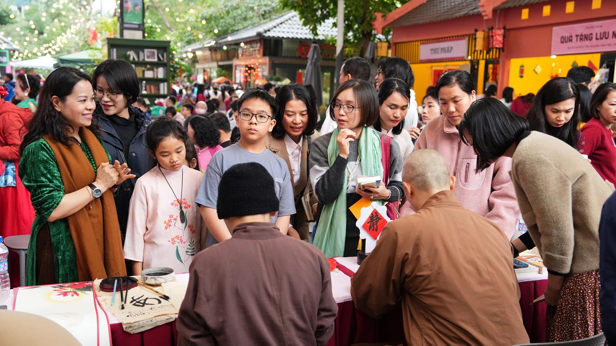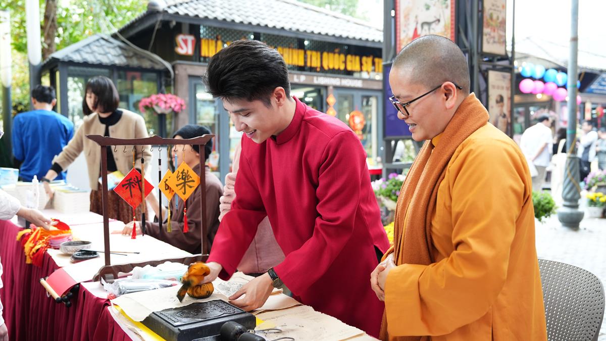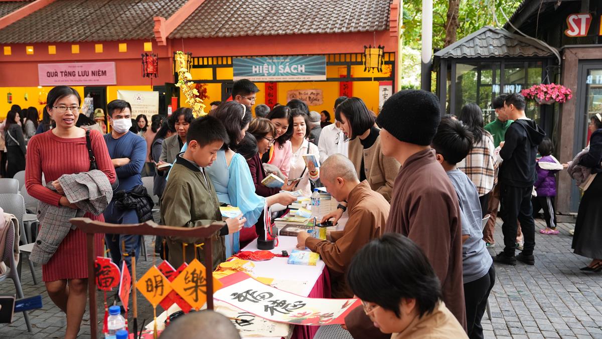Khép lại buổi tọa đàm, toàn thể người dân tham dự đều được trải nghiệm rất nhiều không gian văn hóa truyền thống mà Vĩnh Nghiêm Books mang lại, như In Kinh mộc bản, thỉnh Kinh chép tay về để khai bút đầu năm, bốc Câu Pháp Ngữ may mắn….