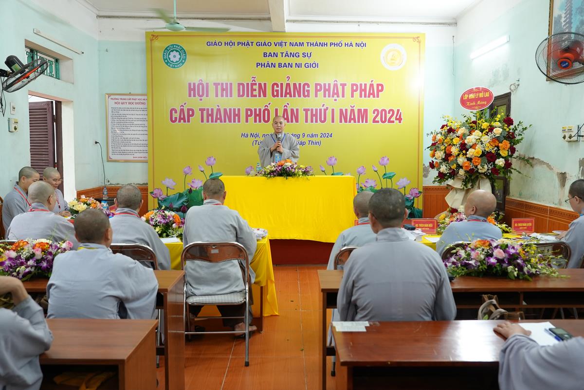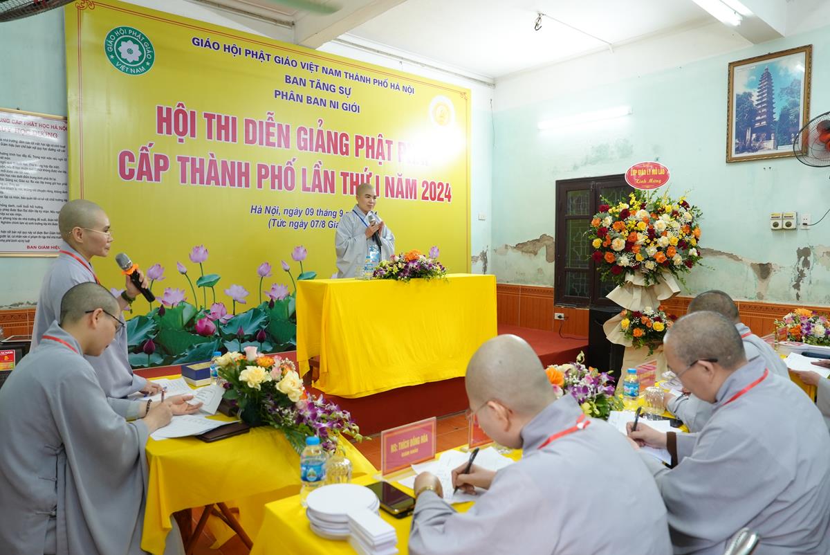 Kế thừa thành quả đạt được trong các khóa bồi dưỡng Luật học cho Ni giới Thành phố, đồng thời thực hiện Phương hướng hoạt động của Phân ban Ni giới TƯ. Được sự đồng thuận cho phép của chư Tôn đức Ban Trị sự GHPGVN Thành phố Hà Nội, hôm nay ngày 09/09/2024, tại chùa Mộ Lao (Quận Hà Đông), Phân ban Ni giới GHPGVN Thành phố Hà Nội đã tổ chức Hội thi diễn giảng Phật pháp cấp Thành phố lần thứ I năm 2024.