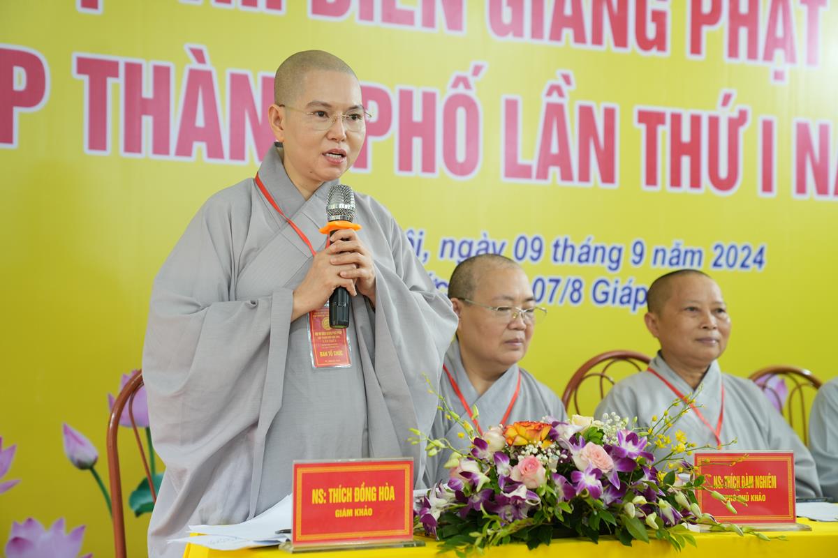Ban Đạo từ tại hội thi, Ni trưởng Thích Đàm Thành có lời nhận xét, khen ngợi đến các thí sinh đã tham gia và trình bày xuất sắc bài thi của mình. Mong rằng, qua hội thi này sẽ khuyến khích hơn tinh thần tu học, phát triển bản thân của chư Ni để trang nghiêm pháp thân, giúp chư Ni có đủ trí lực, từ bi dấn thân trong sứ mệnh “hành Như Lai sứ, tác Như Lai sự”.