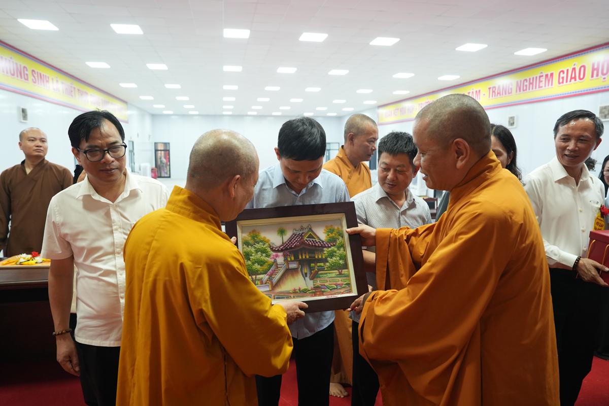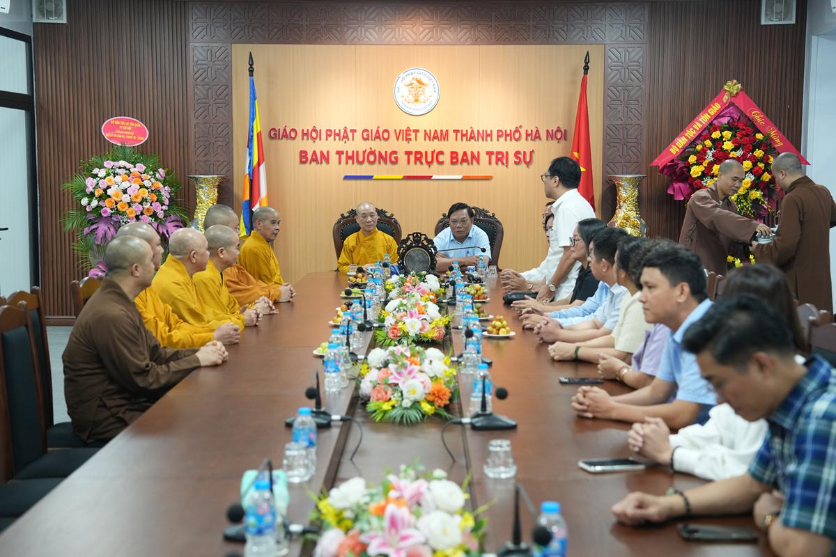Hòa thượng Thích Bảo Nghiêm – Phó Chủ tịch HĐTS, Trưởng Ban Hoằng pháp Trung ương, Trưởng Ban Trị sự GHPGVN thành phố Hà Nội cùng chư Tôn đức lãnh đạo Phật giáo Thủ đô đã thân mật tiếp đoàn.